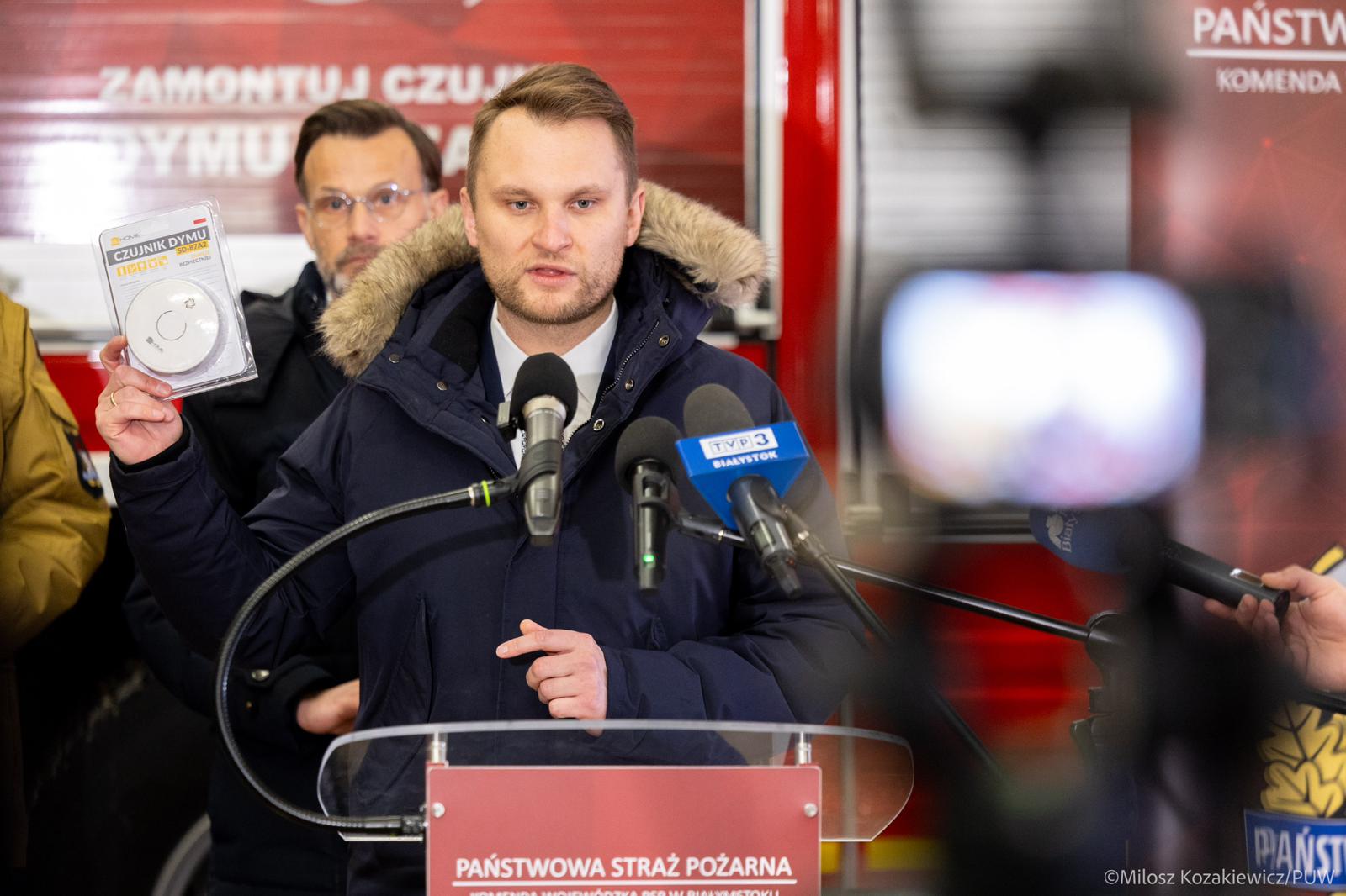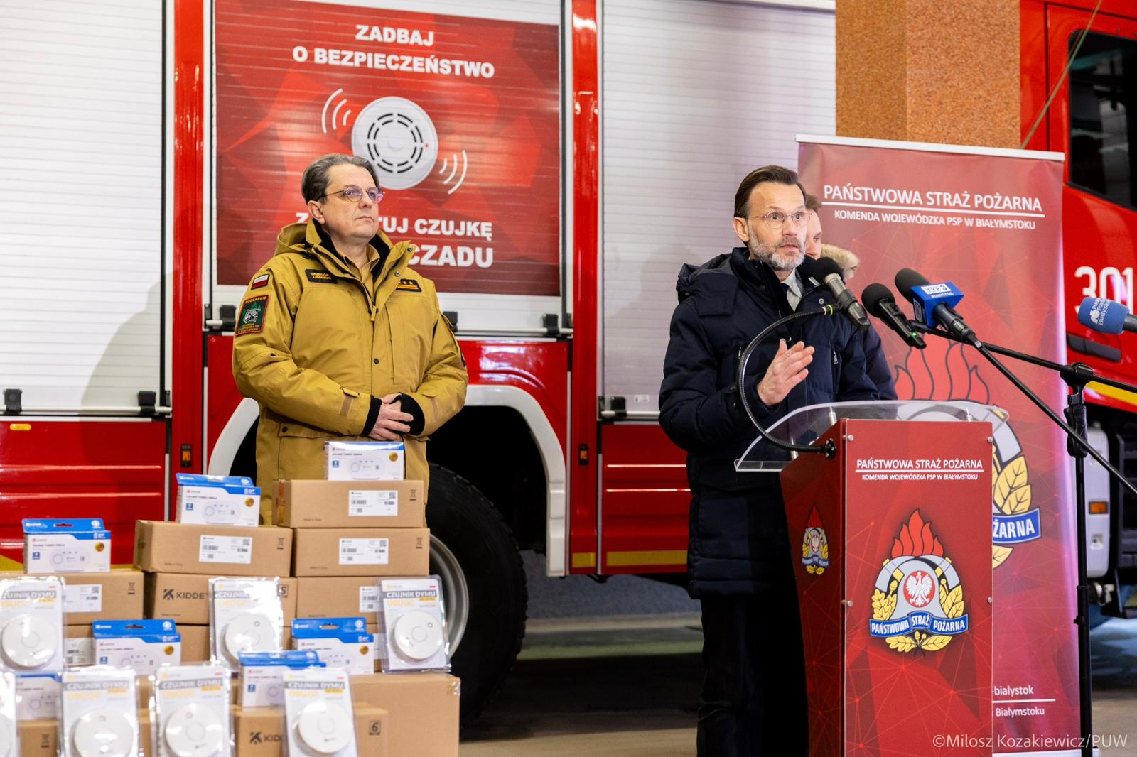 – Kiedy mówimy o bezpieczeństwie, mamy na myśli to bezpieczeństwo najbliżej nas. Czujka czadu lub dymu to nasz pierwszy ratownik. Działa, gdy jeszcze sami nie jesteśmy świadomi zagrożenia – mówił wojewoda podlaski.