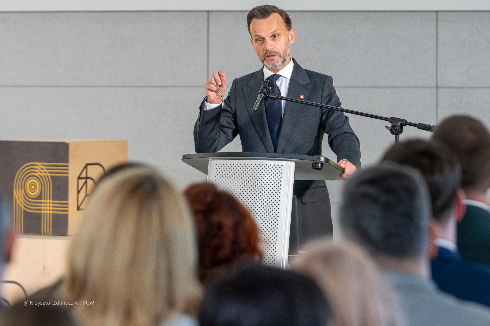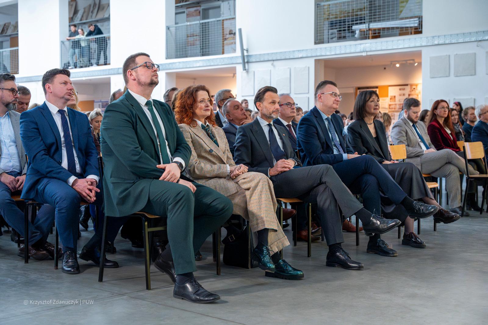 W uroczystości wzięli przedstawiciele władz Politechniki Białostockiej, na czele z rektor dr hab. inż. Martą Kosior-Kazberuk, prof. PB i dziekan Wydziału dr hab. inż. arch. Tatianą Misijuk, prof. PB. Obok wojewody podlaskiego zasiedli także zastępcy prezydenta Białegostoku Tomasz Klim i Rafał Rudnicki.