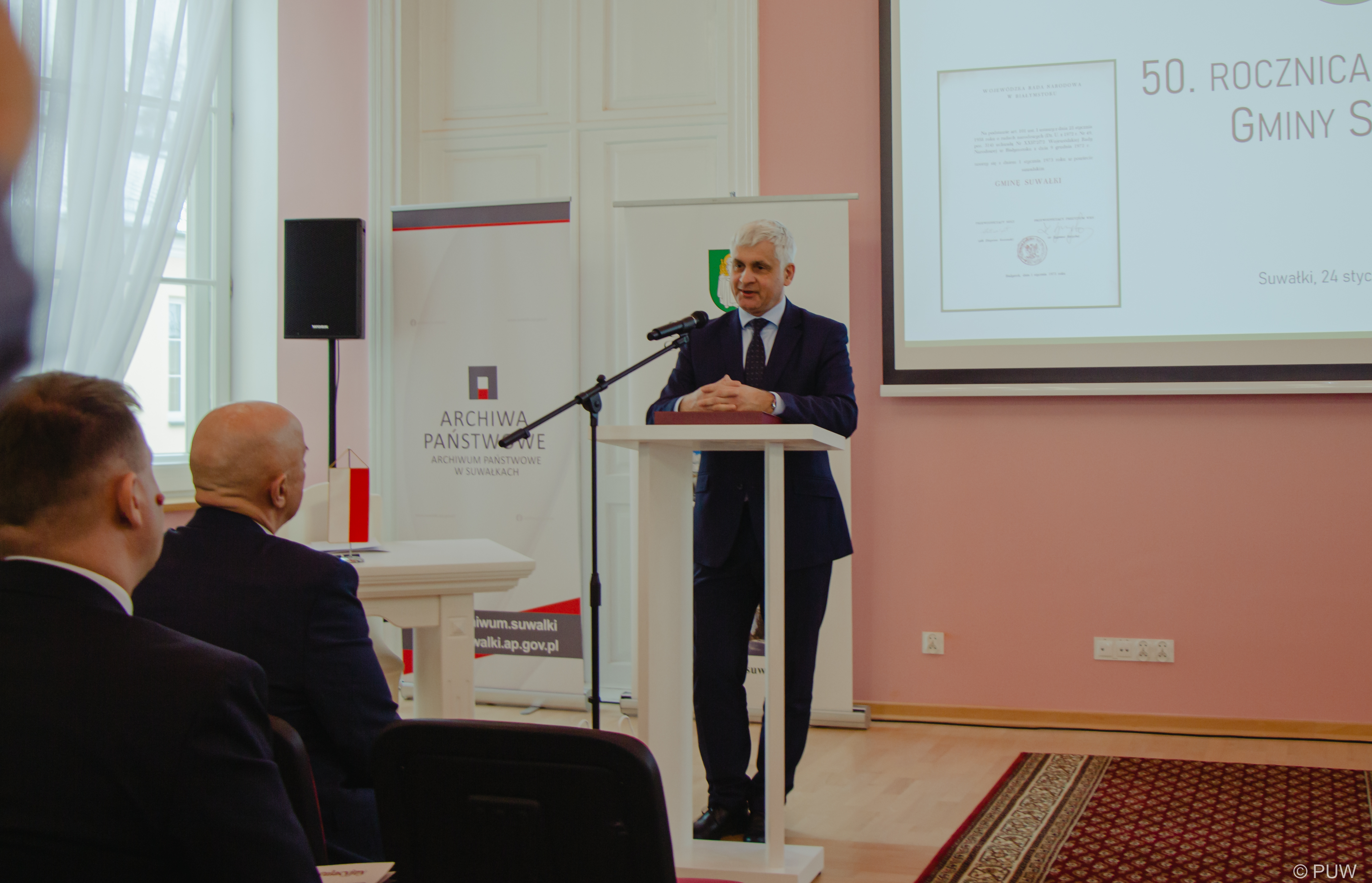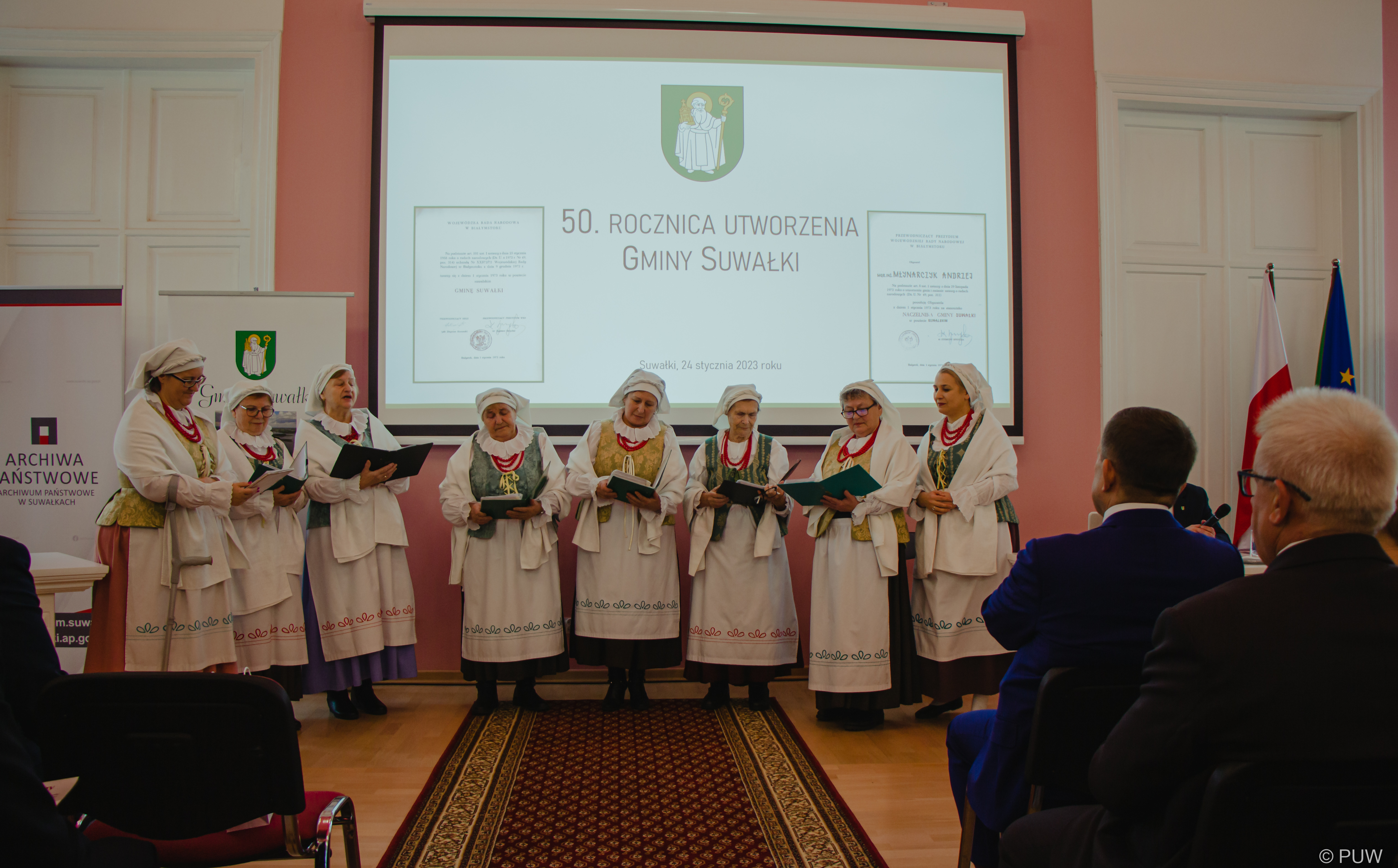 Jubileuszowe spotkanie odbyło się w Archiwum Państwowym w Suwałkach. Wzięli w nim udział radni, władze i pracownicy Gminy Suwałki oraz zaproszeni goście. Wojewoda podlaski na ręce przewodniczącego Rady Gminy Marka Jeromina przekazał pamiątkowy grawerton z życzeniami dalszego rozwoju i podziękowaniem za dotychczasową współpracę.