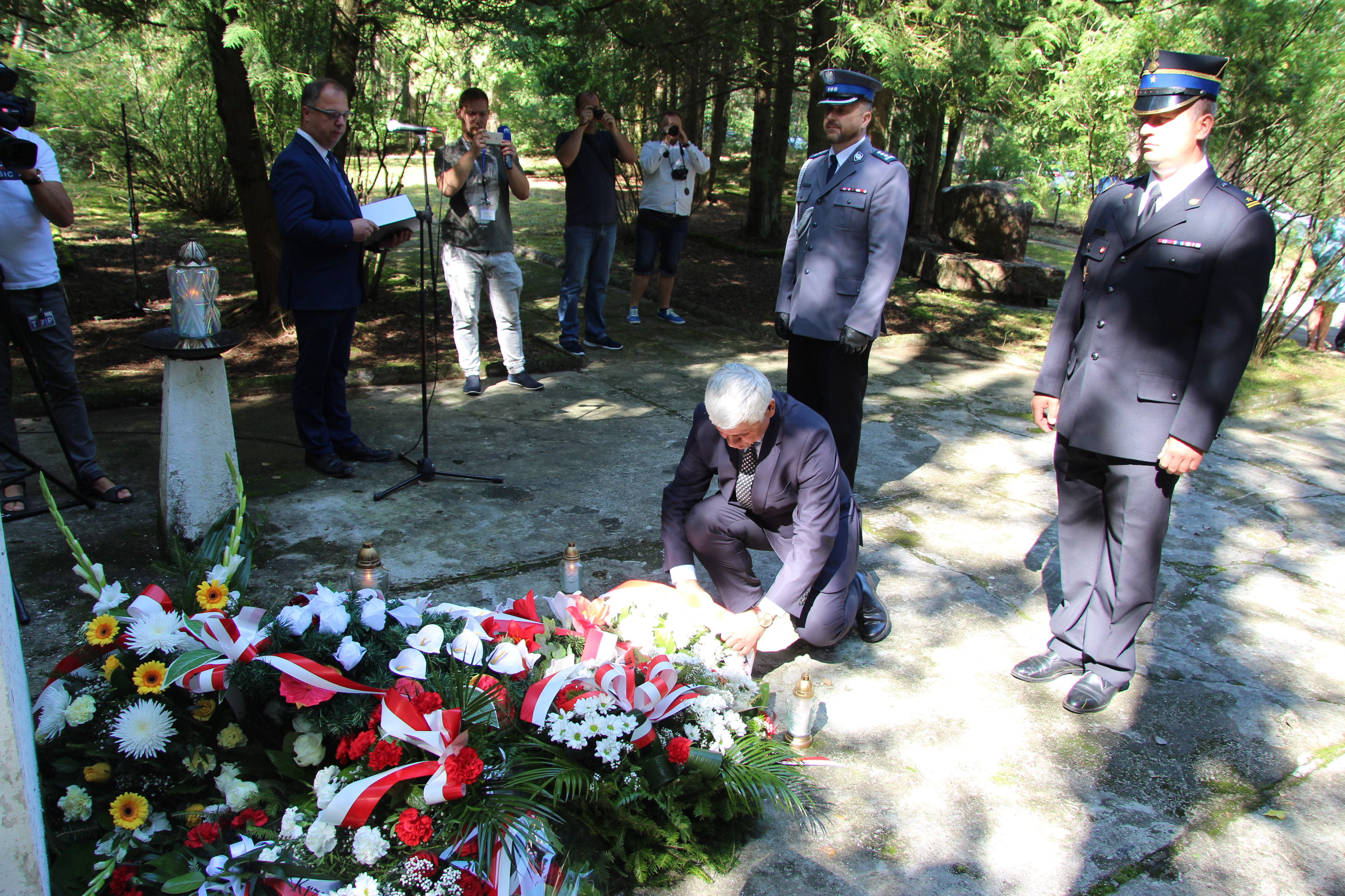 Po okolicznościowych wystąpieniach i modlitwach za zmarłych przy pomniku złożono kwiaty.