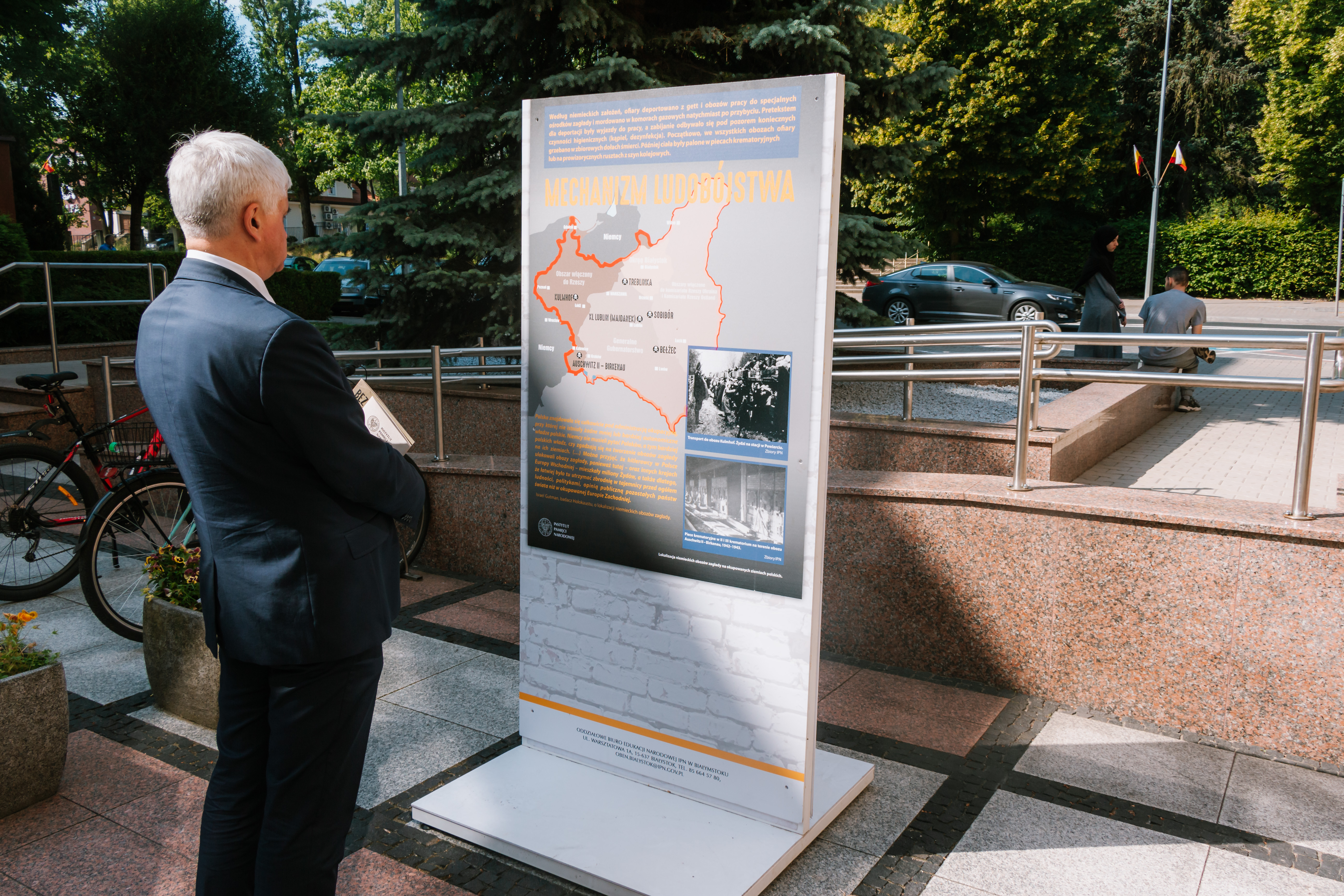 W ramach obchodów rocznicowych, przed budynkiem Podlaskiego Urzędu Wojewódzkiego w Białymstoku, została rozstawiona wystawa elementarna Instytutu Pamięci Narodowej "Niemieckie Obozy Zagłady". Prezentuje najważniejsze informacje na temat niemieckich obozów zagłady Żydów z okresu drugiej wojny światowej: rodzaje obozów, problematykę „ostatecznego rozwiązania kwestii żydowskiej” oraz mechanizm ludobójstwa. Osobne plansze poświęcone zostały sześciu obozom zagłady utworzonych przez Niemców na okupowanych ziemiach polskich, a także ofiarom oraz osobom odpowiedzialnym za popełnione zbrodnie. Dodatkowo w holu dostępne są materiały edukacyjne przygotowane przez Oddziałowe Biuro Edukacji Narodowej IPN w Białymstoku. Wystawę można oglądać przez tydzień.