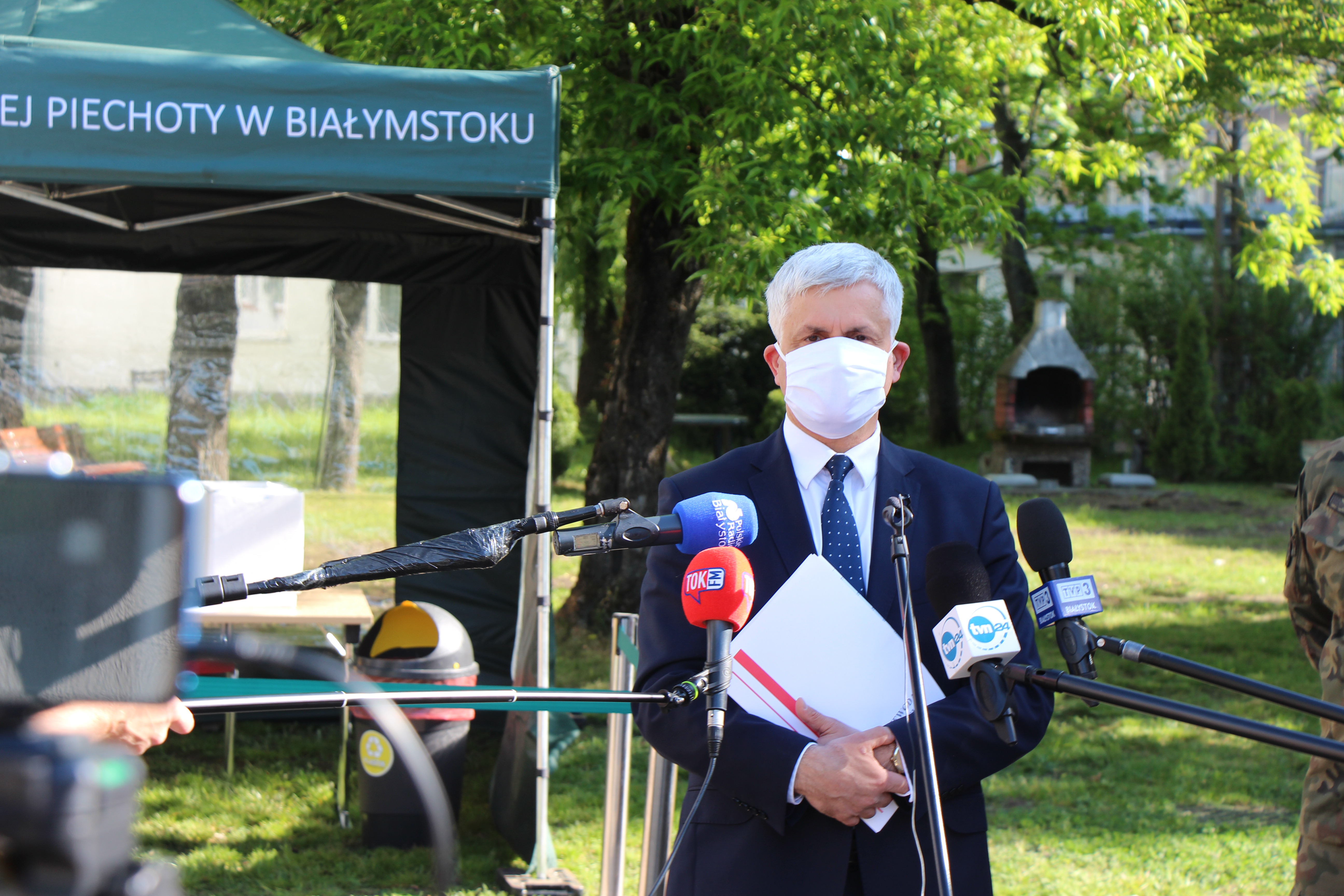- Dziś rozpoczynamy akcję pobierania wymazów od pracowników Domu Pomocy Społecznej w Białymstoku, przy ul. Baranowickiej - potrwa cztery dni. To 38. placówka w regionie, której personel będzie przebadany pod kątem koronawirusa. Skupiamy się na domach pomocy społecznej i zakładach opiekuńczo-leczniczych, zarówno publicznych, jak i prywatnych - powiedział wojewoda Bohdan Paszkowski.