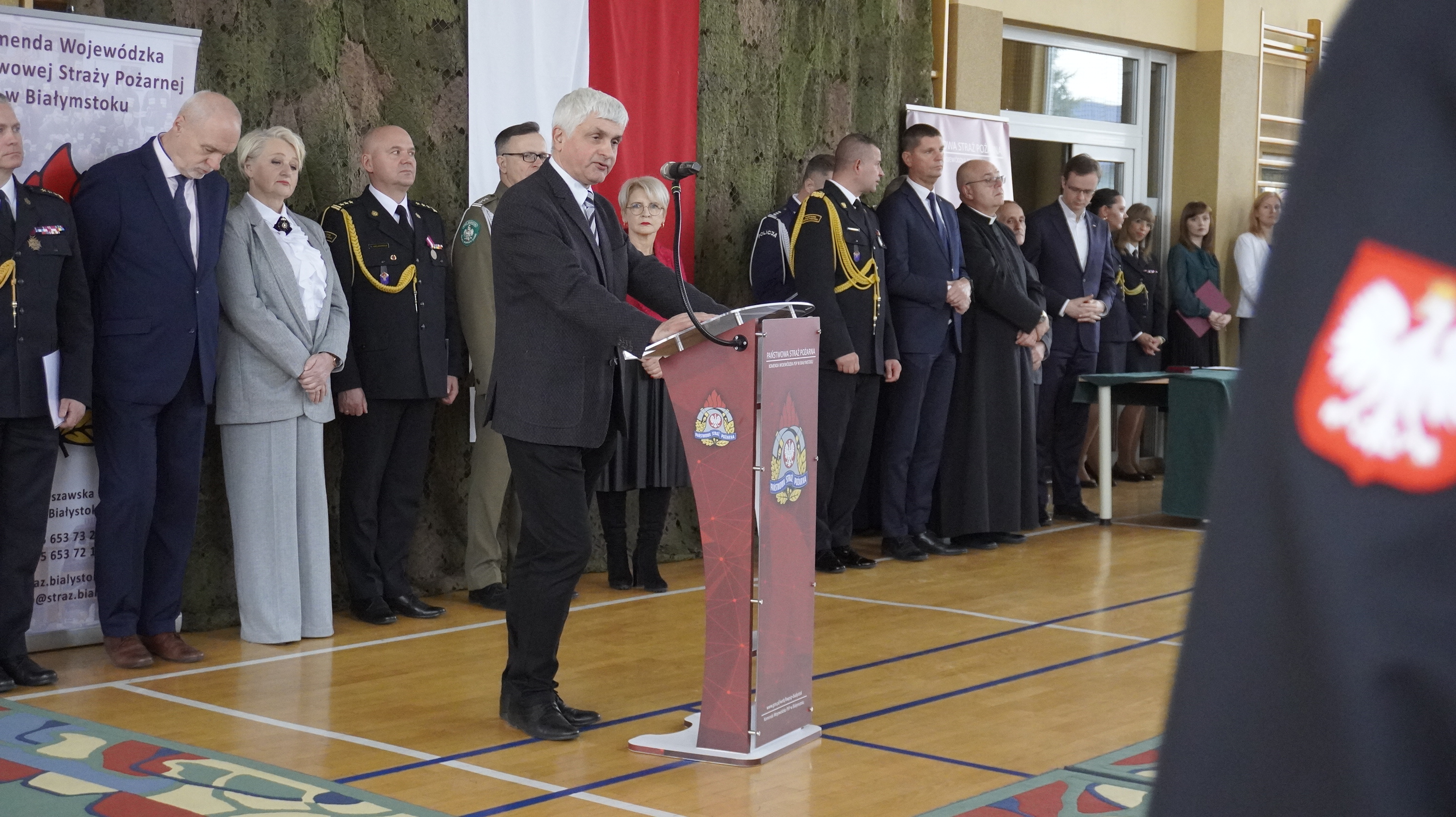 St. bryg. Sebastian Zdanowicz, Podlaski Komendant Wojewódzki PSP, przekazał wszystkim funkcjonariuszom i pracownikom cywilnym podziękowania za dotychczasowe zaangażowanie i przekazał życzenia dalszej, bezpiecznej służby. Przypomniał również o udziale w dążeniu do niepodległości polskich strażaków.
