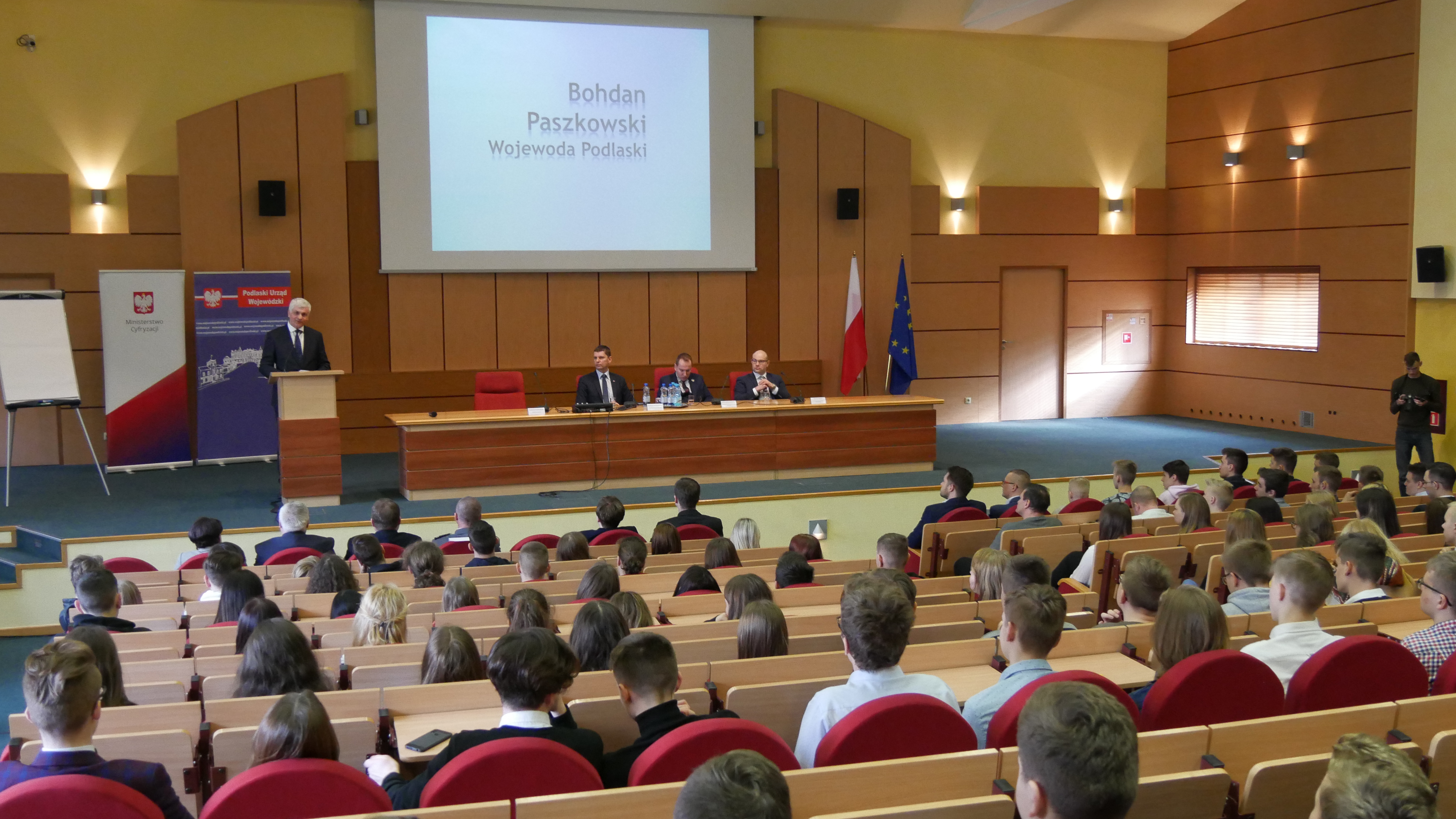 - Wszyscy jesteśmy świadomi, że cyfryzacja postępuje bardzo szybko. Internetu używamy codziennie – w domu, w pracy, w szkole. Przez konferencję „Bezpieczeństwo w sieci dzieci i młodzieży” chcemy zwrócić uwagę na różnego rodzaju zagrożenia, które mogą czyhać szczególnie na osoby młode – powiedział dziennikarzom wojewoda podlaski Bohdan Paszkowski przed spotkaniem z uczniami w ramach cyklu konferencji zainicjowanych przez Ministerstwo Cyfryzacji.