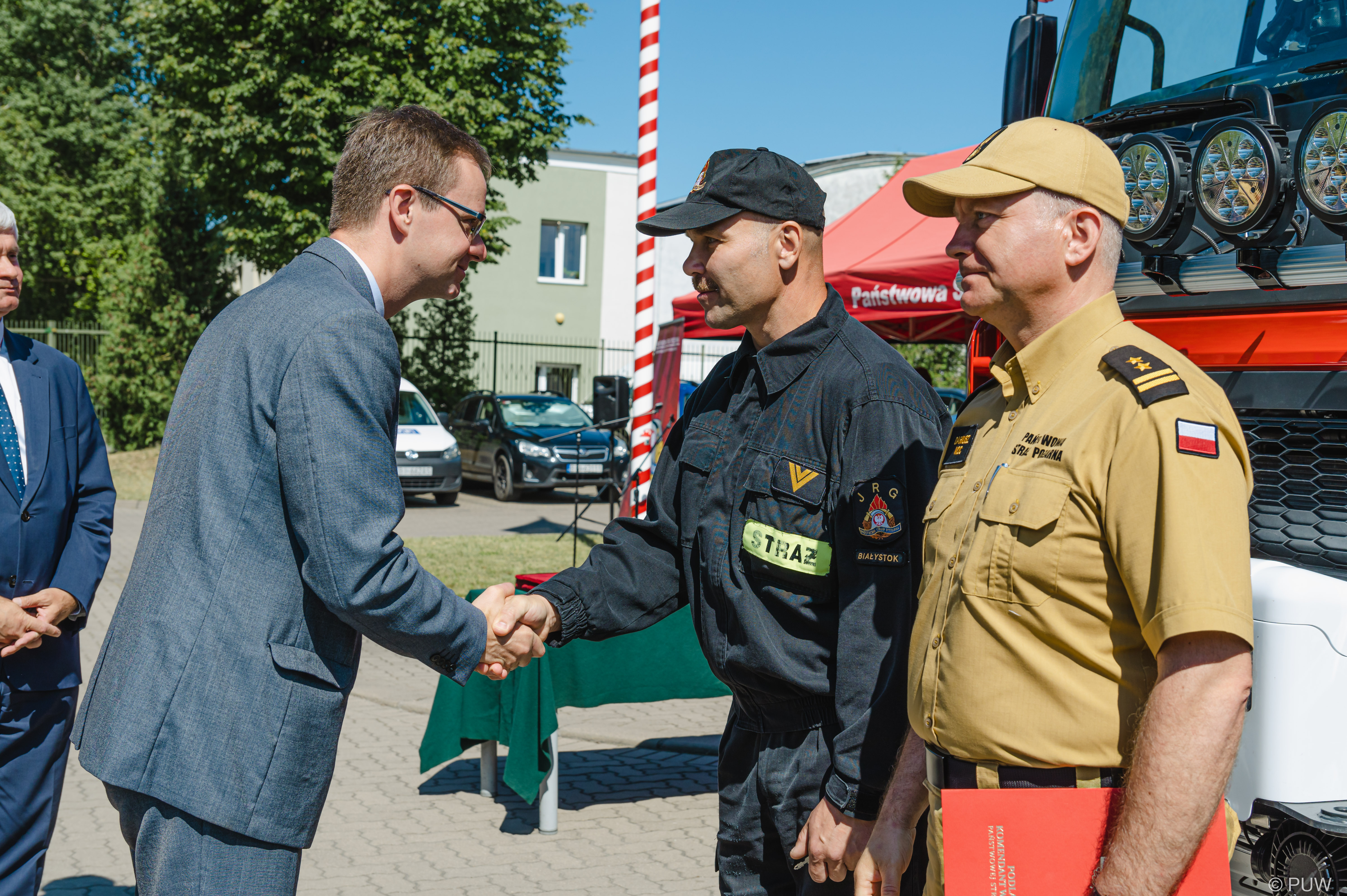 Białostoccy strażacy z jednostki przy ul. Przędzalnianej mają nowy samochód ratowniczo-gaśniczy, którym mogą jeździć do wypadków i gaszenia pożarów. W uroczystości przekazania pojazdu wzięli udział m.in. wiceminister edukacji i nauki Dariusz Piontkowski, senator Mariusz Gromko oraz wojewoda podlaski Bohdan Paszkowski i wicewojewoda podlaski Tomasz Madras.