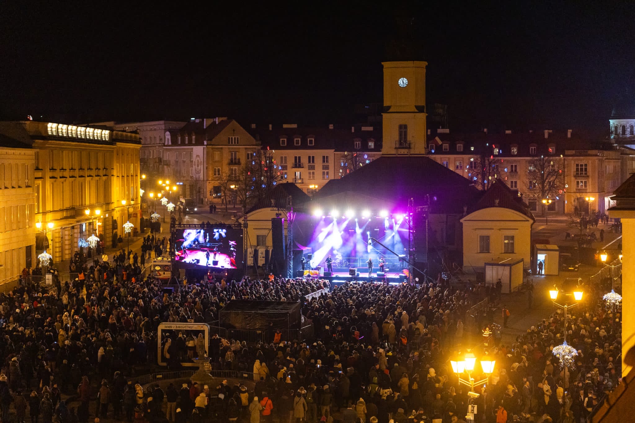 Białostoczanie przywitali Nowy Rok tradycyjnie - na miejskiej zabawie na Rynku Kościuszki w Białymstoku. Podczas tej wyjątkowej noworocznej imprezy miasto tętniło życiem. Przed publicznością wystąpili: YUOS i Mega Band, Papa D i DJ ADAMUS. Noworoczne życzenia mieszkańcom o północy złożyli wojewoda podlaski Jacek Brzozowski i prezydent Białegostoku Tadeusz Truskolaski. Ich słowa pełne nadziei i optymizmu rozbrzmiewały wśród witających nowy rok Białostoczan, tworząc niepowtarzalny moment jedności i wspólnoty. Mieszkańcy zaczęli Nowy Rok z uśmiechami na twarzach, gotowi na nowe wyzwania, jakie przyniesie im zbliżający się czas.
