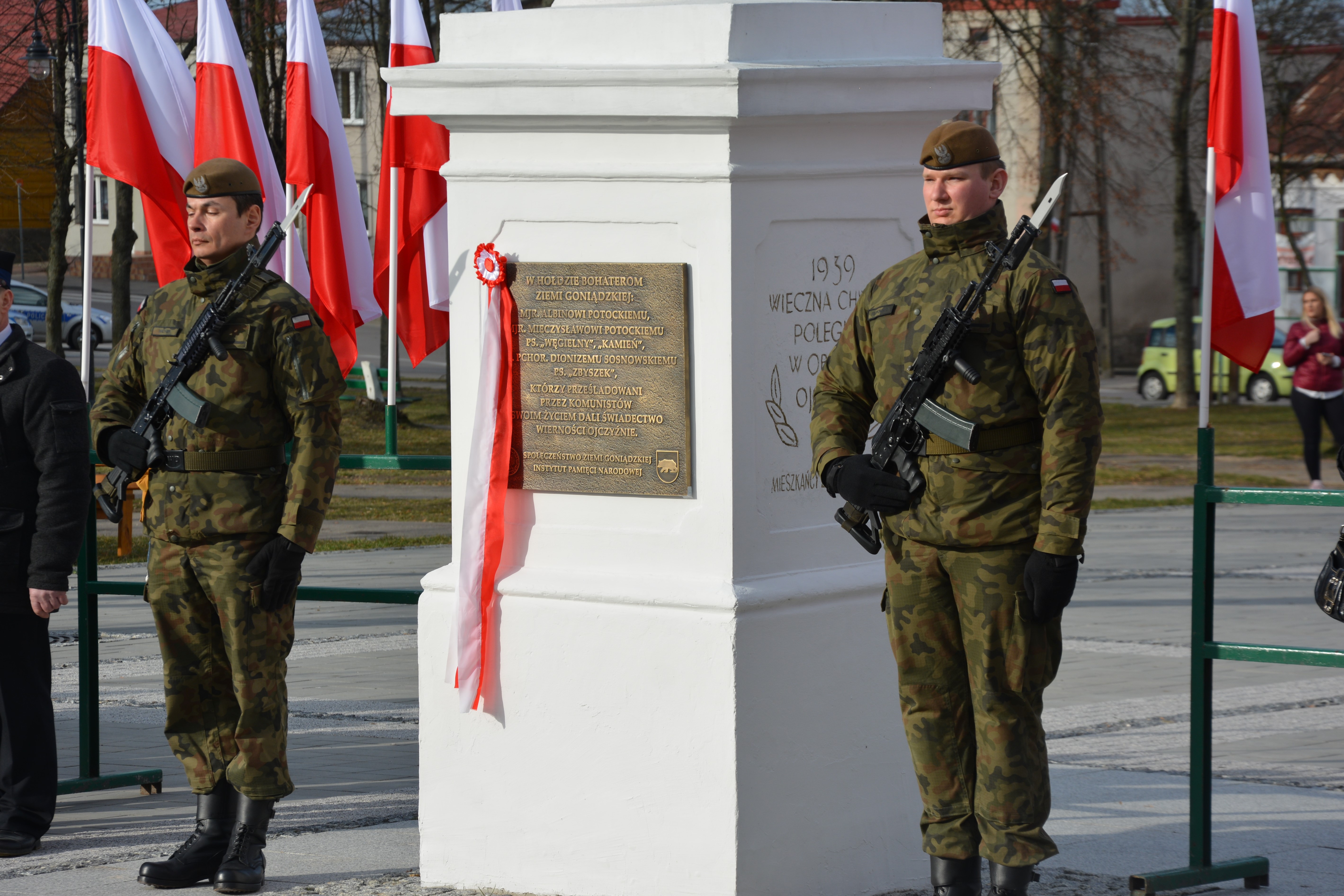 W Goniądzu w niedzielę (1.03) w ramach obchodów Narodowego Dnia Pamięci Żołnierzy Wyklętych odbyła się uroczystość odsłonięcia i poświęcenia tablicy upamiętniającej bohaterów Ziemi Goniądzkiej - Albina Potockiego, Mieczysława Potockiego i Dionizego Sosnowskiego. Wziął w niej udział wicewojewoda podlaski Tomasz Madras.