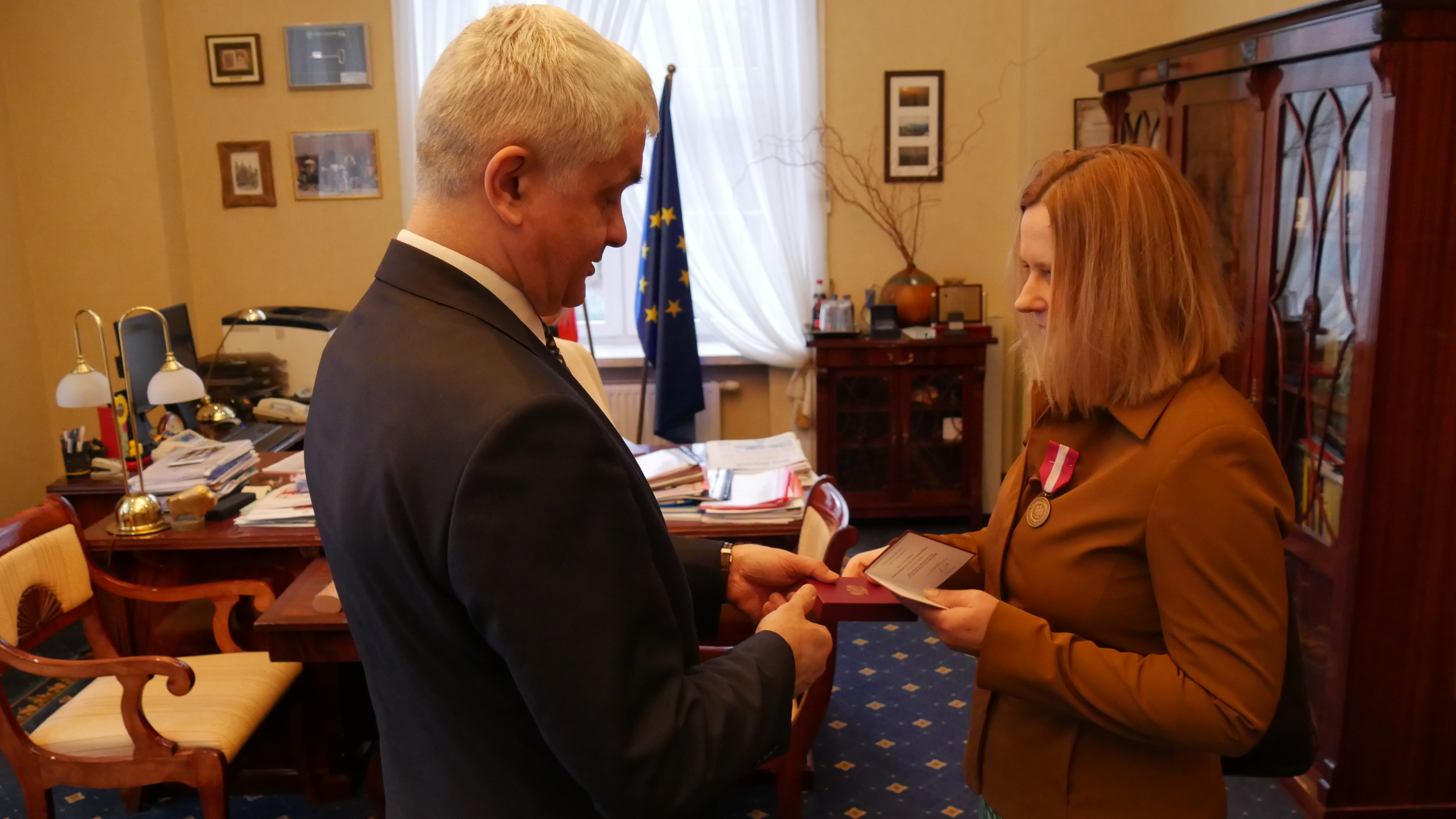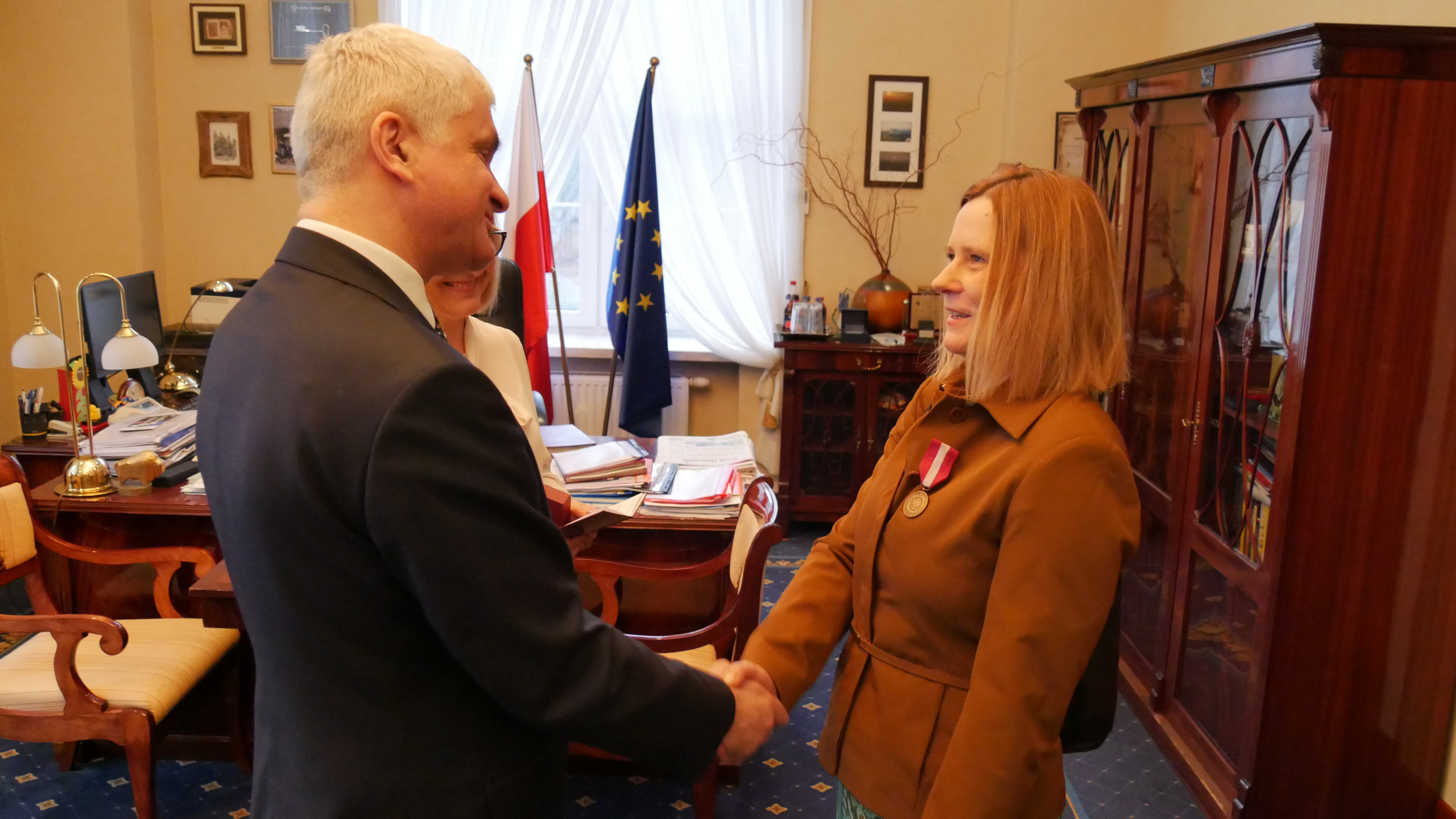 Wojewoda podlaski Bohdan Paszkowski wręczył medal. Odznaczenie zostało nadane przez Prezydenta RP za długoletnią służbę państwową pani dr Aleksandrze Porankiewicz- Żukowskiej z Instytut Socjologii UwB.