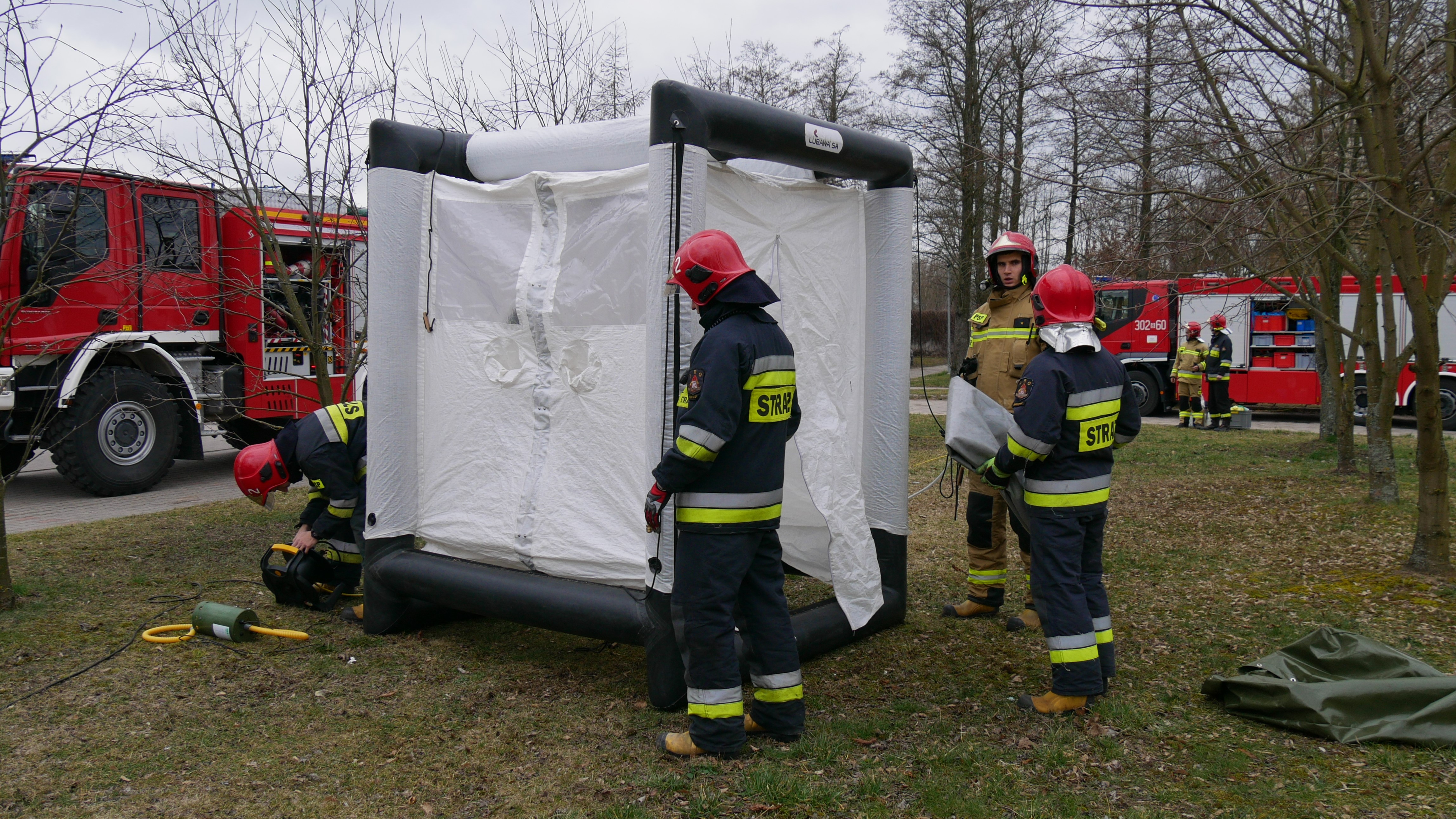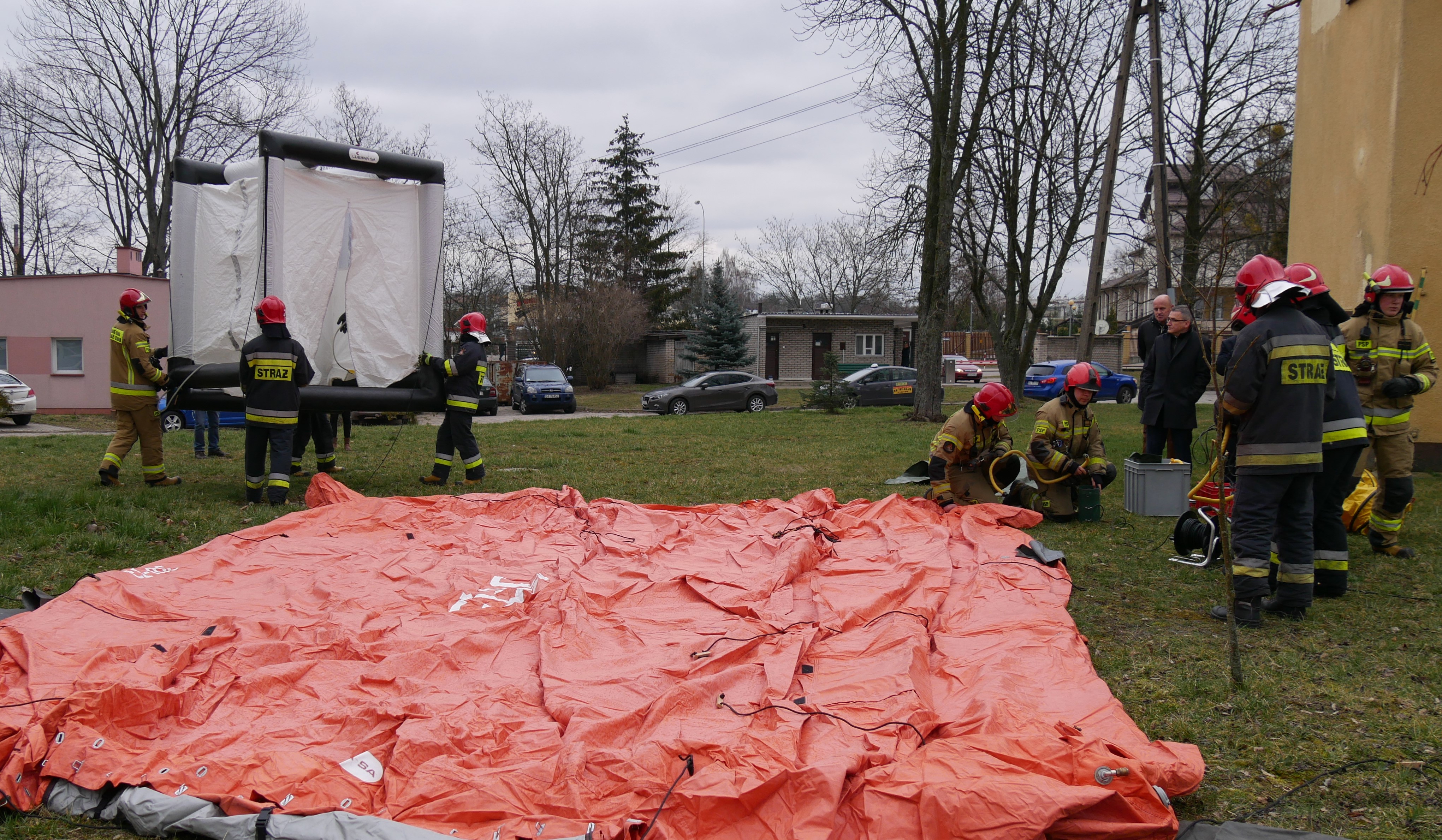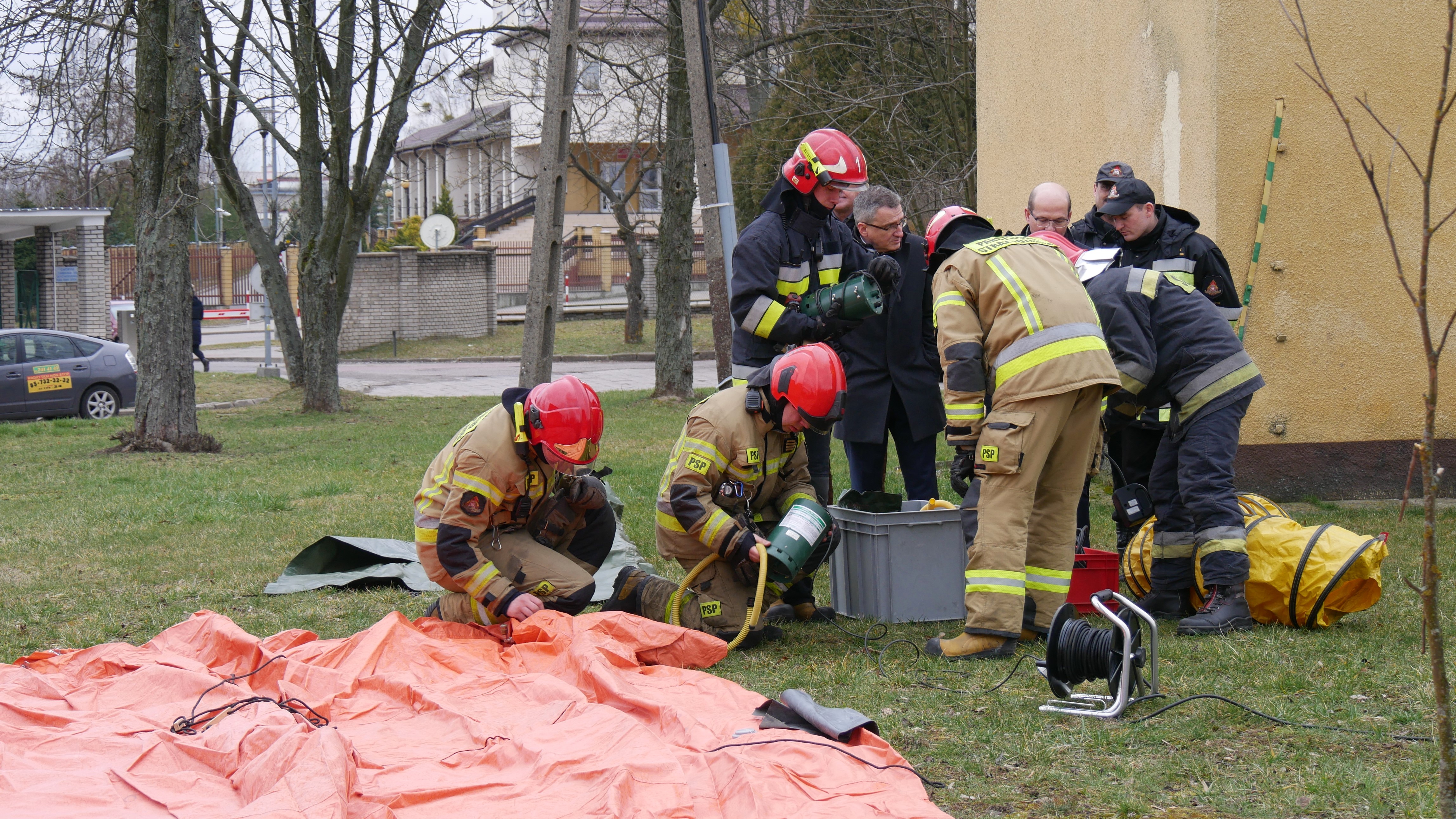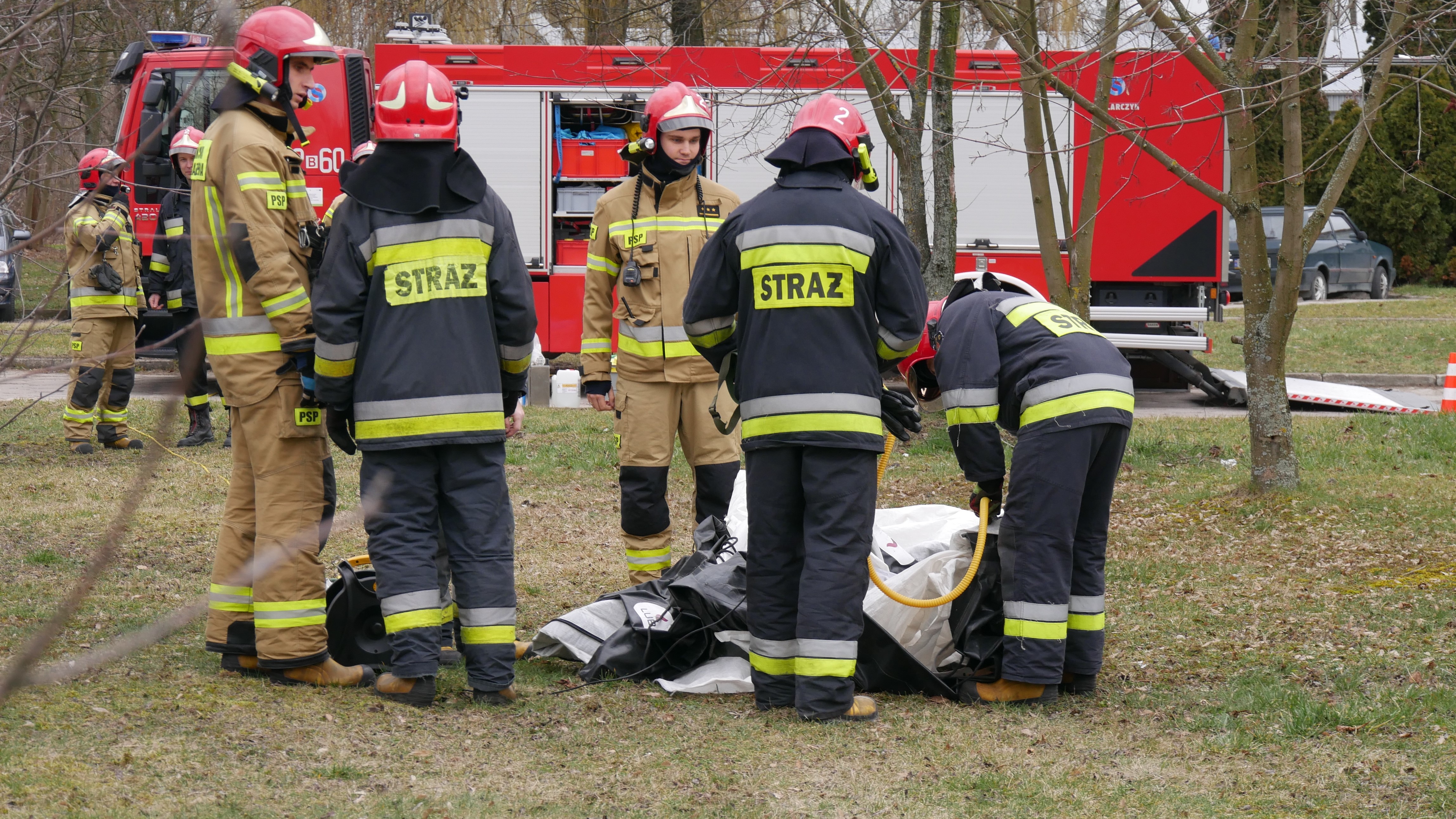 Ćwiczenia straży pożarnej na wypadek koronowirusa