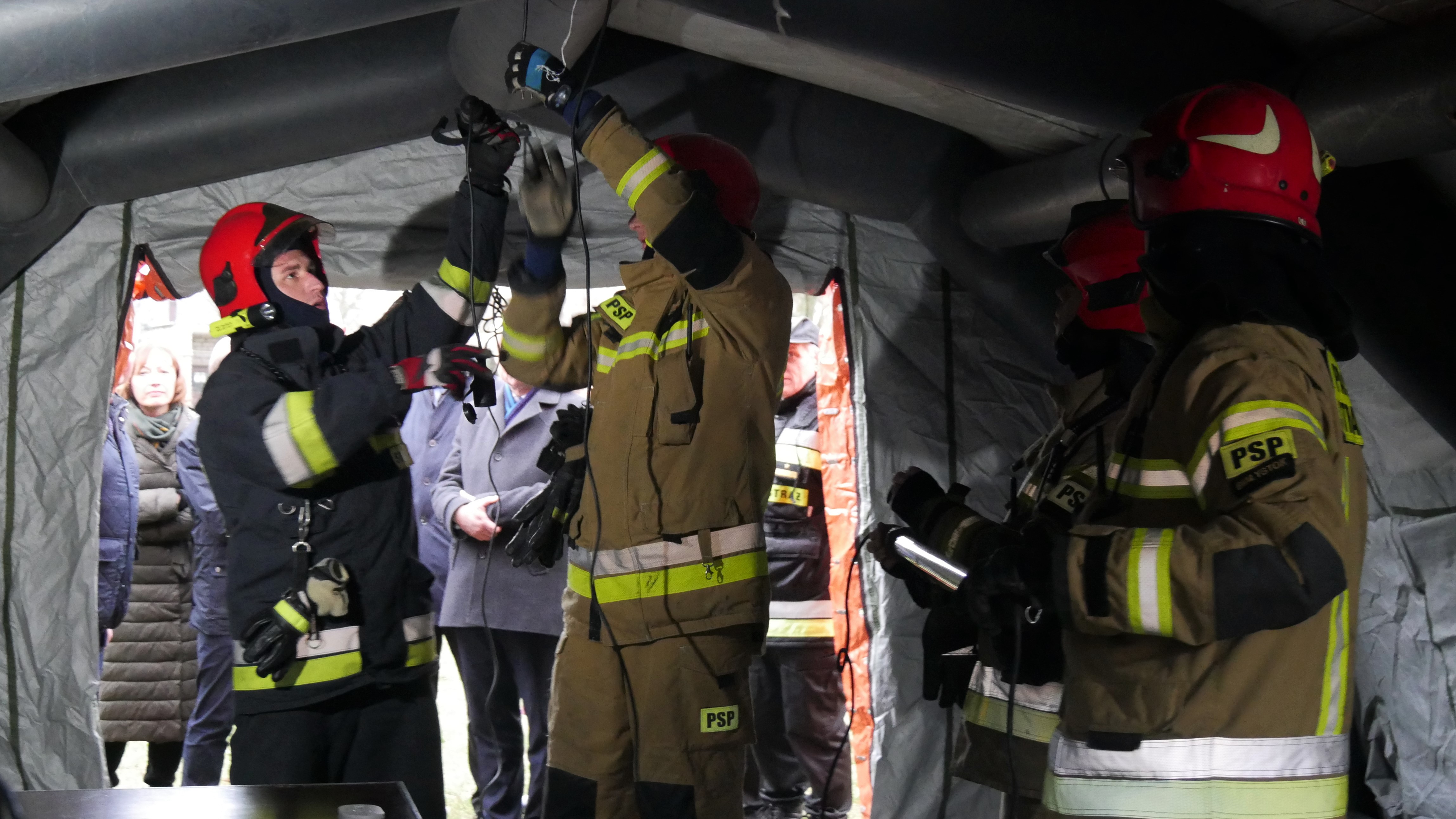 Celem ćwiczenia jest przygotowanie się na ewentualność rozbicia i uruchomienia polowej izby przyjęć, przeznaczonej na przyjęcie chorych zakażonych lub podejrzanych o zakażenie COVID-19. Namioty rozstawione przez strażaków mają wymagany osprzęt, aby mogły w nich pracować zespoły medyczne, są ogrzewane, pozostaną przed szpitalami do odwołania.