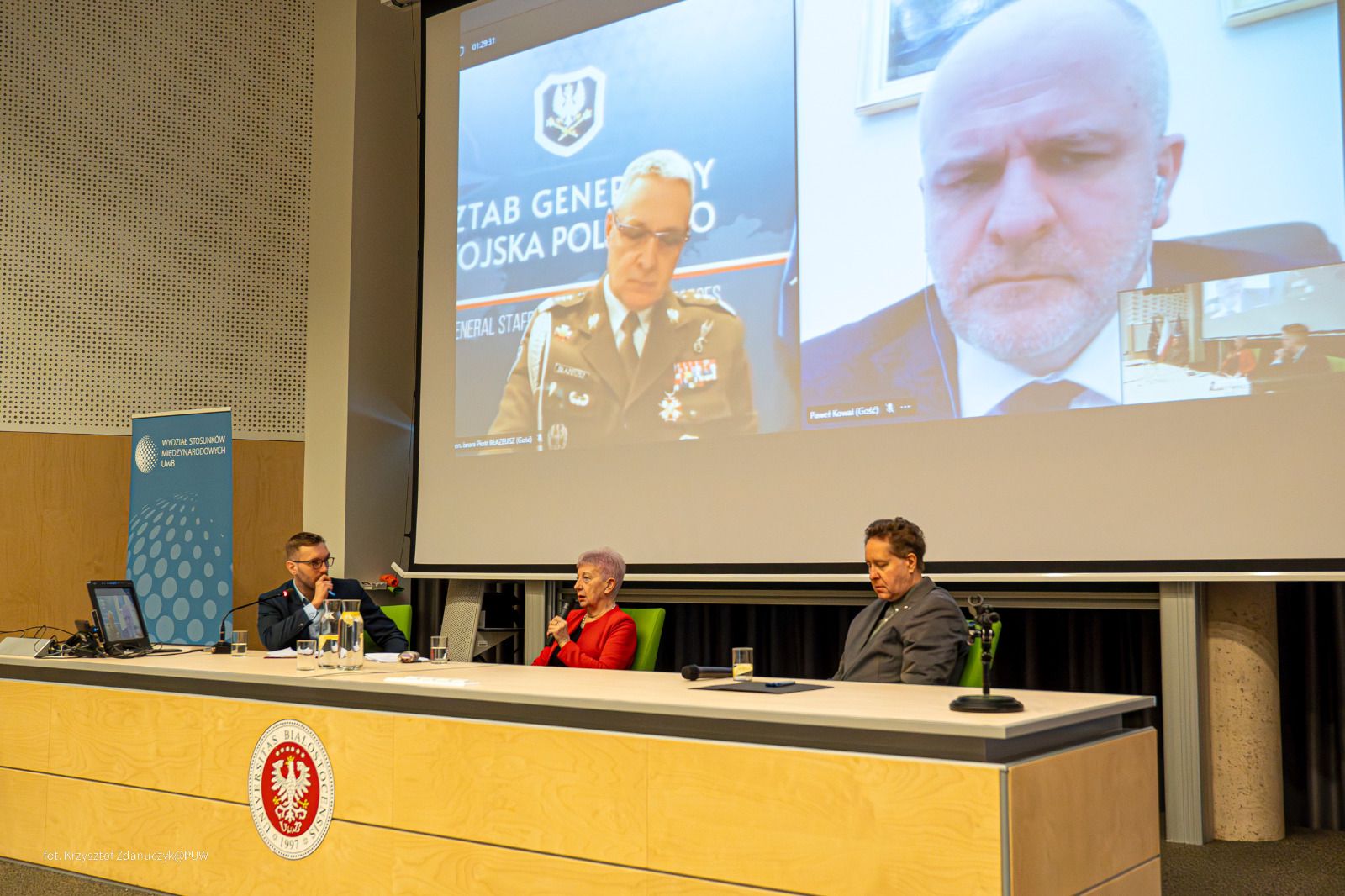 W dyskusji udział wzięli naukowcy z białostockiej uczelni: amerykanistka prof. Halina Parafianowicz oraz ekspert od spraw bezpieczeństwa prof. Daniel Boćkowski, a także łączący się online gen. broni Piotr Błazeusz, zastępca Szefa Sztabu Generalnego Wojska Polskiego i prof. Paweł Kowal – polityk, politolog, historyk i publicysta.