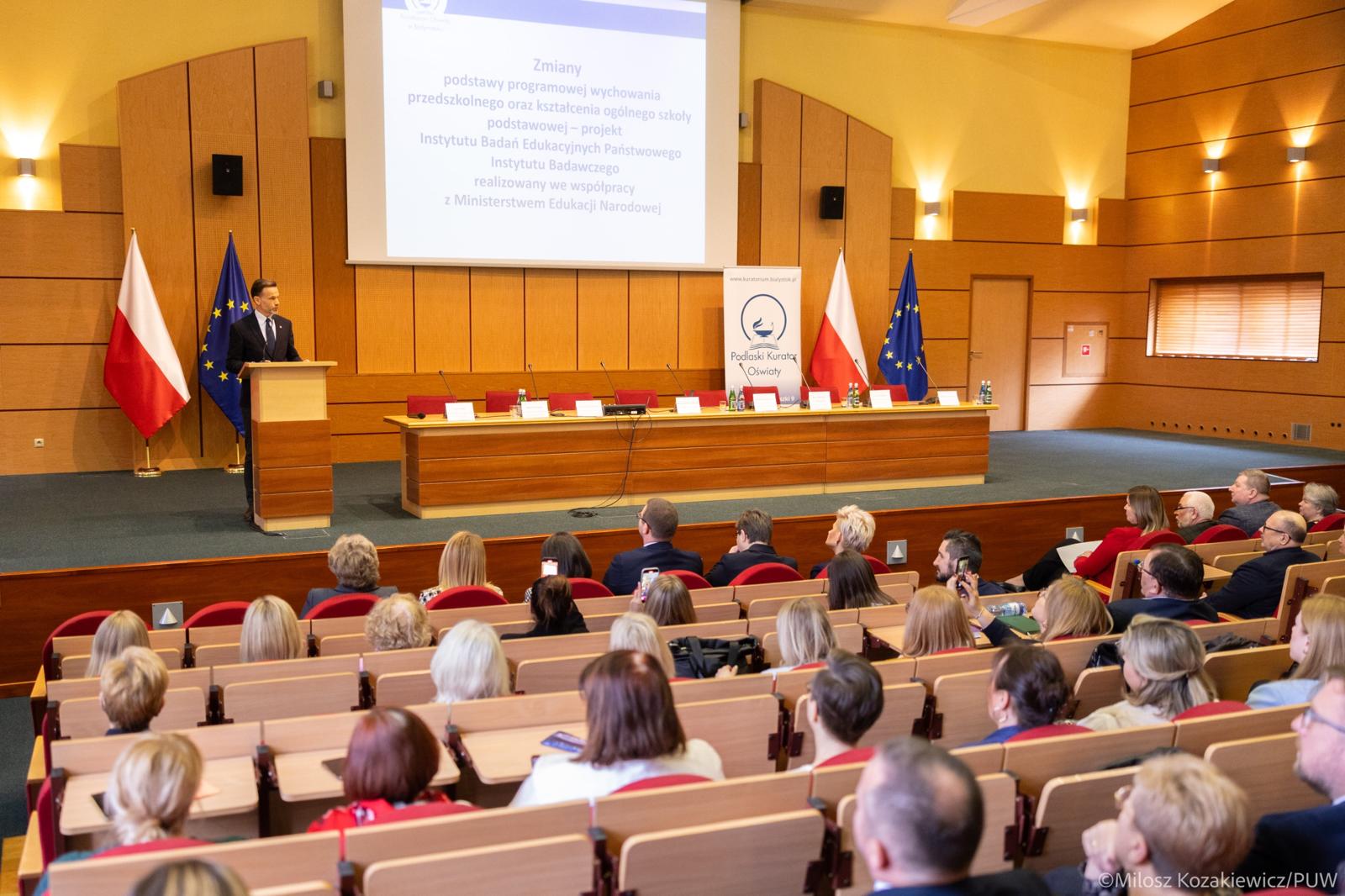 „Jakich zmian wymagają podstawy mojego przedmiotu, aby w pełni realizowały założenia profilu absolwenta?". To hasło debaty, którą w Podlaskim Urzędzie Wojewódzkim zorganizowało Ministerstwo Edukacji Narodowej wraz z białostockim Kuratorium Oświaty. Wydarzenie było częścią ogólnopolskich konsultacji prowadzonych przez resort we współpracy z Instytutem Badań Edukacyjnych, w związku z planowaną reformą programową. W debacie wzięli udział wiceminister Katarzyna Lubnauer i wojewoda Jacek Brzozowski.