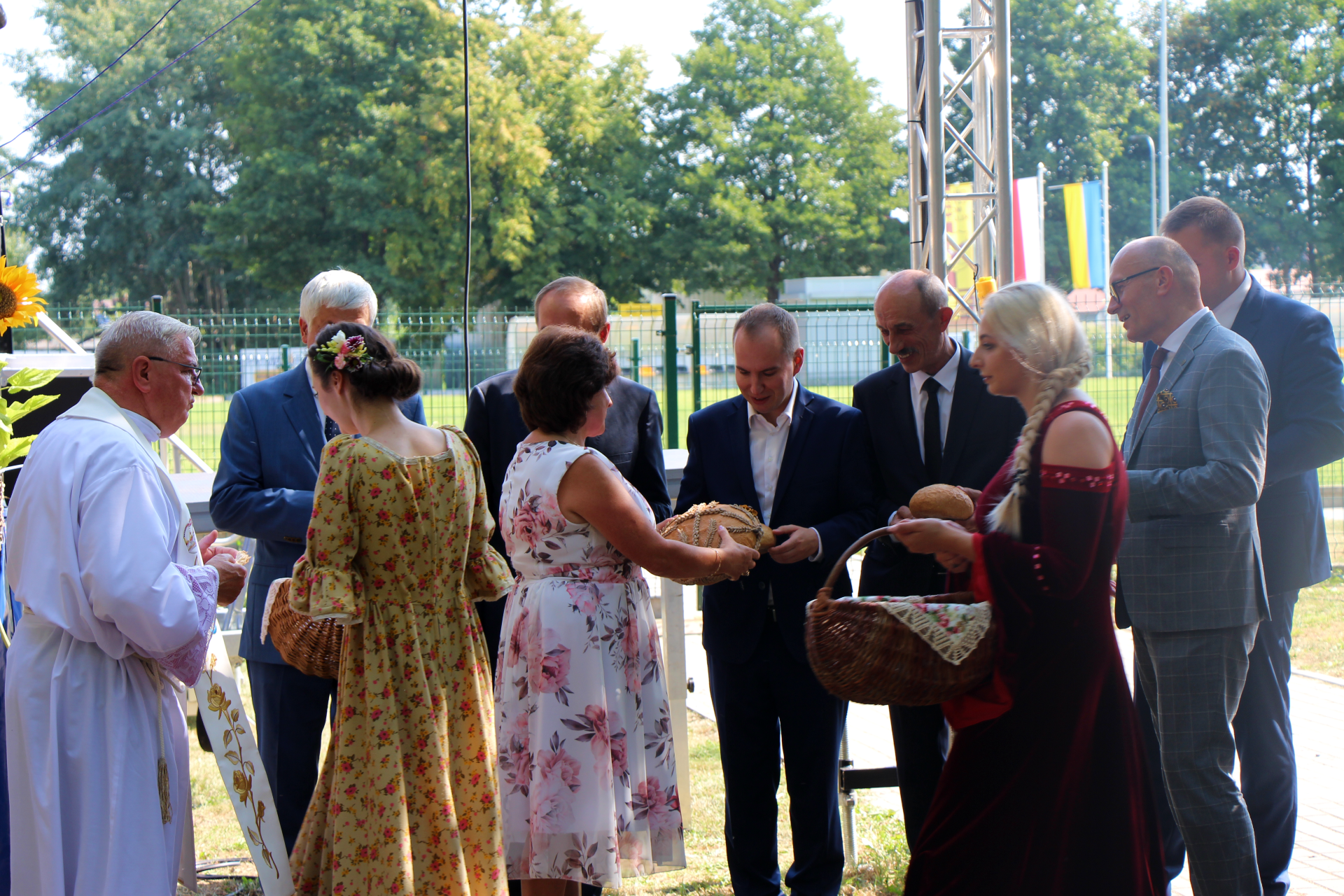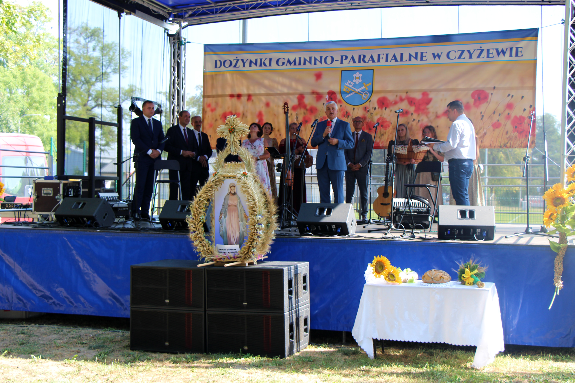 Korowód dotarł do parku miejskiego, gdzie na uczestników dożynek czekało wiele atrakcji. Wszystkich przywitała burmistrz Czyżewa Anna Bogucka. Po oficjalnych przemówieniach gości - m.in. senatora Jacka Boguckiego i wojewody podlaskiego Bohdana Paszkowskiego - odbył się tradycyjny obrzęd przekazywania i dzielenia się chlebem wypieczonym ze zbóż z tegorocznych zbiorów. W programie imprezy zaplanowano m.in. konkursy kulinarne, animacje dla dzieci, pokaz tańca historycznego oraz blok artystyczny, w tym koncerty muzyczne. Nie zabrakło stoisk gastronomicznych z potrawami przygotowanymi przez lokalne Koła Gospodyń Wiejskich.