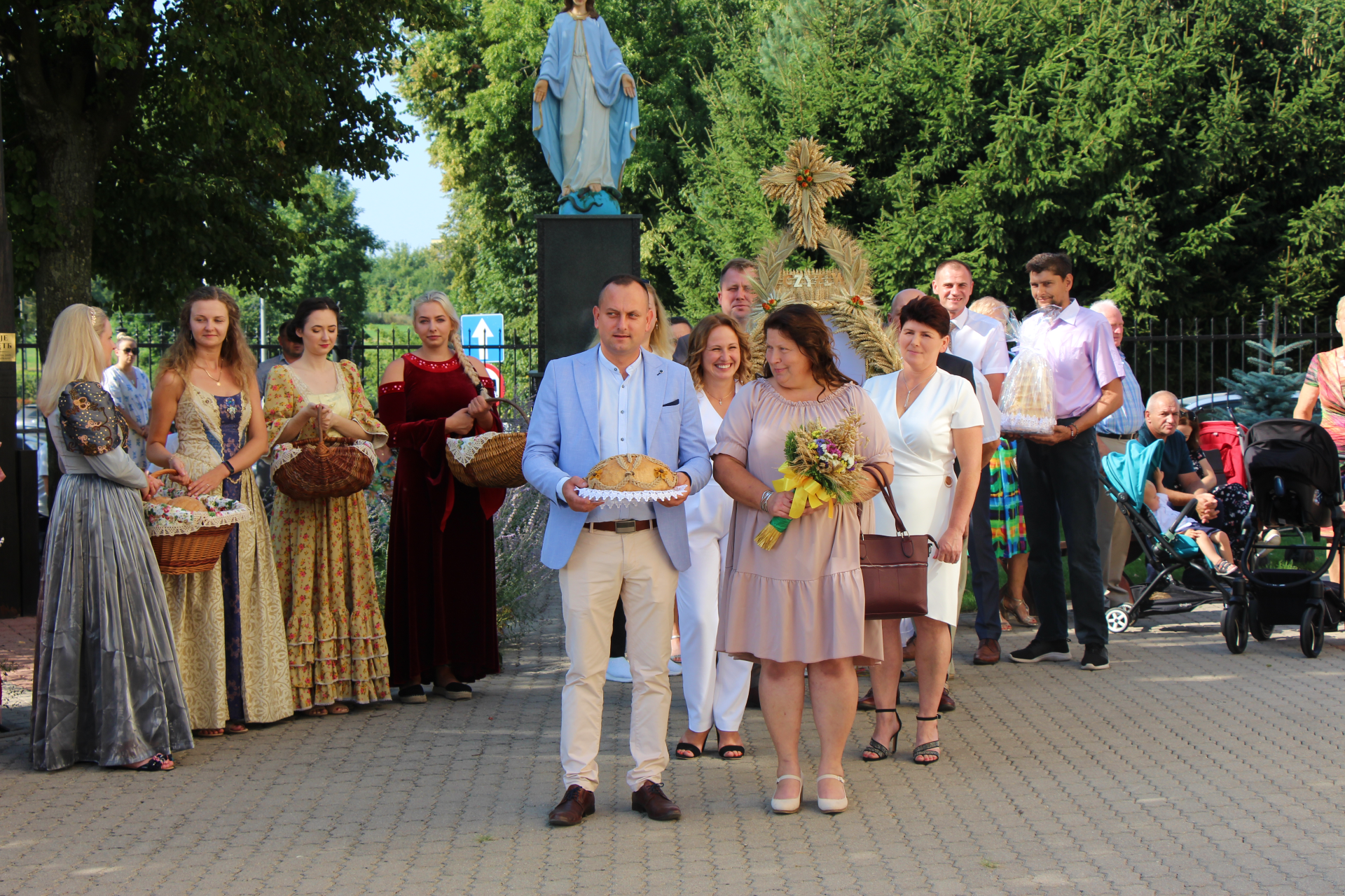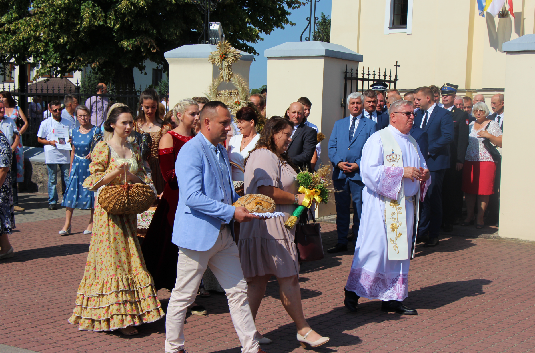 Po zakończeniu mszy barwny korowód dożynkowy przeszedł ulicami miasta. Zatrzymał się przy zmodernizowanej ul. Duży Rynek, gdzie symbolicznie przecięto wstęgę na znak oddania inwestycji do użytku. Po renowacji droga ma nową nawierzchnię, a fontanna zyskała kolorowe oświetlenie. Powstały również miejsca parkingowe, w tym dla osób z niepełnosprawnościami.