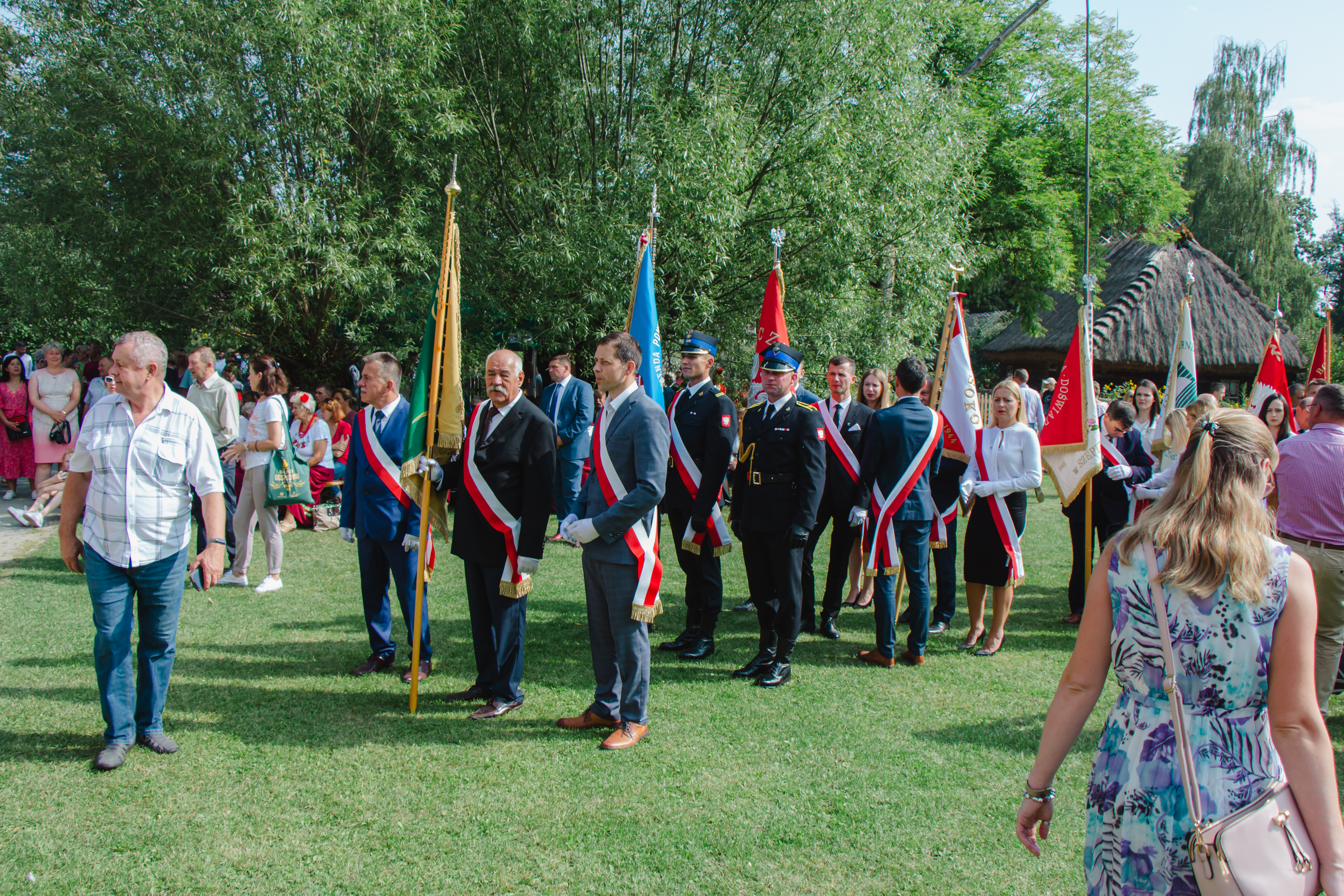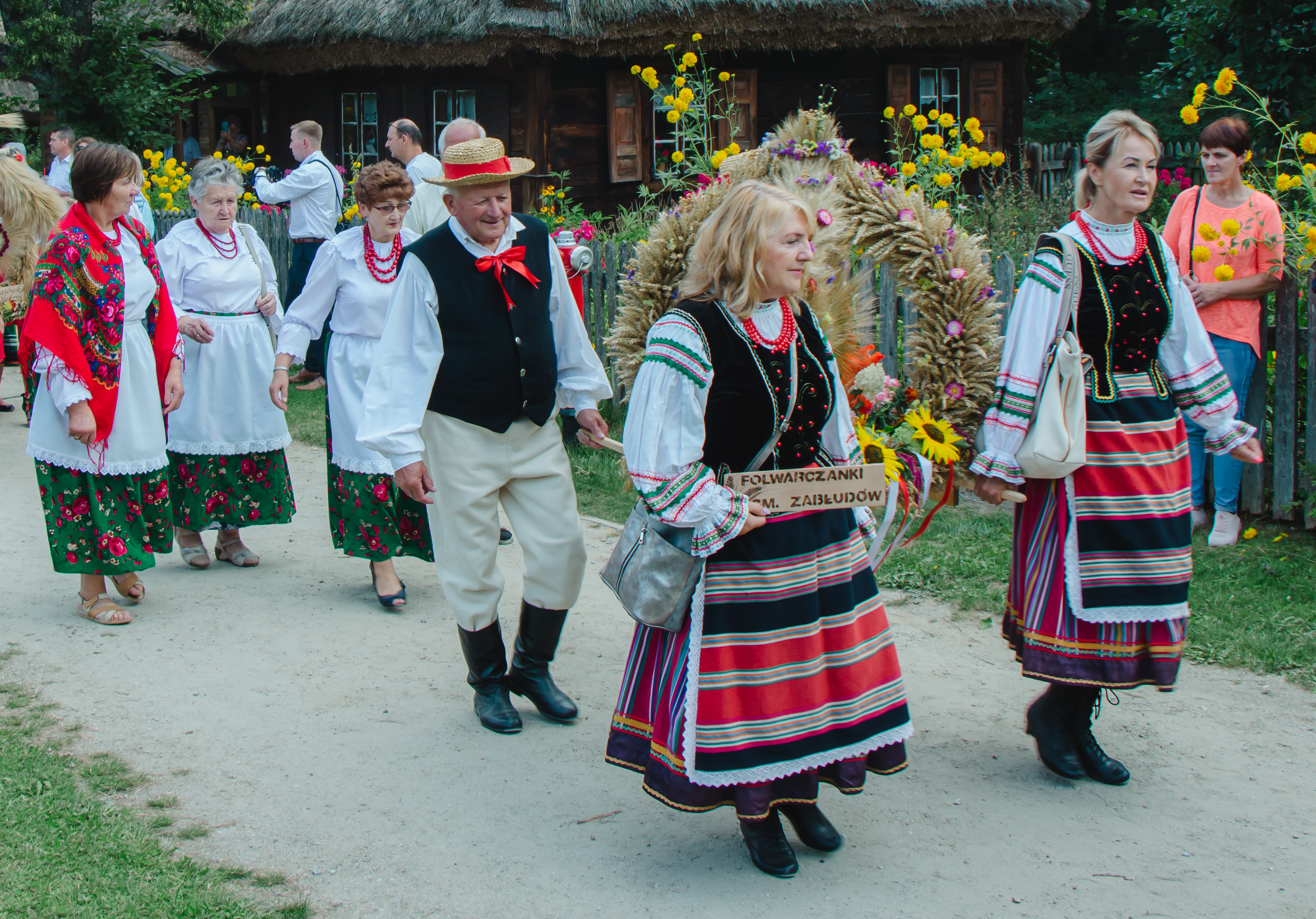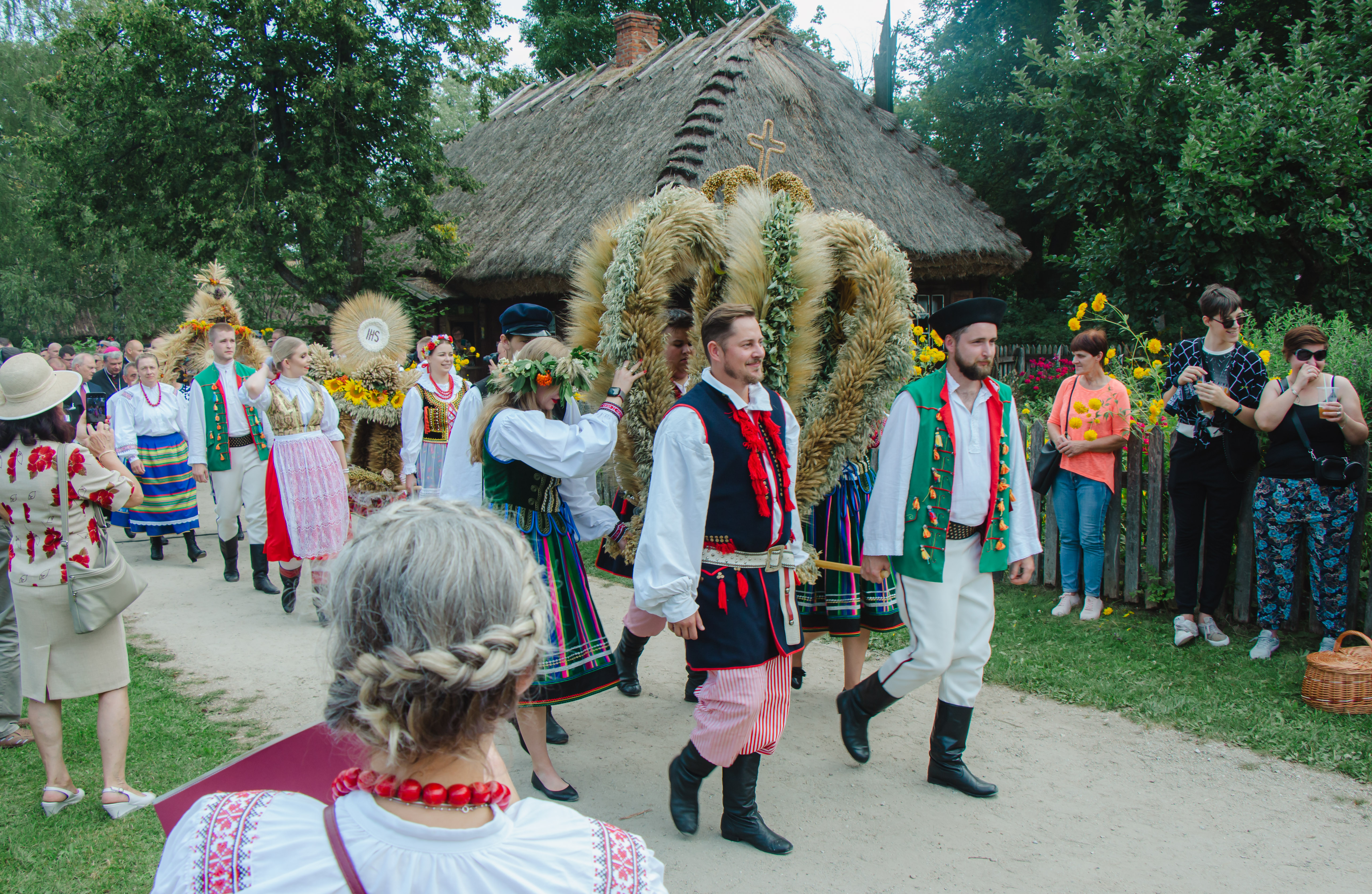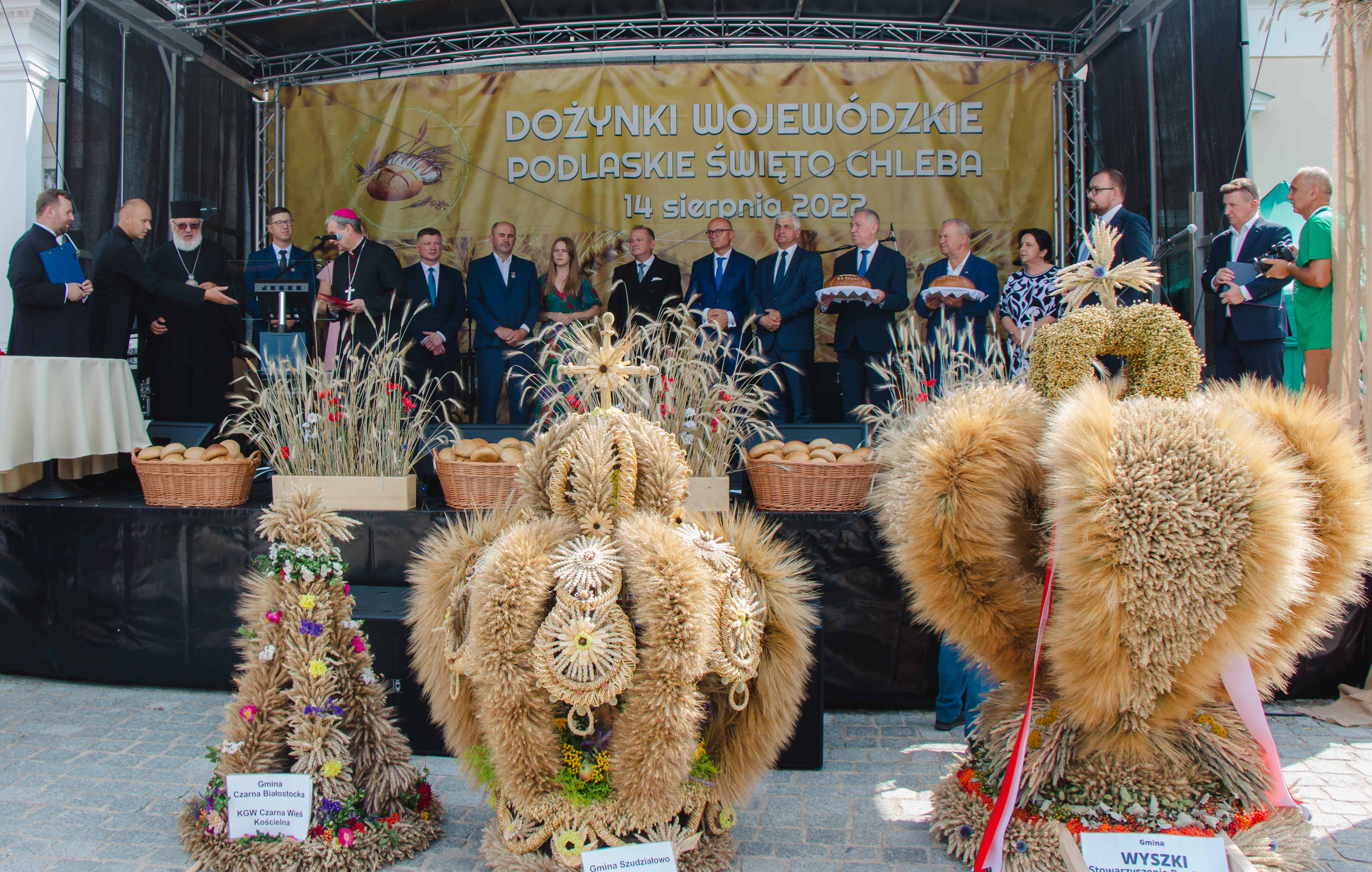 Z kościoła uczestnicy przeszli w procesji z wieńcami dożynkowymi na miejsce uroczystości. Starostowie dożynkowi: Vira i Piotr Tynkiewiczowie oraz Ewa i Arkadiusz Koc przekazali na ręce ministra rolnictwa i rozwoju wsi, wicepremiera Henryka Kowalczyka chleb upieczony z mąki pochodzącej z ostatnich zbiorów.