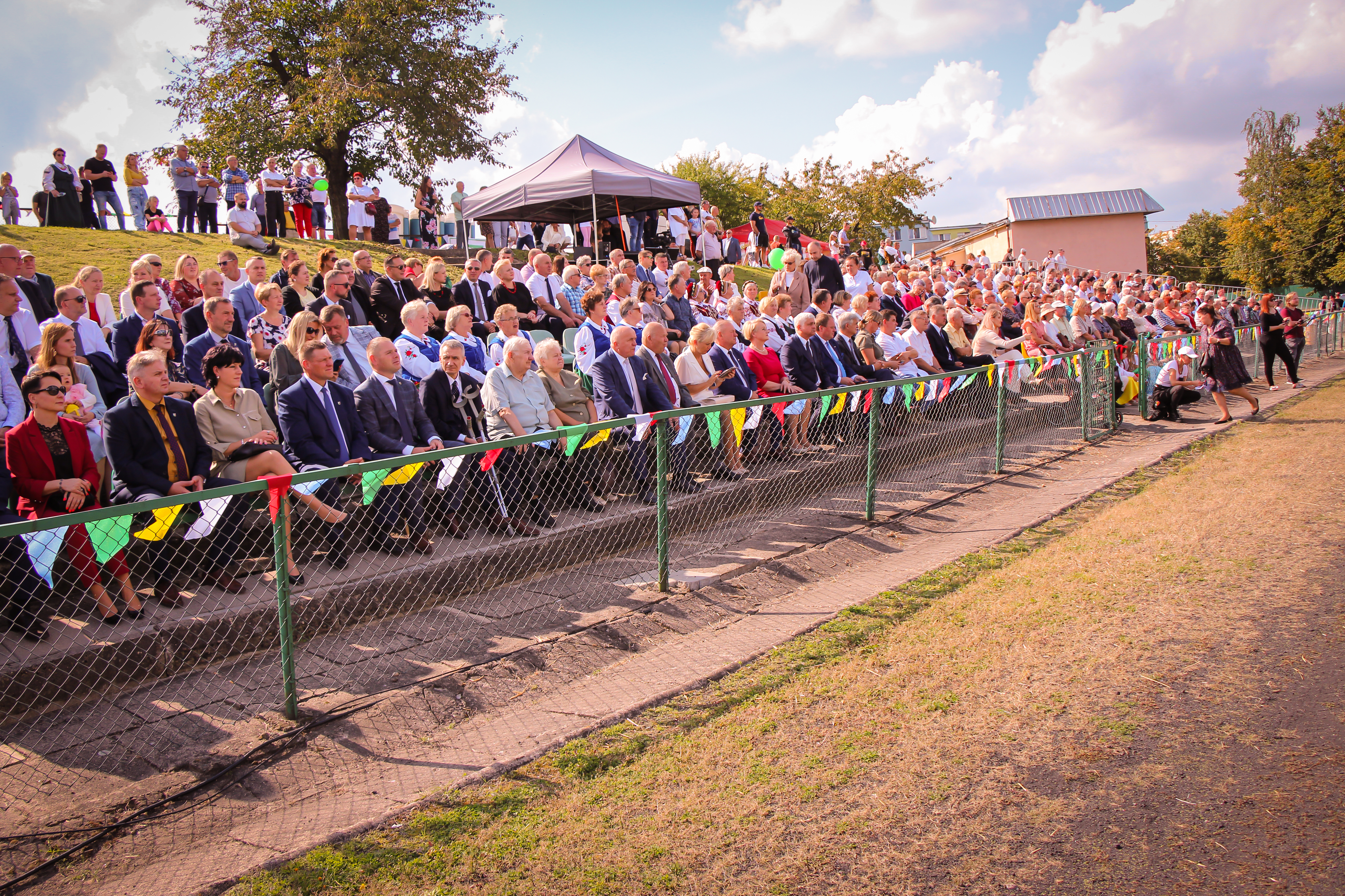 Po mszy uroczystości przeniosły się na miejski stadion. Ulicami Dąbrowy Białostockiej przeszedł orszak dożynkowy, któremu przygrywał zespół orkiestry dętej.