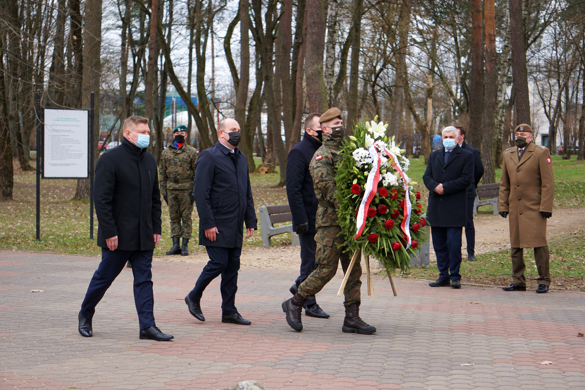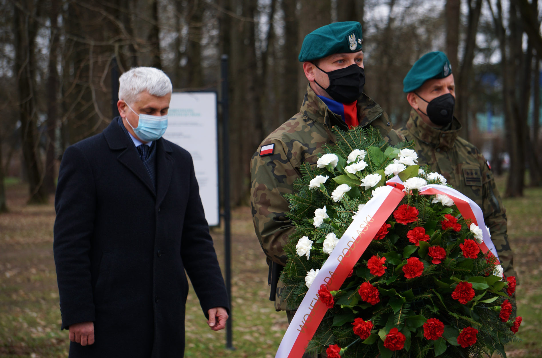 W skromnej ze względu na pandemię uroczystości wzięli również udział: przedstawiciele zarządu województwa podlaskiego na czele z marszałkiem Arturem Kosickim, żołnierze i oficerowie Wojsk Obrony Terytorialnej, przedstawiciele białostockiego oddziału IPN oraz członkowie Stowarzyszenia Rodzina Katyńska z jego przewodniczącą Agnieszką Markiewicz-Cybulską.
