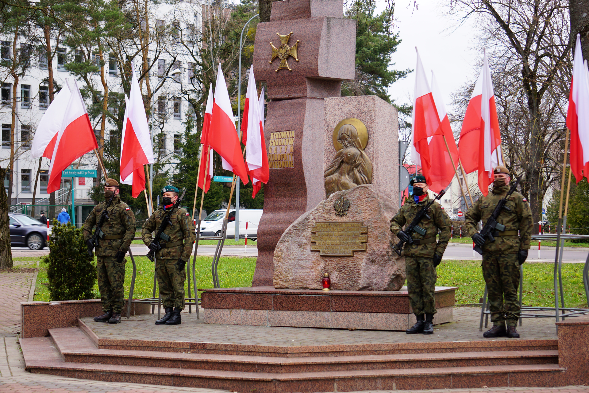 Ofiary ludobójstwa upamiętnia Pomnik Katyński w Białymstoku, który znajduje się na skraju Parku Konstytucji 3 Maja. W tym miejscu we wtorkowy poranek kwiaty złożył wojewoda podlaski Bohdan Paszkowski, któremu towarzyszył płk. Sławomir Kocanowski - dowódca 1 Podlaskiej Brygady Obrony Terytorialnej.