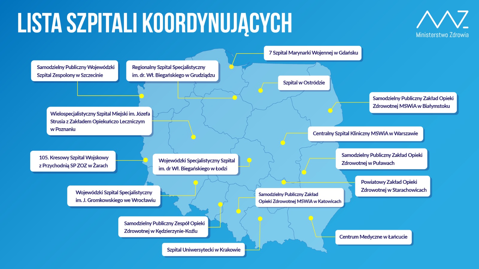 Gdzie powstaną tego typu placówki? Pobierz grafikę (na dole strony) i sprawdź, który szpital w Twoim województwie będzie pełnił rolę szpitala koordynacyjnego.