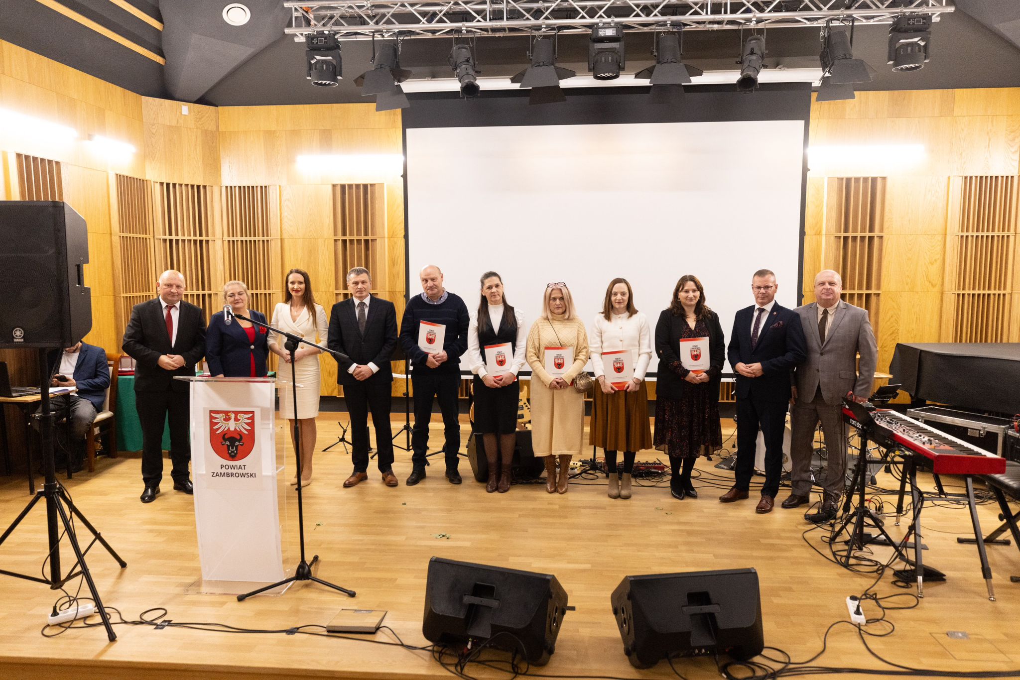 Spotkanie w Zambrowie było także okazją do uhonorowania zasłużonych pracowników socjalnych. Wojewoda dokonał odznaczenia pani Ewy Anny Kalinowskiej złotym Medalem za Długoletnią Służbę. Starosta Powiatu Zambrowskiego Edyta Marchelska-Groszfeld razem z Przewodniczącym Rady Powiatu Jackiem Norbertem Murawskim i Elżbietą Rajewską-Nikonowicz, dyrektor Regionalnego Ośrodka Polityki Społecznej w Białymstoku wręczyli podziękowania kierownictwu oraz pracownikom zambrowskich instytucji pomocowych.