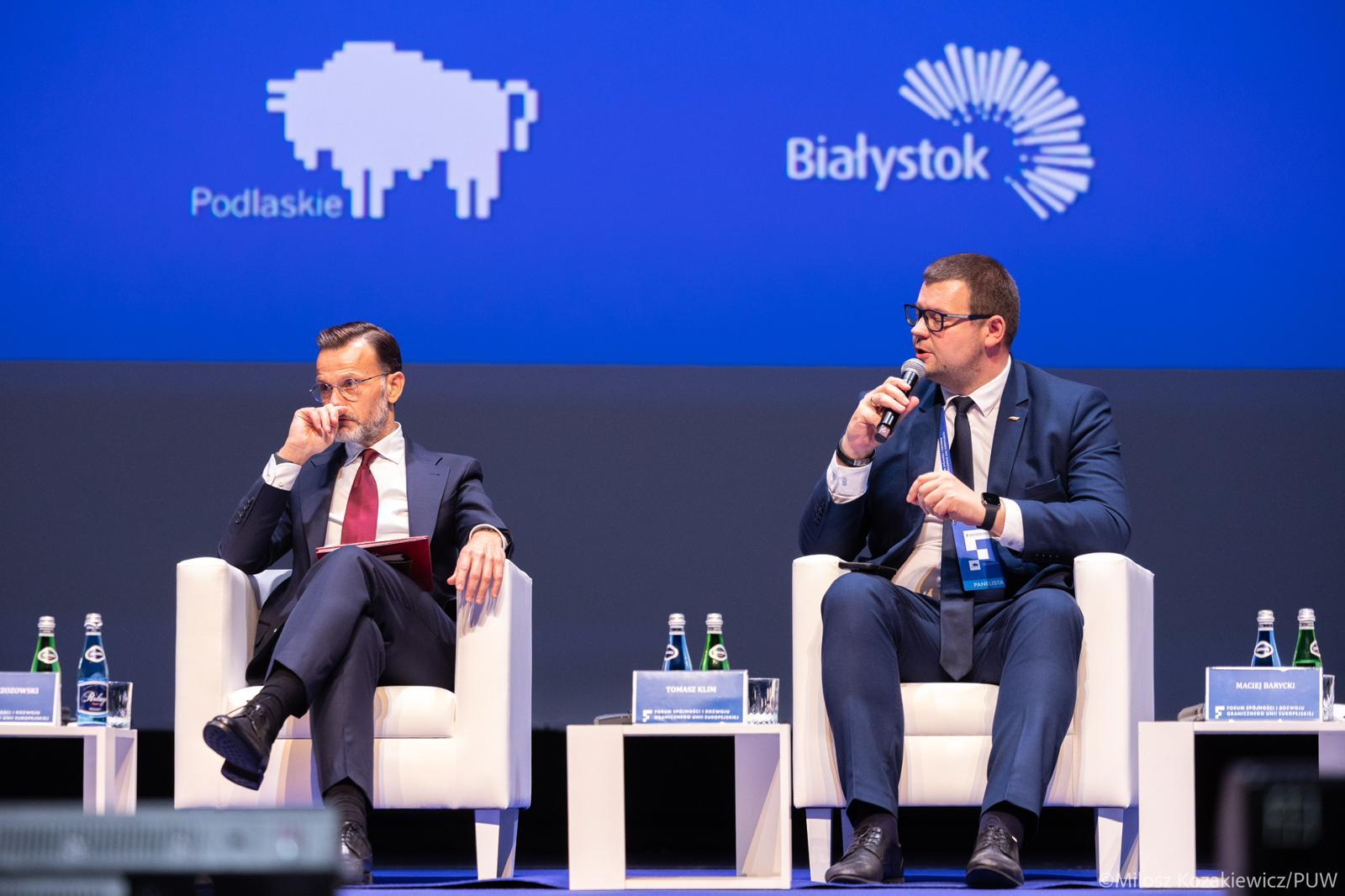 Szef rządu Donald Tusk, który przybył na Forum Spójności i Rozwoju Granicznego UE, podkreślał, że Podlaskie ma szczególne znaczenie w wymiarze krajowym i europejskim, a rząd będzie szukać takich rozwiązań, które nie osłabią naszej konkurencyjności i atrakcyjności. Podkreślał również, że bardzo docenia starania tutejszych władz, służb i mieszkańców, aby granica polsko-białoruska była jak najbardziej szczelna. Premier poinformował, że od dłuższego czasu pracuje z ministrem spraw wewnętrznych i administracji Marcinem Kierwińskim nad możliwością otwarcia przejść granicznych w Kuźnicy i Bobrownikach. "Jeszcze w listopadzie będziemy do tego gotowi" - zapowiedział.