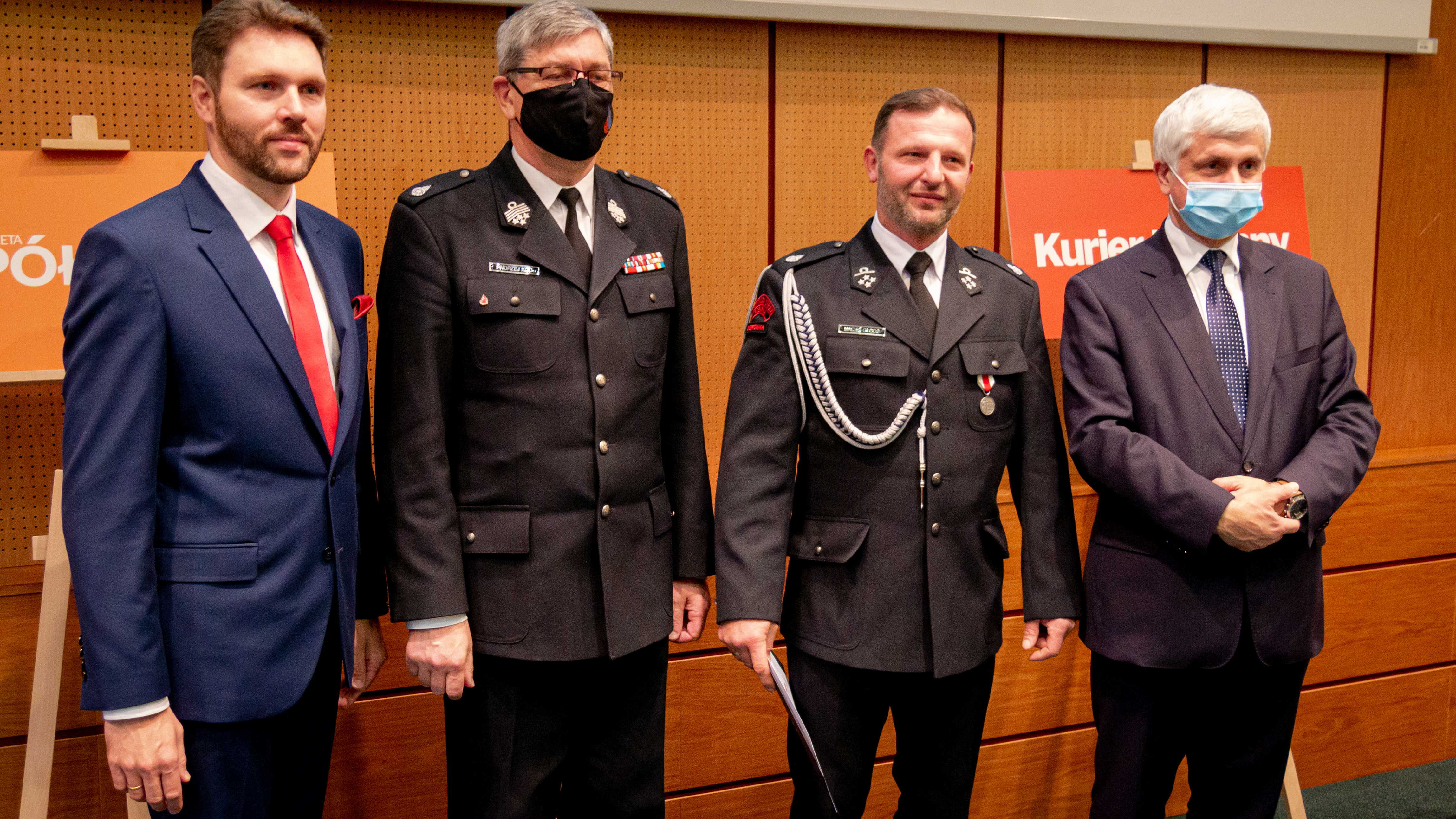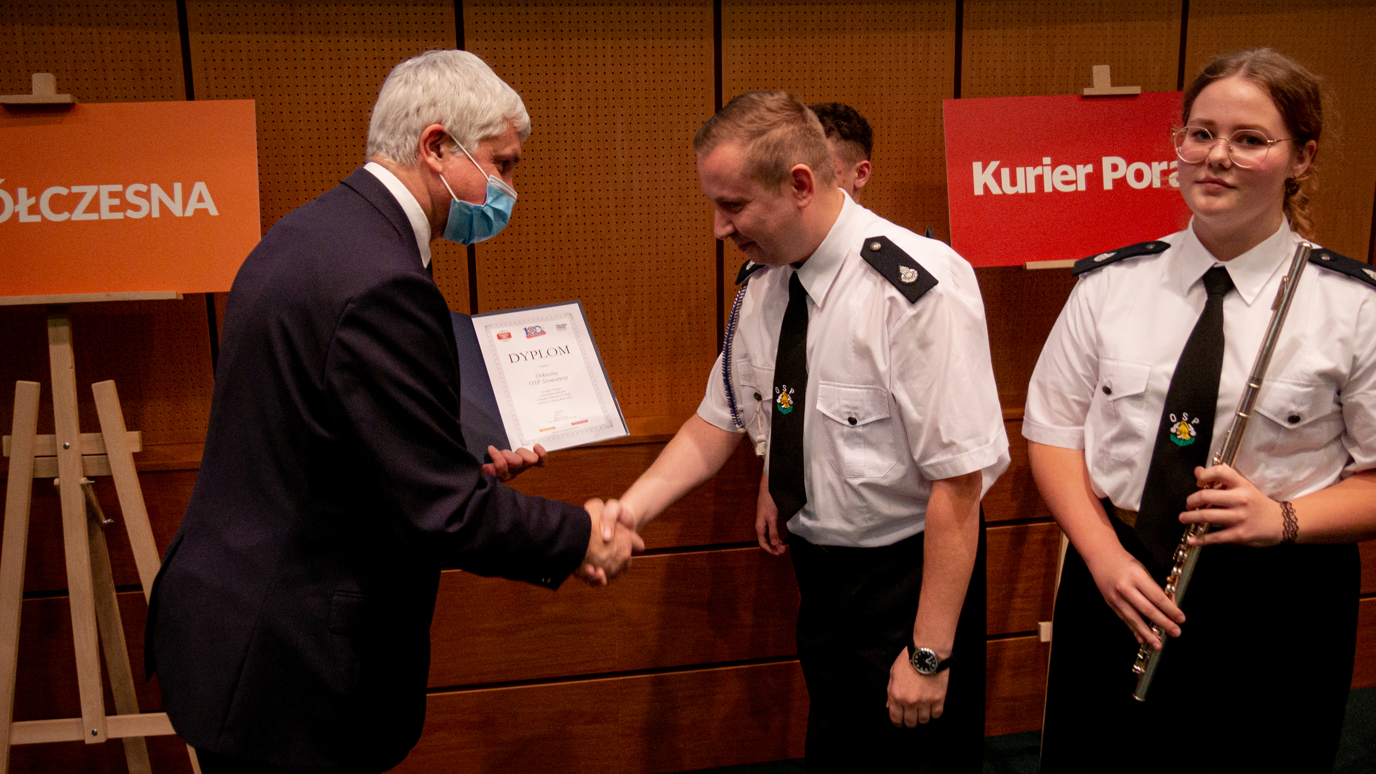 W czwartek (21.10) w Podlaskim Urzędzie Wojewódzkim odbyła się uroczysta gala będąca zwieńczeniem tegorocznego plebiscytu "Kuriera Porannego" i "Gazety Współczesnej" Strażacy Roku 2021. Zwycięzców w kategorii Strażak OSP, Jednostka OSP, Młody Strażak oraz Orkiestra OSP ROKU 2021 wybrali czytelnicy dzienników. Sukcesów pogratulował druhom wojewoda podlaski Bohdan Paszkowski.