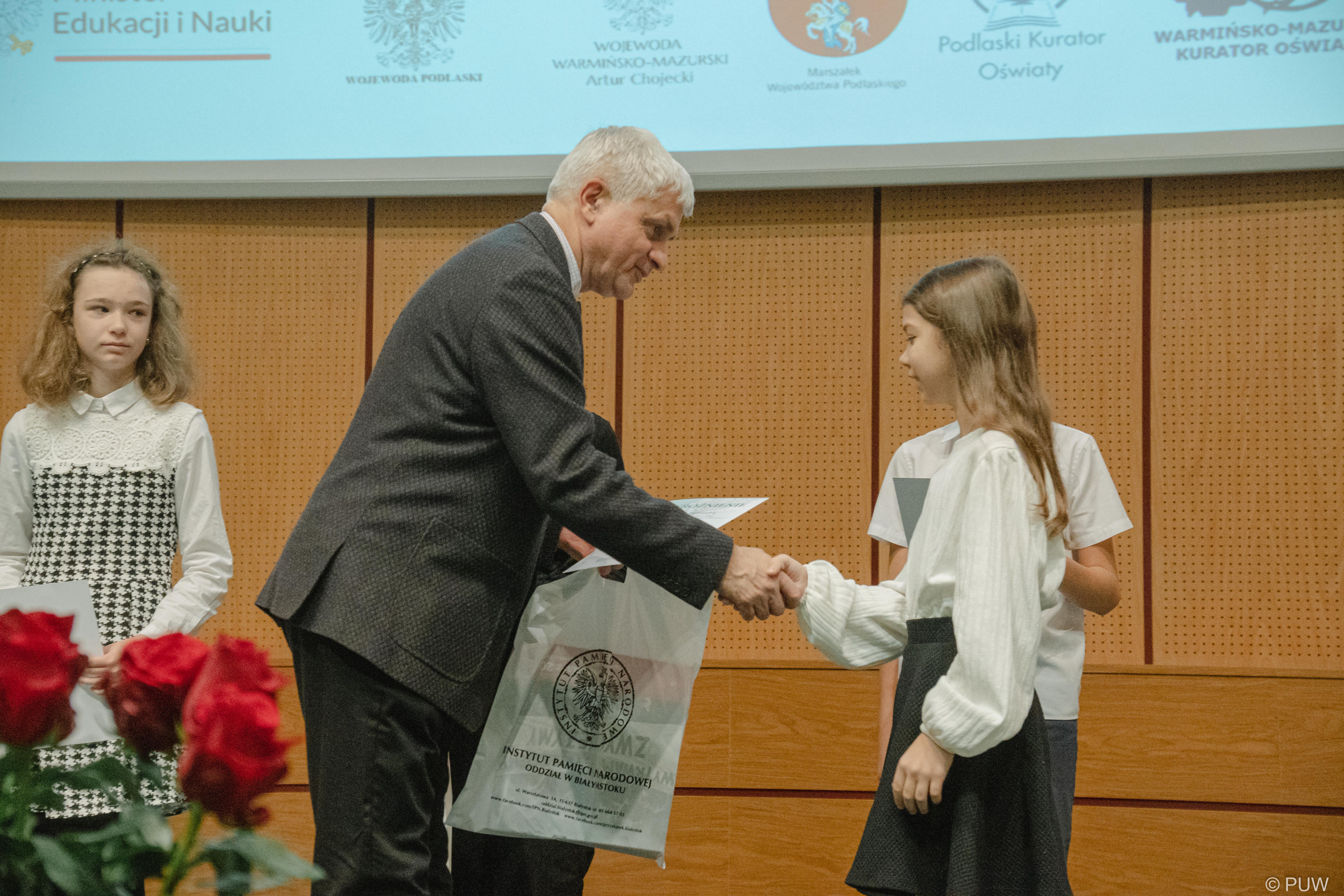 W czwartek (26.10) w Podlaskim Urzędzie Wojewódzkim odbyła się uroczysta gala konkursu „Historia najnowsza Polski w poezji dzieci i młodzieży”, który zorganizował Instytut Pamięci Narodowej Oddział w Białymstoku. W tegorocznej - szóstej już - edycji jury oceniło 99 prac zgłoszonych przez uczniów z województw: podlaskiego i warmińsko-mazurskiego. Podczas gali wręczono 26 nagród i wyróżnień. Sukcesów laureatom pogratulowali wojewoda podlaski Bohdan Paszkowski oraz wicewojewodowie: Tomasz Madras i Bogusława Szczerbińska.