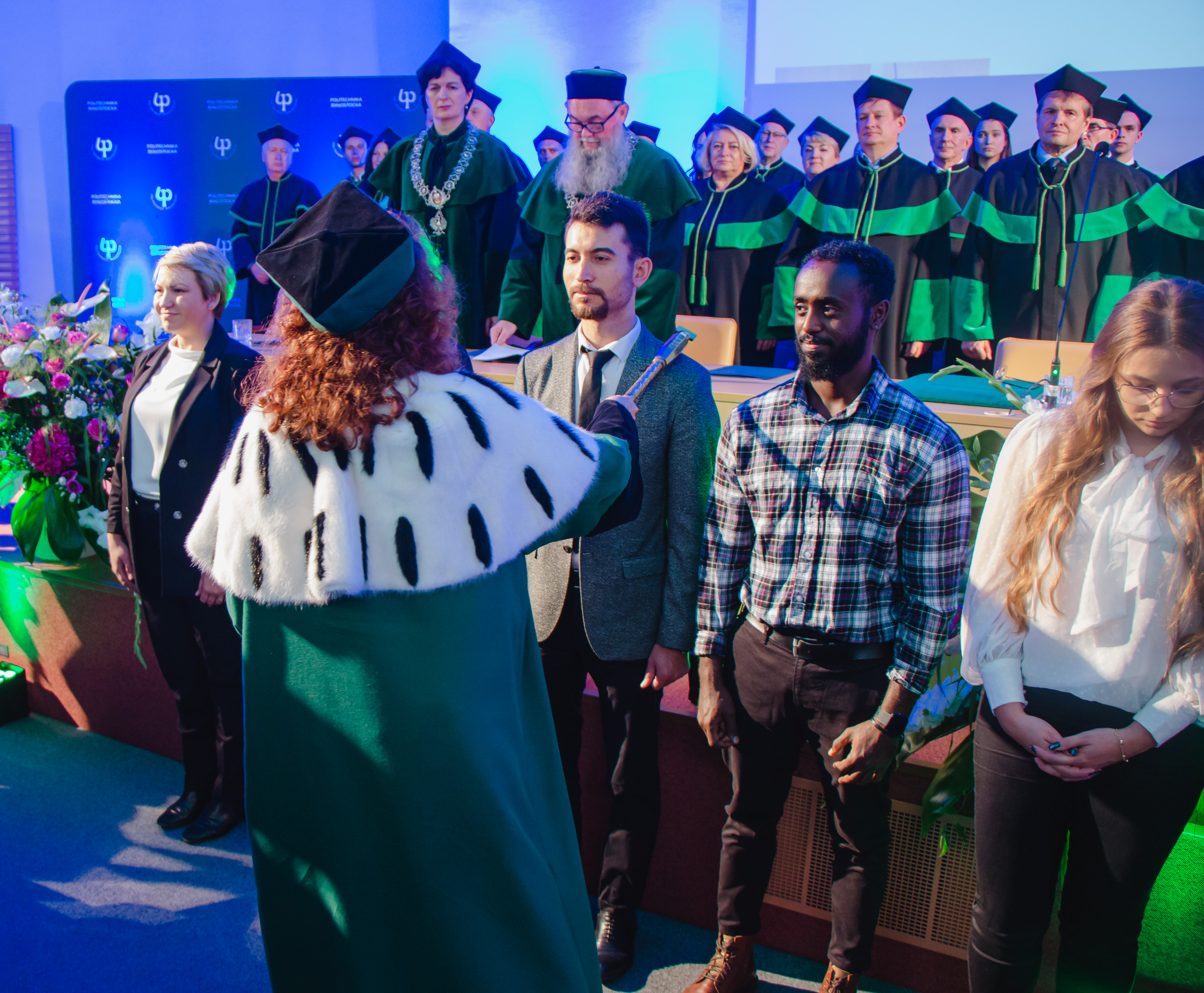 Po uroczystej immatrykulacji studentów, przedstawicieli pierwszego roku studiów, oraz nowego rocznika doktorantów Szkoły Doktorskiej Politechniki Białostockiej, w gronie społeczności akademickiej Politechniki Białostockiej zostali powitani studenci z zagranicy oraz uczniowie Akademickiego Liceum Ogólnokształcącego Politechniki Białostockiej.