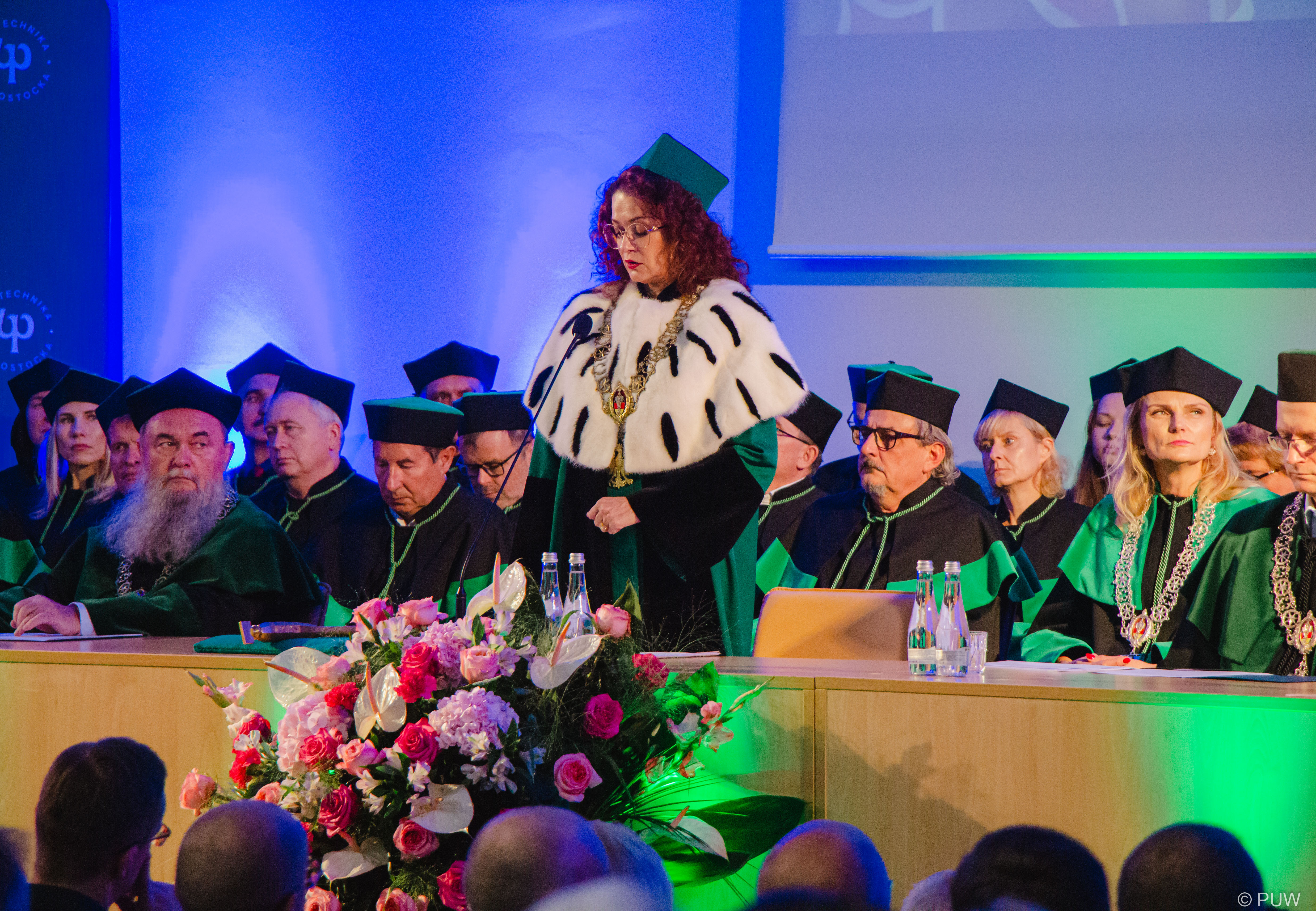 Prawie 7 tysięcy studentów z blisko 30 kierunków studiów Politechniki Białostockiej oficjalnie rozpoczęło w czwartek (7.10) nowy rok akademicki. - Wkraczamy dziś w 75. rok działalności. Przez te lata przeszliśmy długą drogę: od wieczorowej szkoły inżynierskiej, która rozwijała się na gruzach zniszczonego przez II WŚ miasta do kwitnącej uczelni, która jest ważnym ośrodkiem akademickim - mówiła rektor prof. Marta Kosior-Kazberuk. W inauguracji wziął udział wicewojewoda podlaski Tomasz Madras, który odczytał list od ministra edukacji i nauki Przemysława Czarnka.