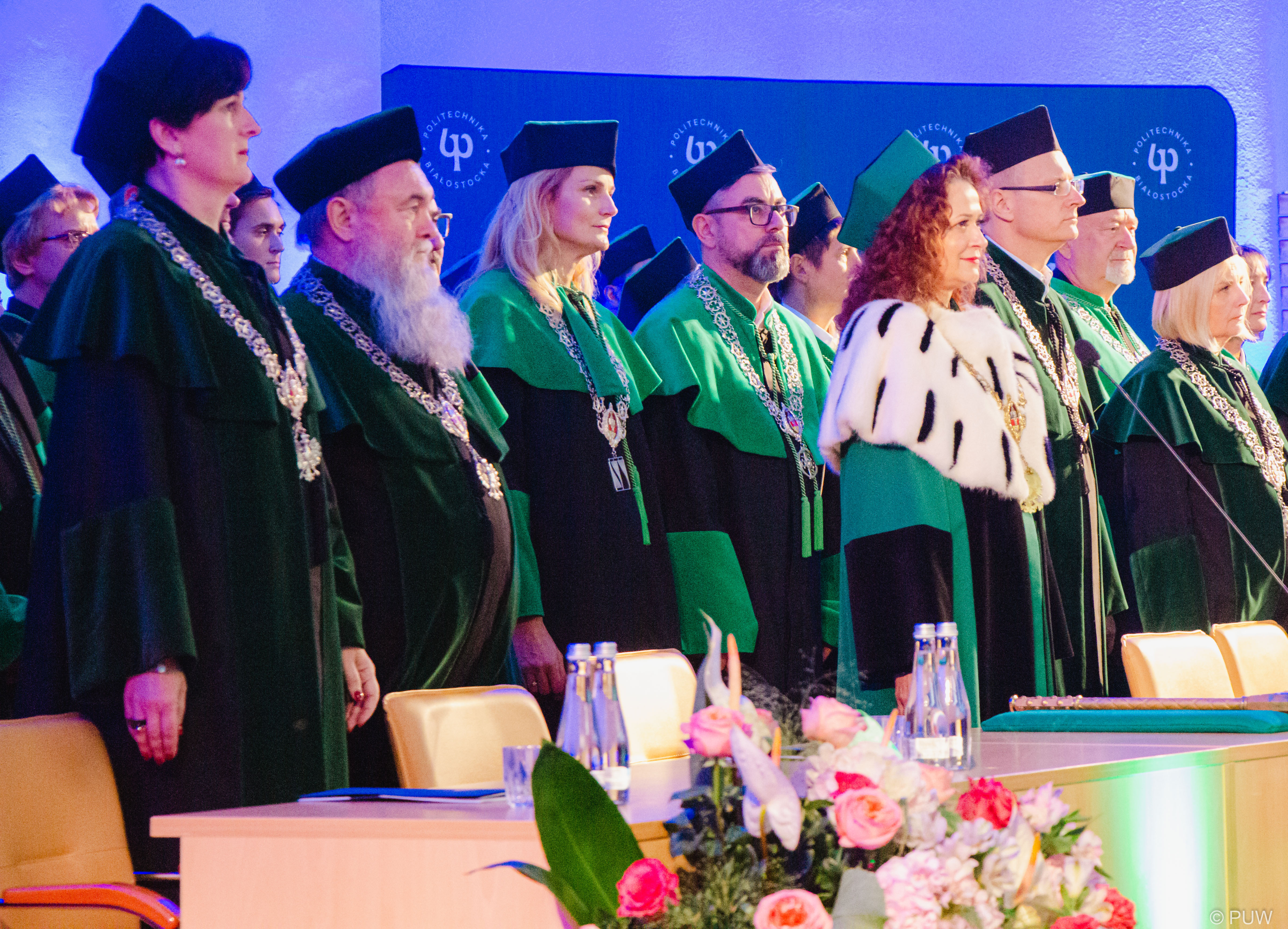 Zanim Chór Politechniki Białostockiej odśpiewał uroczyste Gaudeamus igitur, rektor uczelni prof. Marta Kosior-Kazberuk dokonała immatrykulacji studentów, którzy najlepiej zdali egzaminy wstępne na uczelnię.
