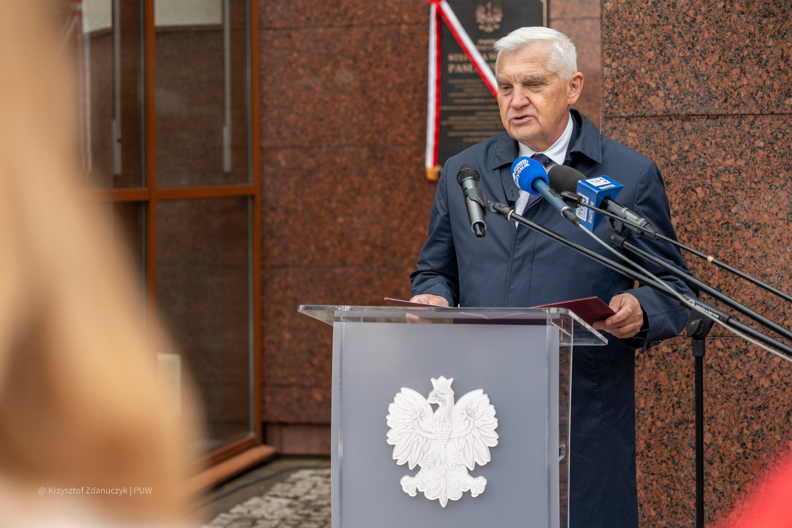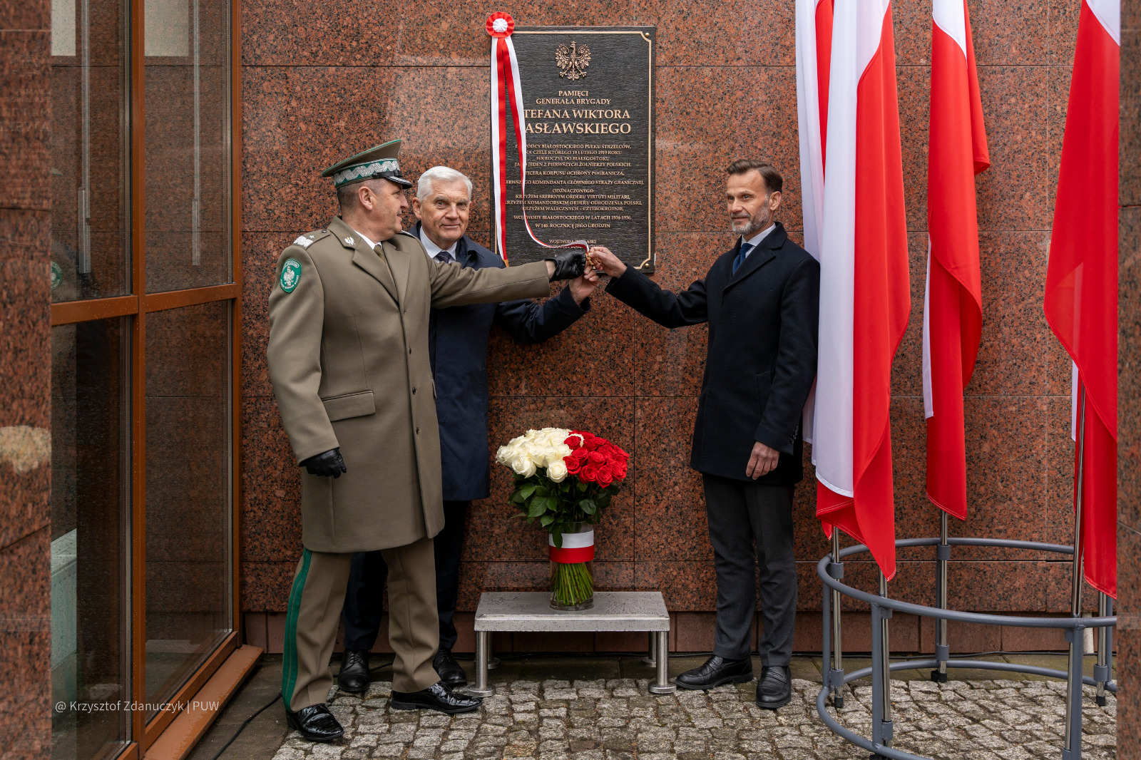 W uroczystości odsłonięcia tablicy na siedzibie Podlaskiego Urzędu Wojewódzkiego wzięli udział parlamentarzyści, prezydent Białegostoku Tadeusz Truskolaski, a także reprezentanci służb mundurowych – m.in. Wojska Polskiego, Państwowej Straży Pożarnej, Policji, Straży Miejskiej oraz harcerstwa.