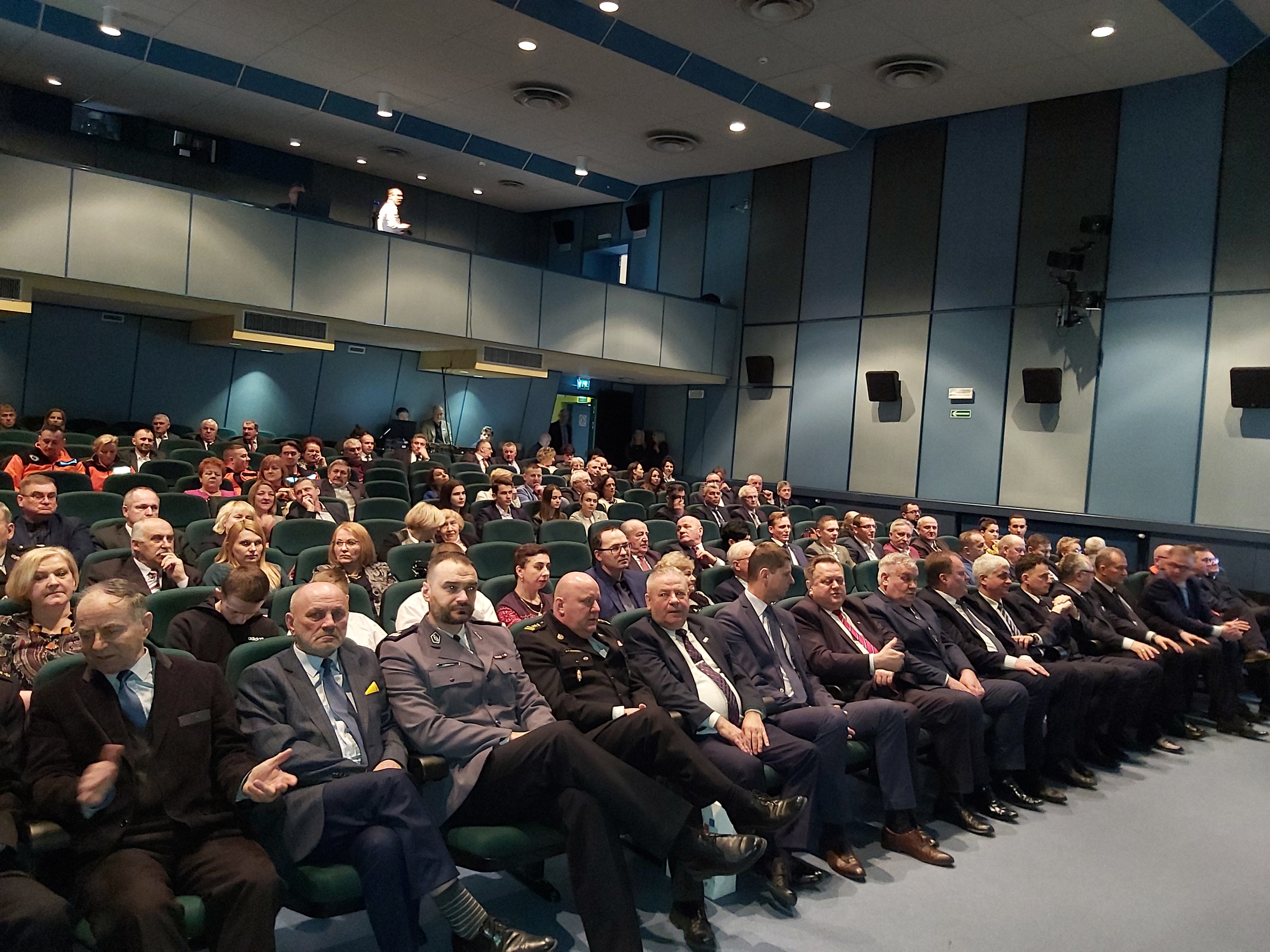 Uroczysta sesja na sali widowiskowej Grajewskiego Centrum Kultury zgromadziła wielu podlaskich parlamentarzystów, samorządowców, w tym wojewodę podlaskiego Bohdana Paszkowskiego i wicewojewodę Marcina Sekścińskiego, przedstawicieli służb mundurowych, miejskich instytucji i mieszkańców.