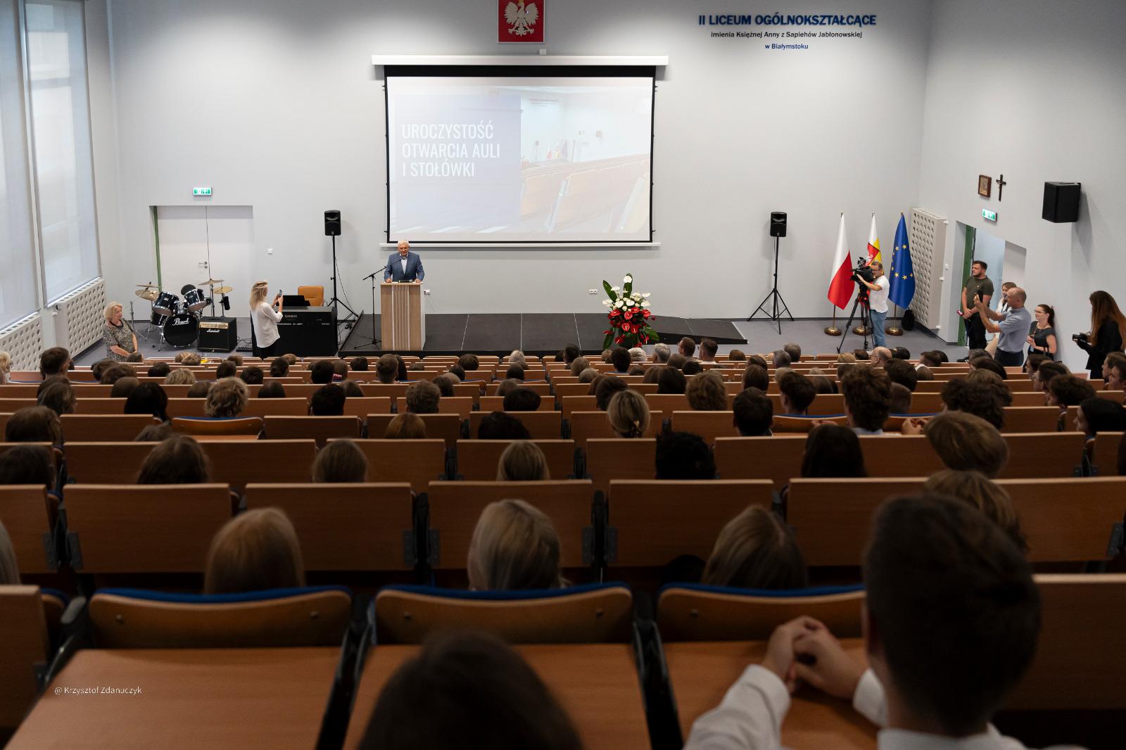 - II LO od lat jest najlepsze w Białymstoku i województwie podlaskim. Rozwija się bardzo dobrze, a nowa aula i nowa stołówka były szkolnej społeczności bardzo potrzebne, stąd wniosek dyrektora o taką inwestycję. Wspólnymi siłami z rządowym wsparciem mogliśmy wybudować piękny obiekt - mówił prezydent Białegostoku Tadeusz Truskolaski.