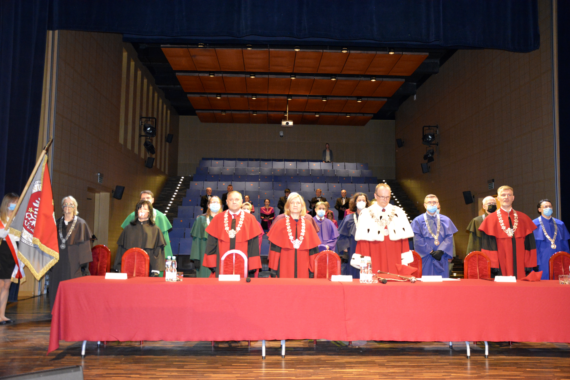 Uroczyste rozpoczęcie roku akademickiego 2020/2021 odbyło się w środę (7.10) w auli Wydziału Nauk o Edukacji przy ul. Świerkowej. Wzięli w nim udział przedstawiciele studentów, doktorantów, nauczycieli akademickich i pracowników uczelni oraz zaproszeni goście. Ze względu na epidemię w uroczystości uczestniczyła ograniczona liczba osób, natomiast każdy chętny mógł obejrzeć transmisję online na stronie internetowej uczelni oraz na fanpage UwB na Facebooku.