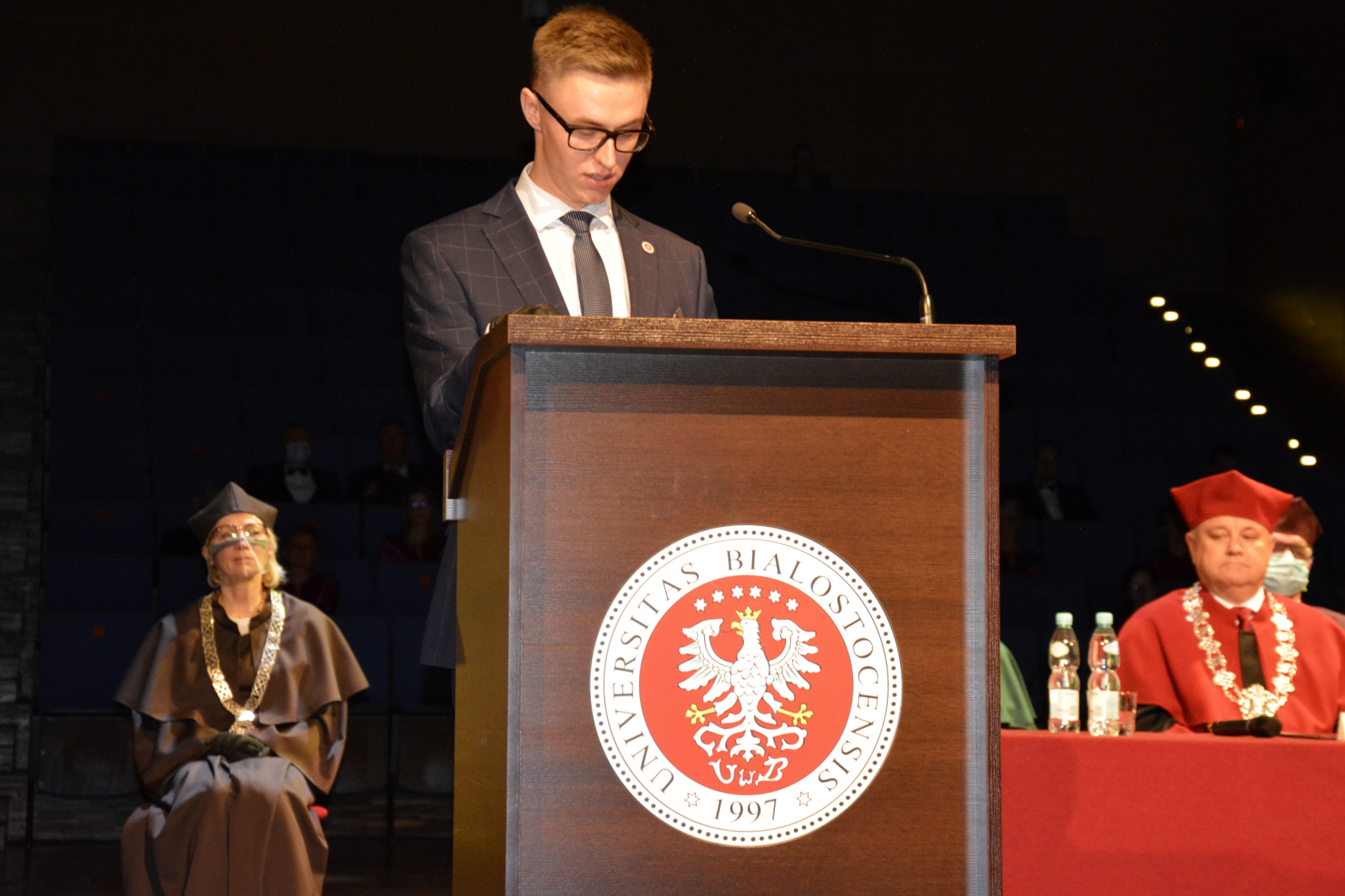 - Rok akademicki, w którym nie możemy się wszyscy spotkać, jest na pewno trudny. Natomiast jestem szczęśliwy, że przynajmniej część z Państwa może być z nami. Znaleźliśmy się w innych czasach, dzisiaj nasza działalność jest mocno ograniczona. Część zajęć musi odbywać się nie w formie bezpośredniej, tylko zdalnej – w formie, która nie bardzo pasuje do uniwersytetu. Nie istnieje coś takiego jak zdalny uniwersytet. Uniwersytet to nie tylko wiedza, to także umiejętność tworzenia wspólnoty: pracowników, studentów, tych wszystkich, którzy z nami współpracują - mówił rektor największej podlaskiej uczelni.