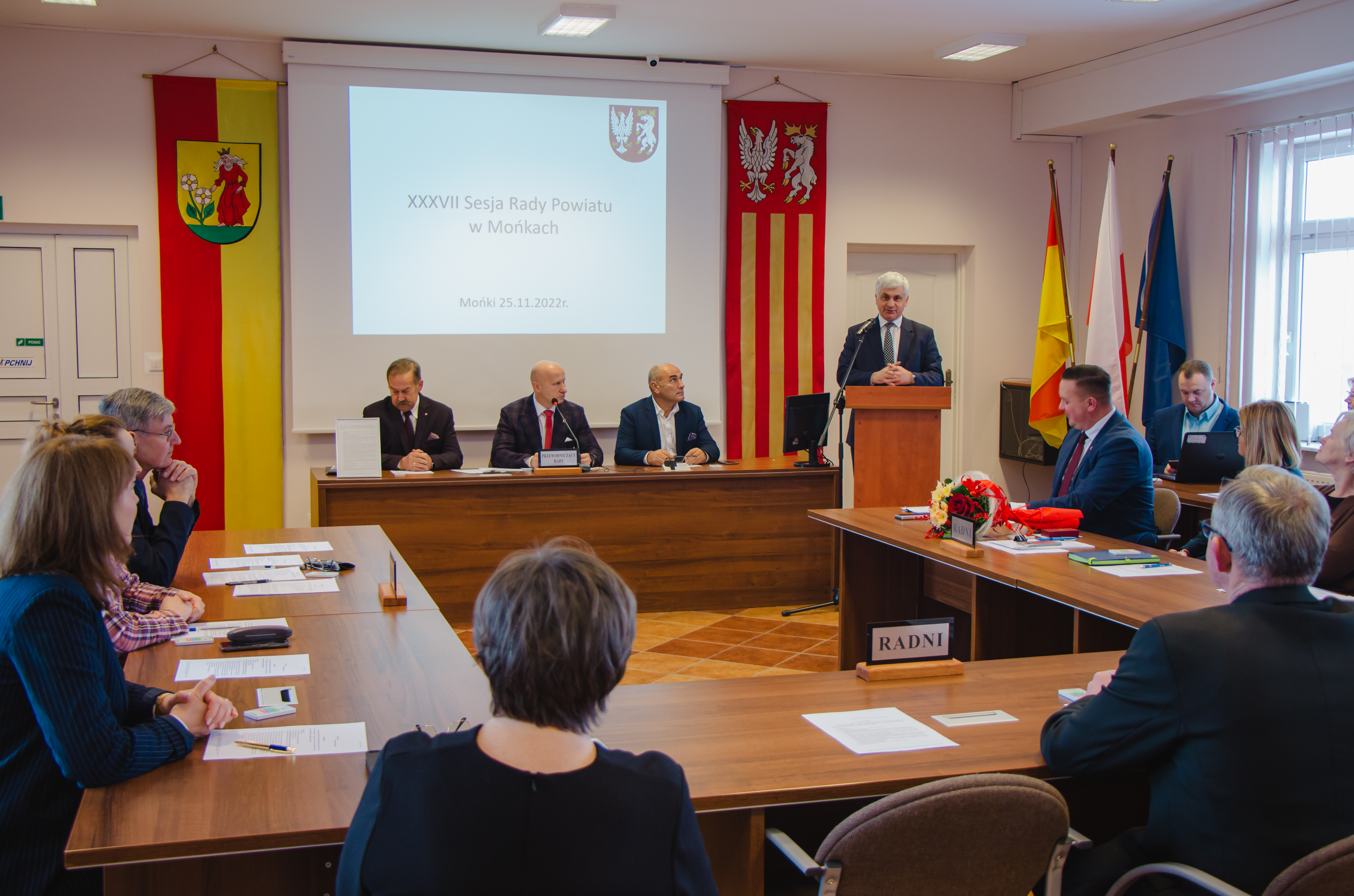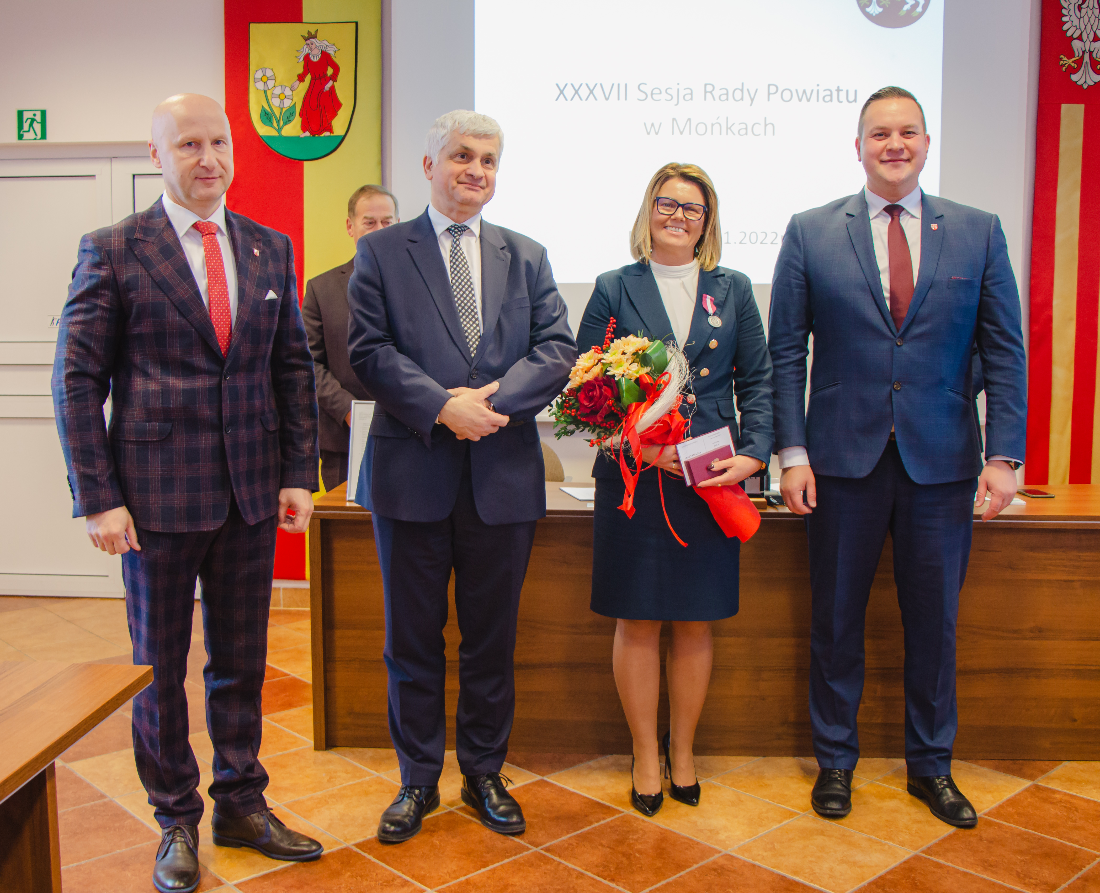 Przy okazji oddania do użytku inwestycji w Mońkach, wojewoda podlaski wziął udział w sesji rady powiatu monieckiego, podczas której wręczył Srebrny Medal za Długoletnią Służbę, przyznany przez prezydenta Andrzeja Dudę, wicestaroście powiatu Joannie Kitlas, która w tym roku obchodzi 25-lecie pracy w samorządzie.