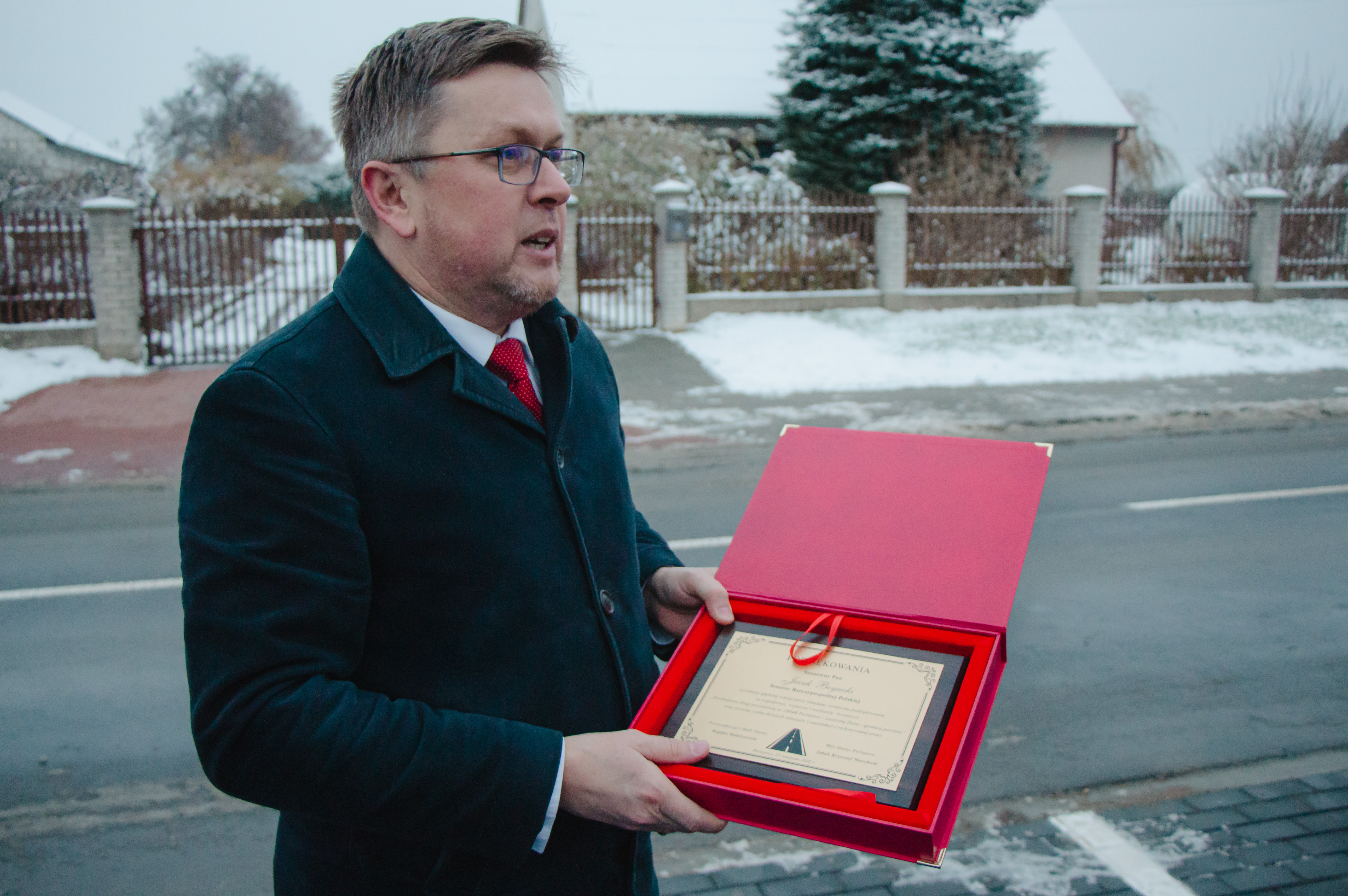 Wójt Perlejewa przygotował symboliczne podziękowania osobom zaangażowanym w realizację inwestycji - otrzymał je m.in. wojewoda podlaski Bohdan Paszkowski.