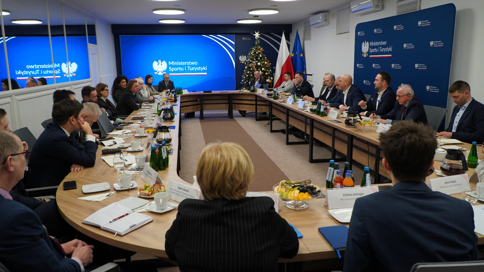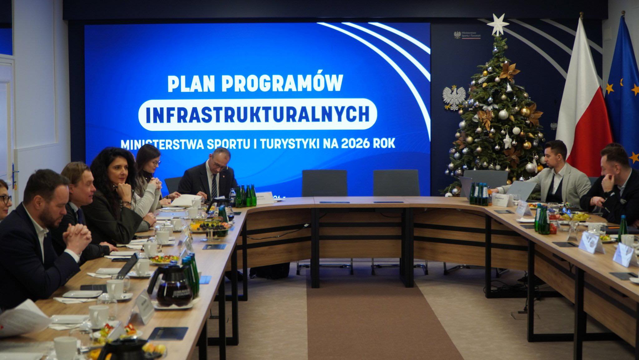 Podczas spotkania minister sportu i turystyki Jakub Rutnicki zaprezentował planowane programy MSiT na 2026 rok dotyczące rozwoju infrastruktury sportowej.