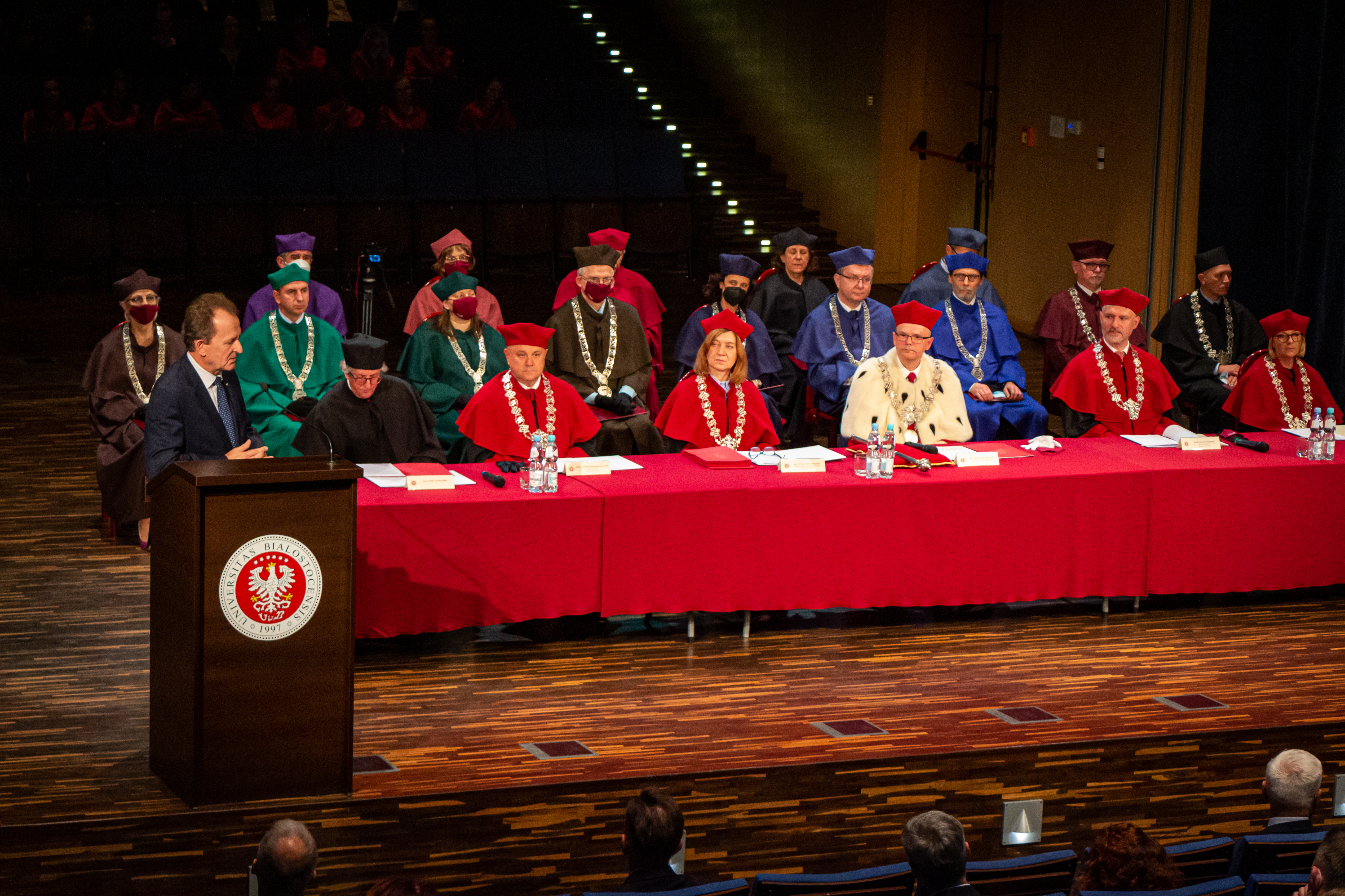 To była wyjątkowa uroczystość. W środę (6.10) Uniwersytet w Białymstoku zainaugurował nie tylko rok akademicki 2021/2022, ale także jubileuszowy - 25. rok swojej działalności. - Uniwersytet przez te 25 lat stworzył wspaniałą wspólnotę ludzi, którzy budują ludzkie umysły - mówił podczas uroczystości rektor UwB prof. Robert Ciborowski. Ogłosił też oficjalnie rozpoczęcie kolejnej inwestycji w kampusie – budowę siedziby nauk humanistycznych. W uroczystości wzięli udział wiceminister edukacji i nauki prof. Włodzimierz Bernacki oraz wojewoda podlaski Bohdan Paszkowski.