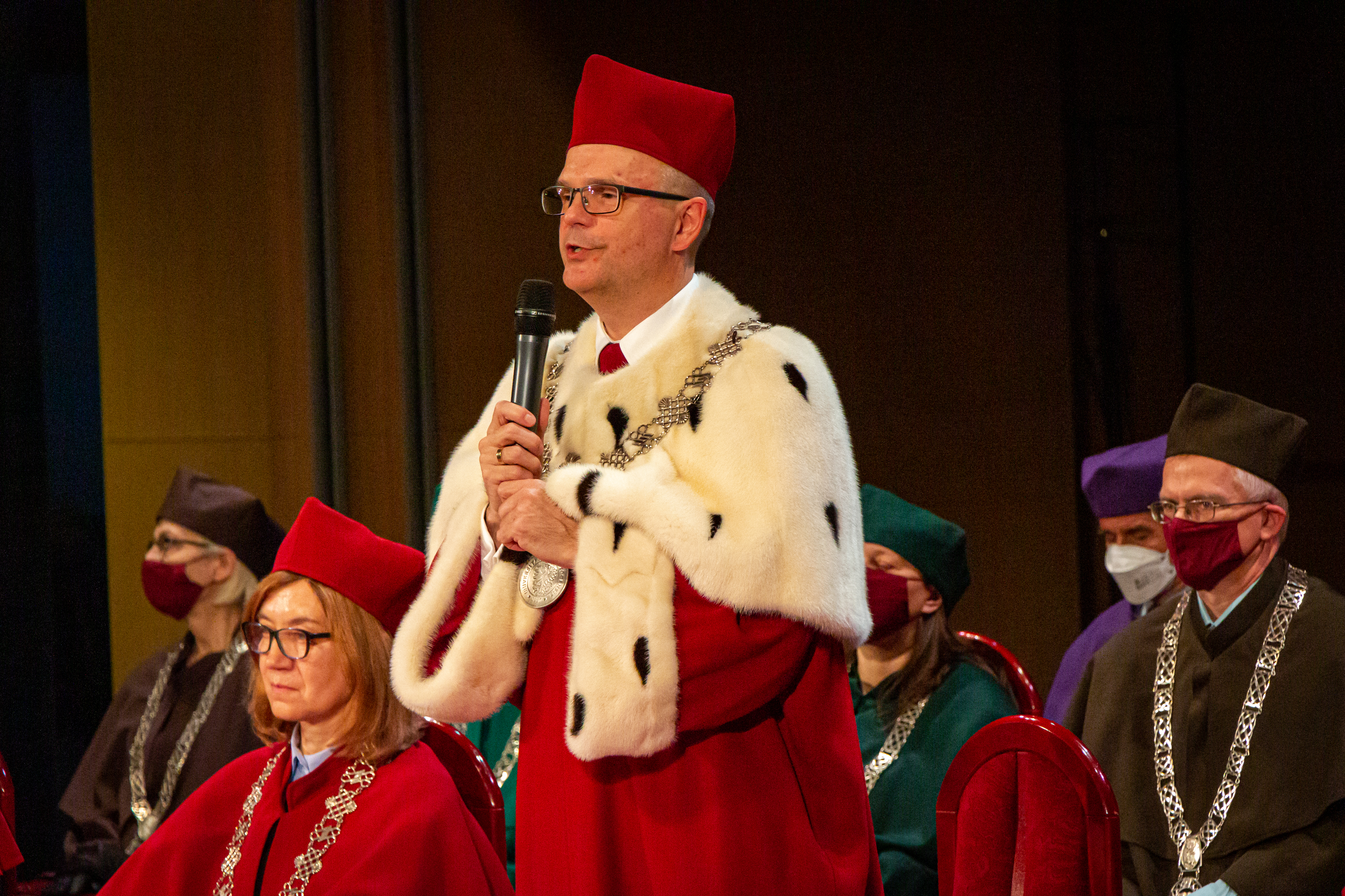 - Studiowanie to nie tylko zdobywanie wiedzy stricte merytorycznej, ale również samorozwój, także w zakresie umiejętności miękkich. Zwracamy się do Was: nie przesiedźcie swoich studiów. Angażujcie się w działalność kół naukowych i organizacji studenckich, działajcie w strukturach samorządowych. Już za dwa tygodnie odbędą się wybory do wydziałowych rad samorządu studenckiego. Wybierajcie i bądźcie wybierani, gdyż czeka na Was dużo nowych doświadczeń i znajomości, które często będą trwały dłużej niż okres kształcenia na uniwersytecie - mówił.