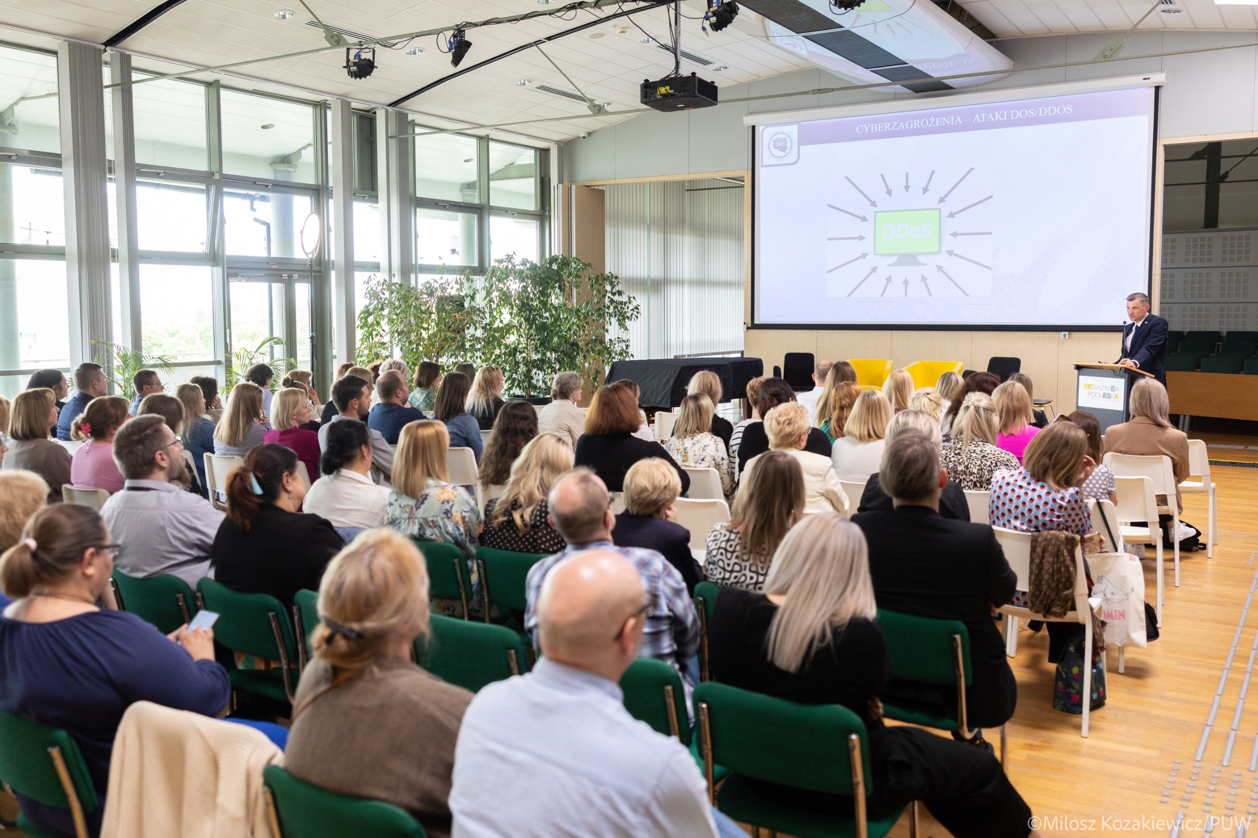 Zasady bezpieczeństwa cyfrowego, cyberzagrożenia dla instytucji publicznych oraz dezinformacja w erze sztucznej inteligencji – między innymi o takich zagadnieniach opowiadali pracownikom podlaskich bibliotek specjaliści: