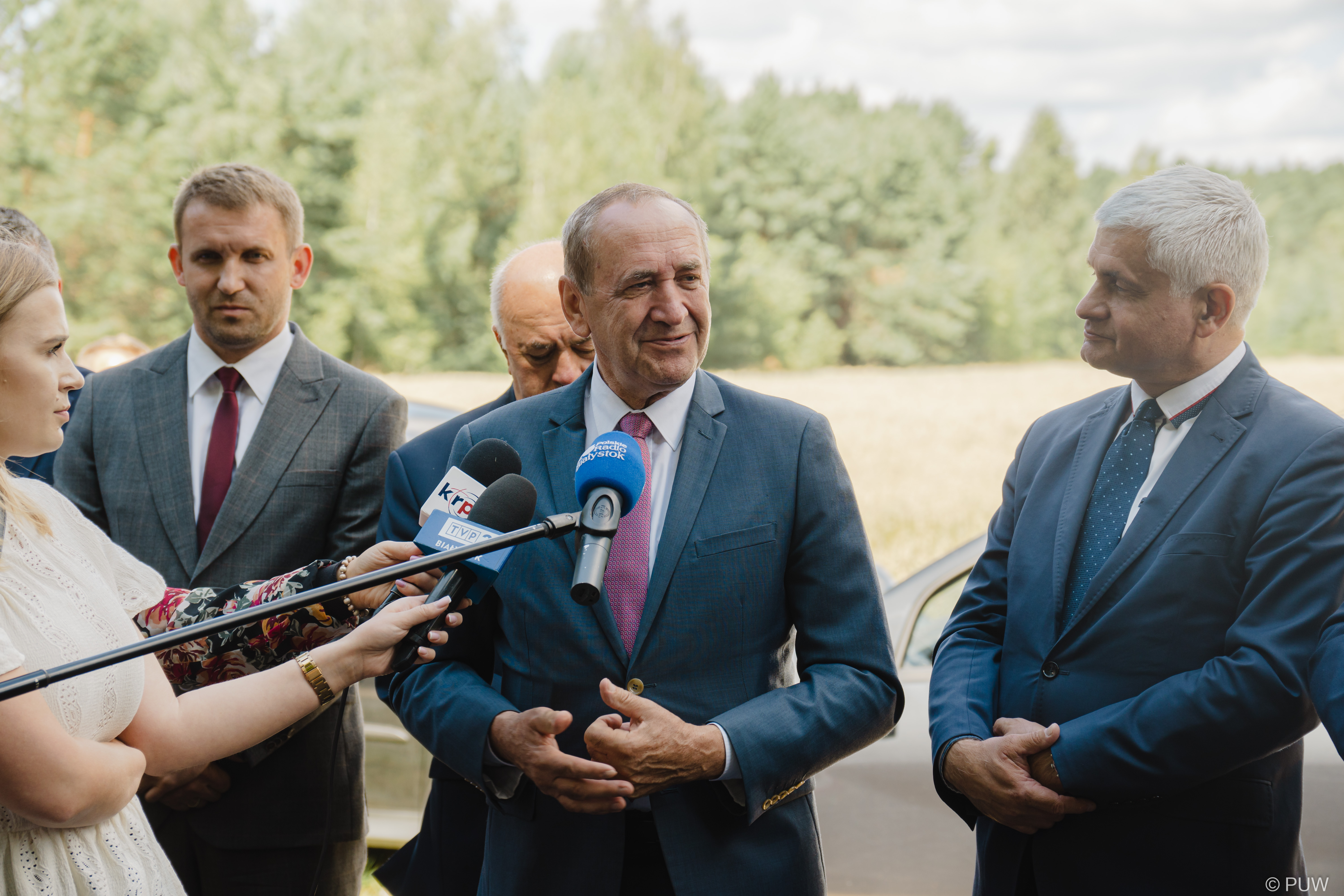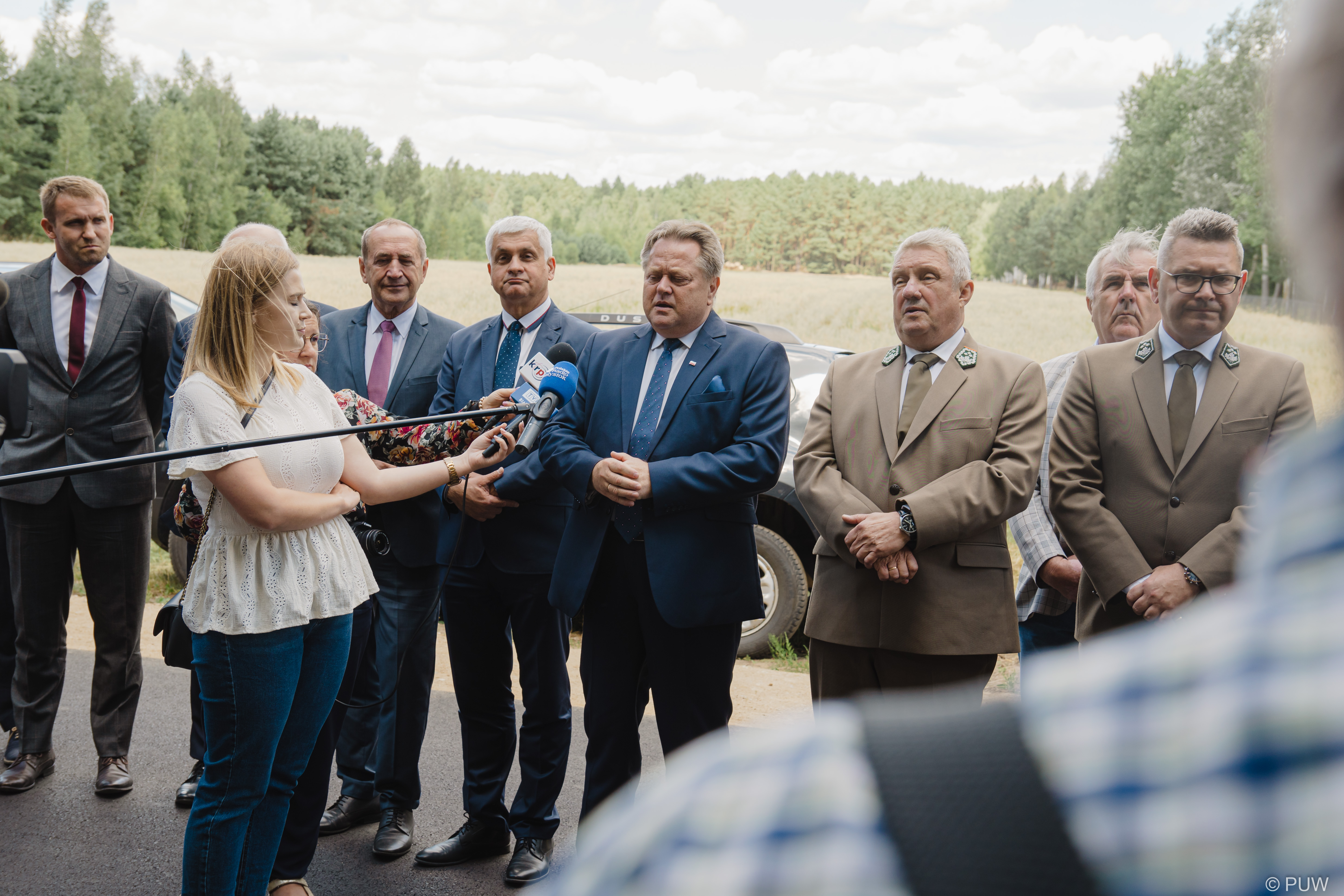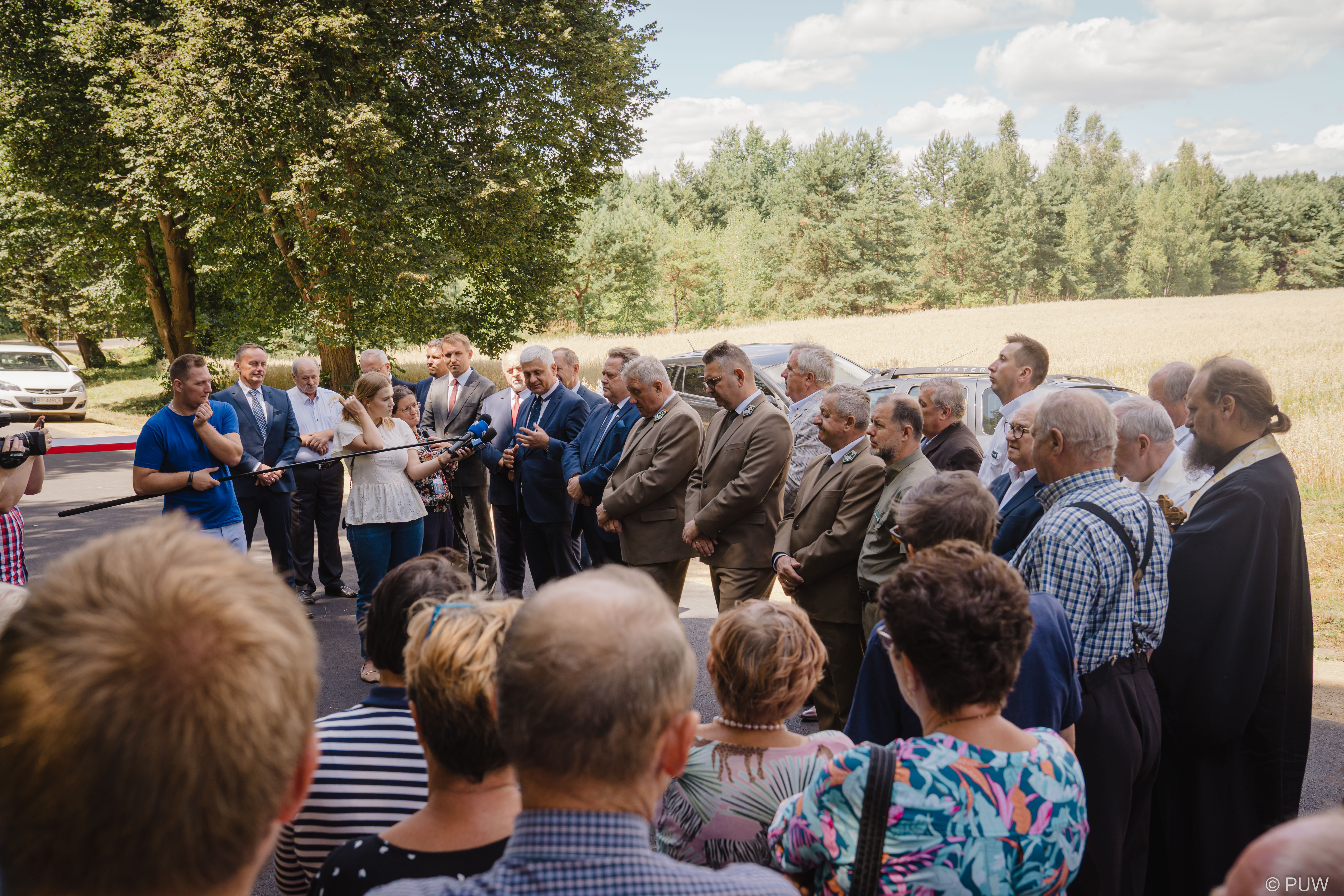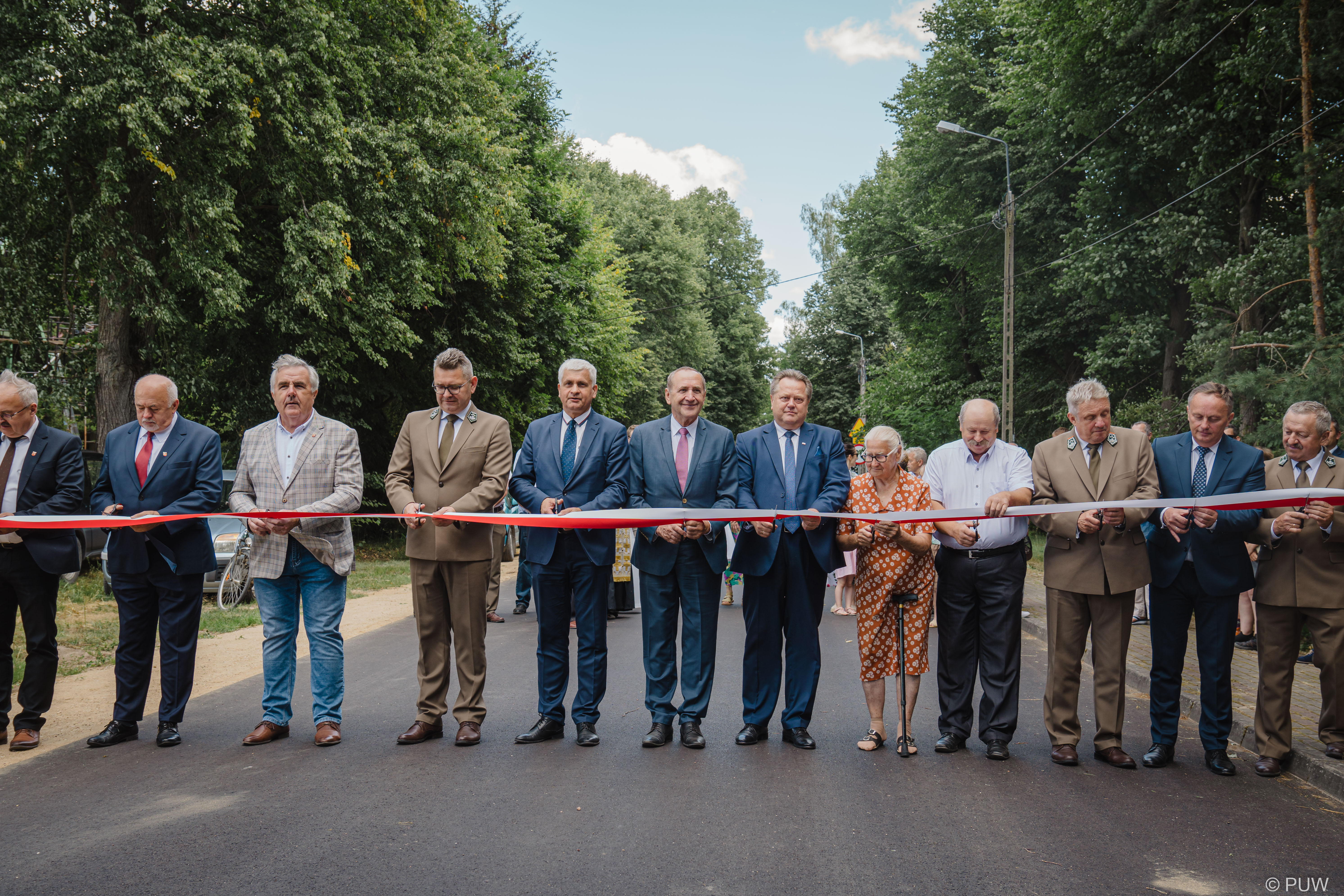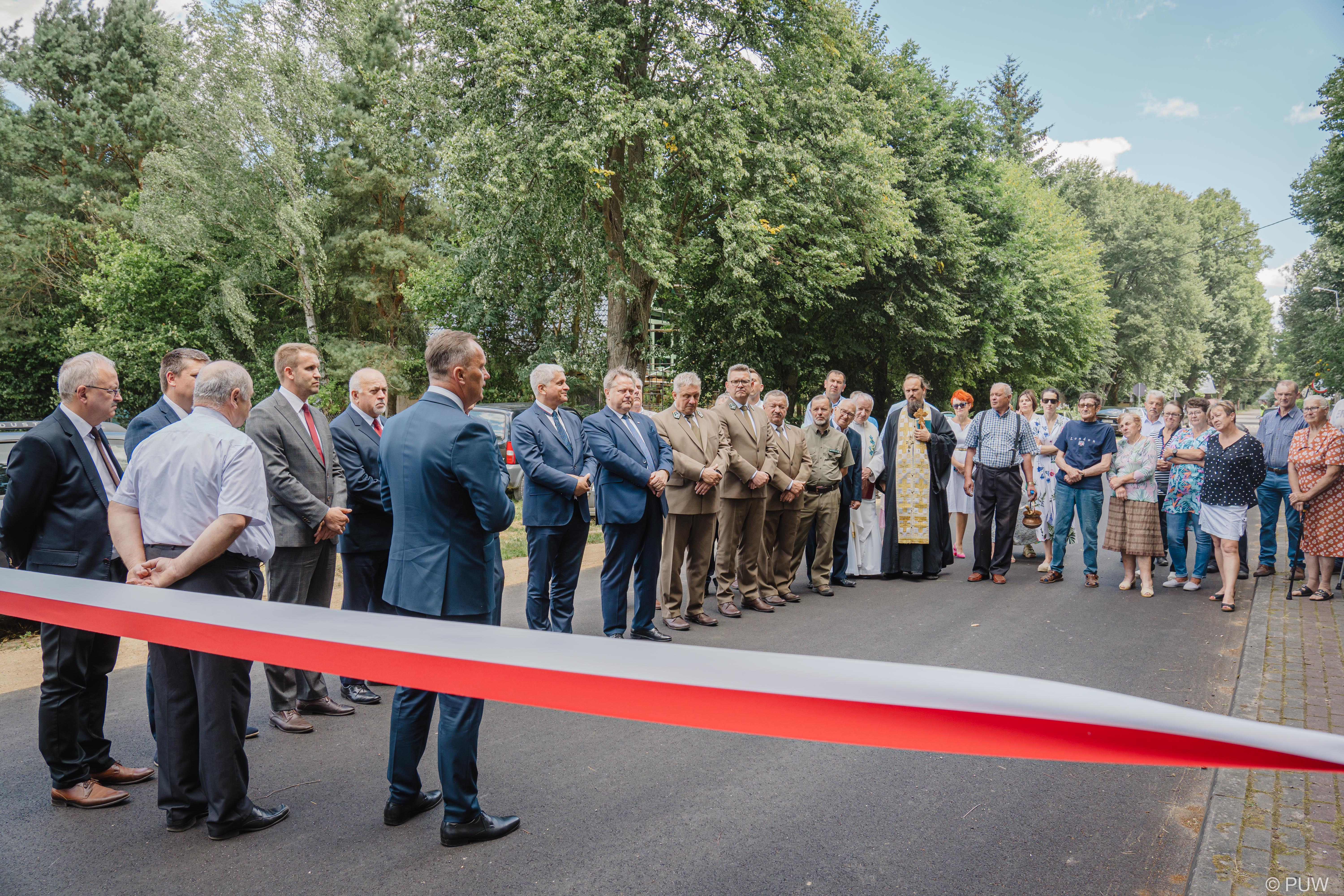 W uroczystości oddania drogi od użytku wzięli udział m.in.: poseł Jarosław Zieliński, senator Jacek Bogucki, wójt Gminy Mielnik Marcin Urbański oraz dyrektor RDLP w Białymstoku Andrzej Nowak.