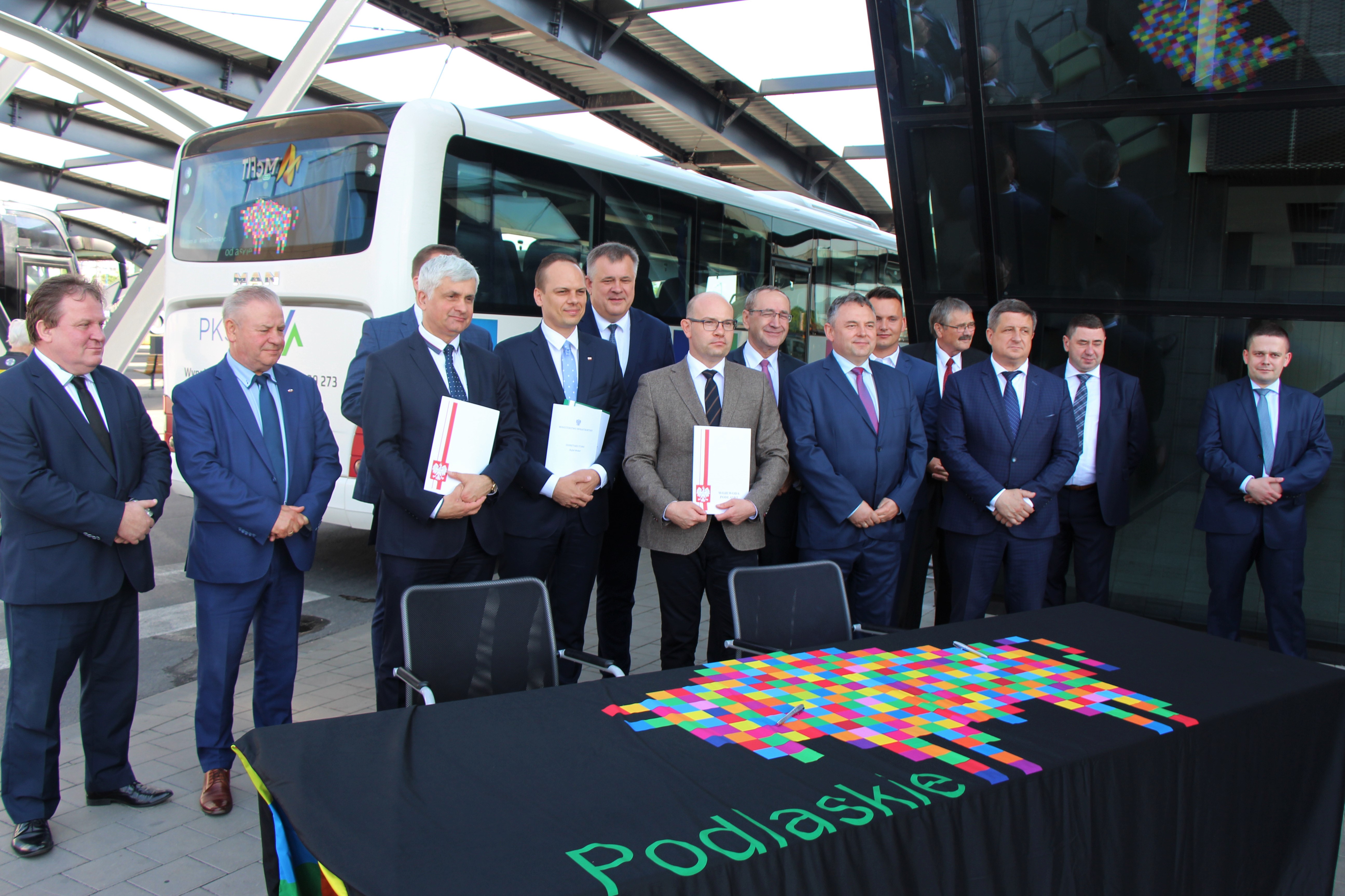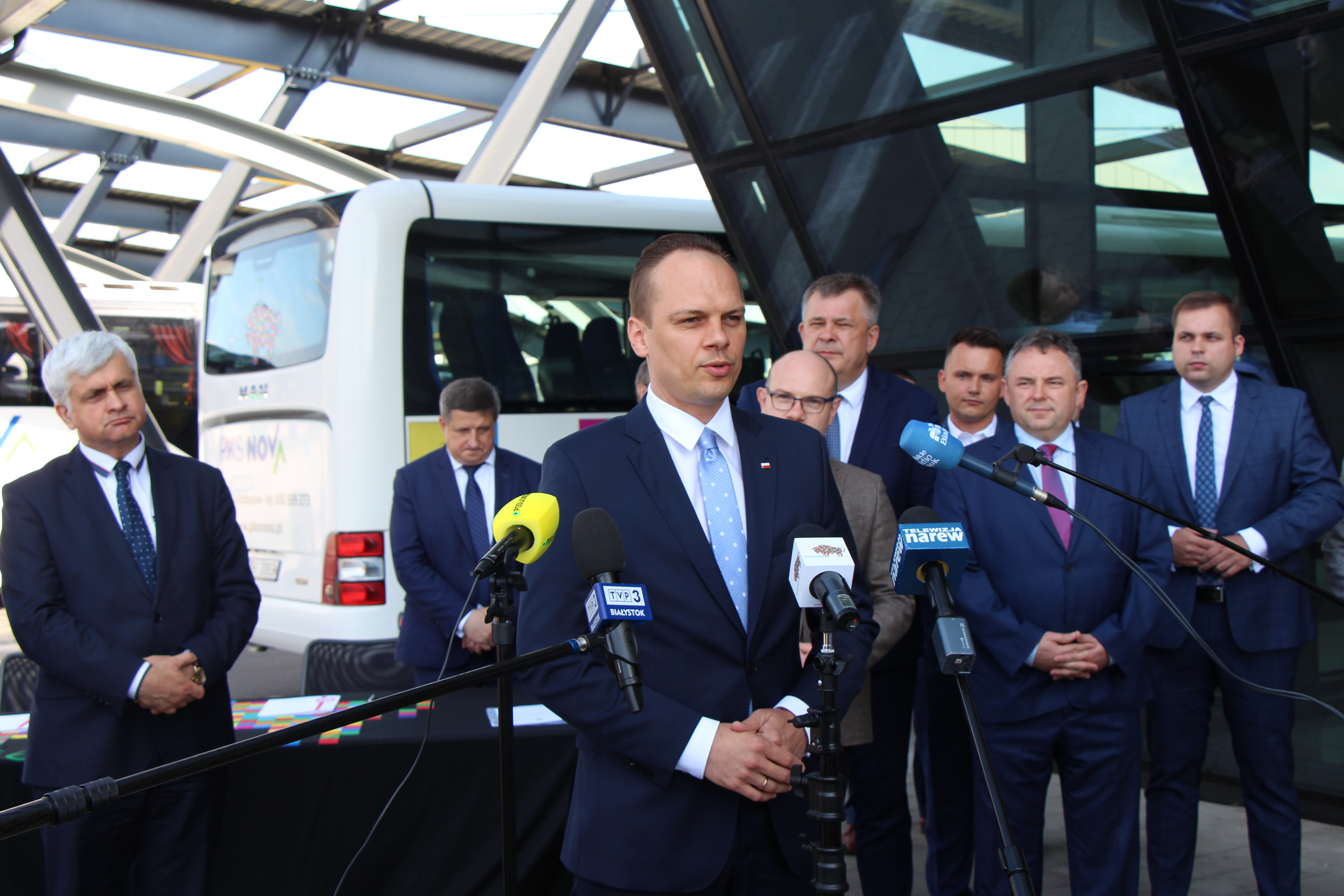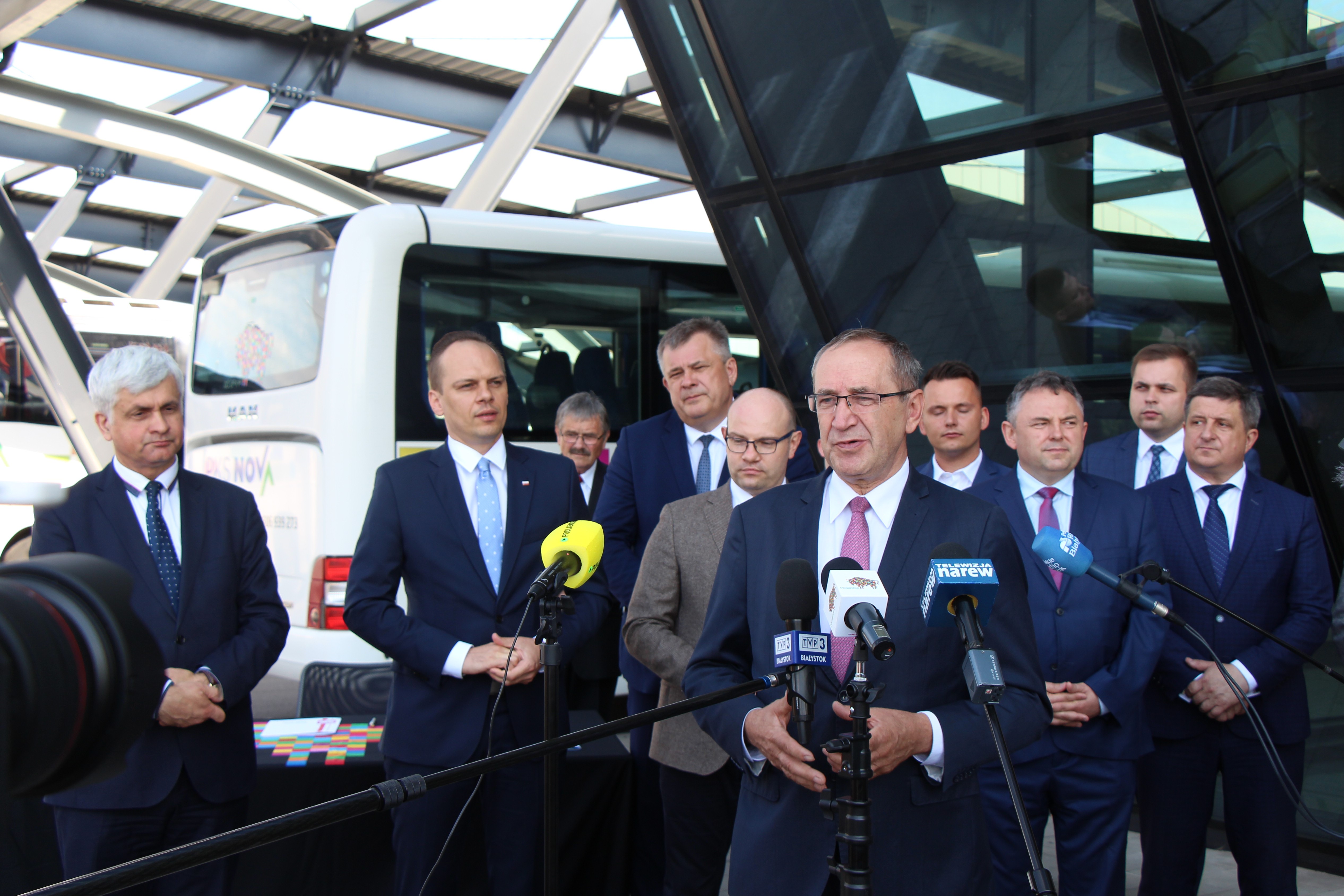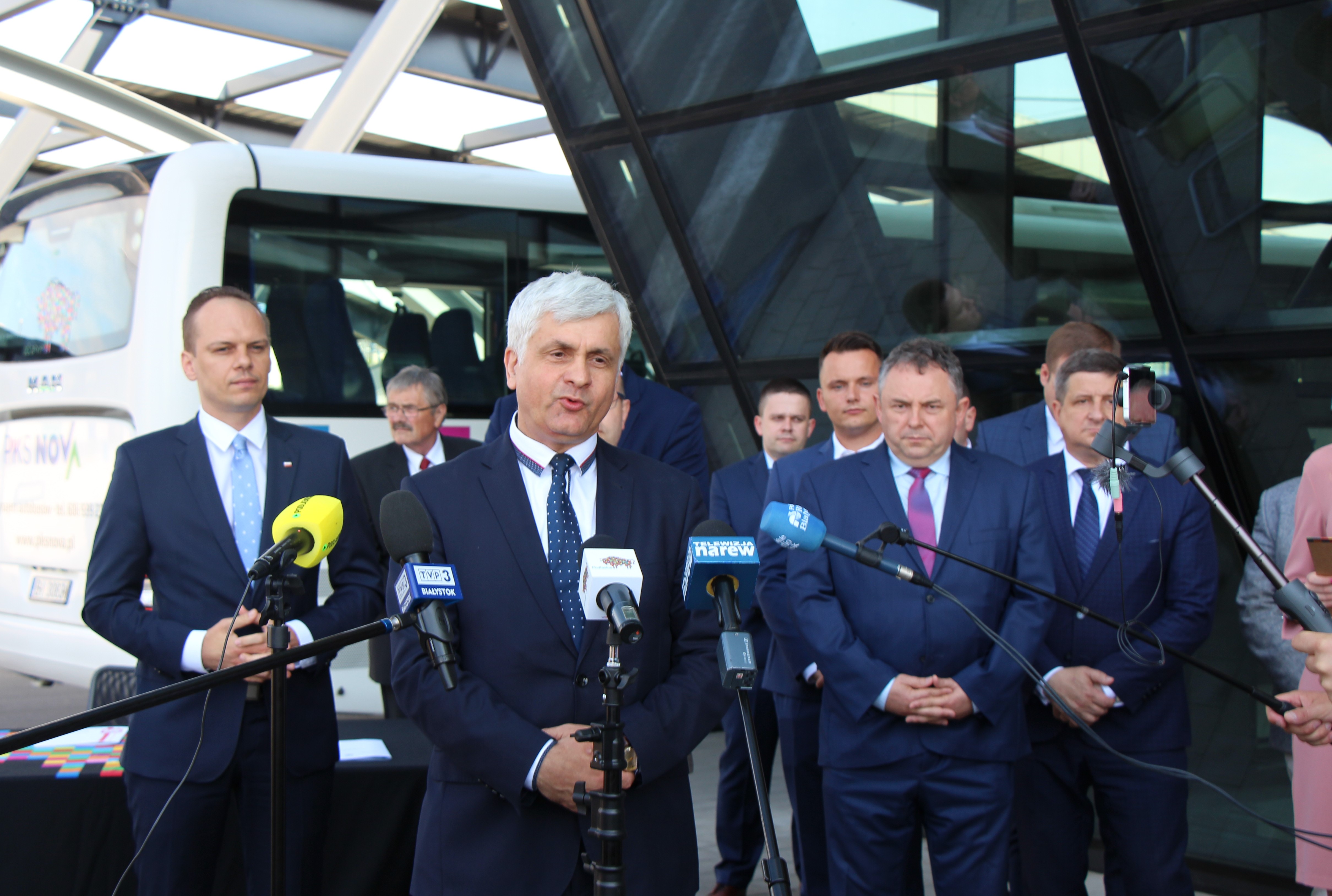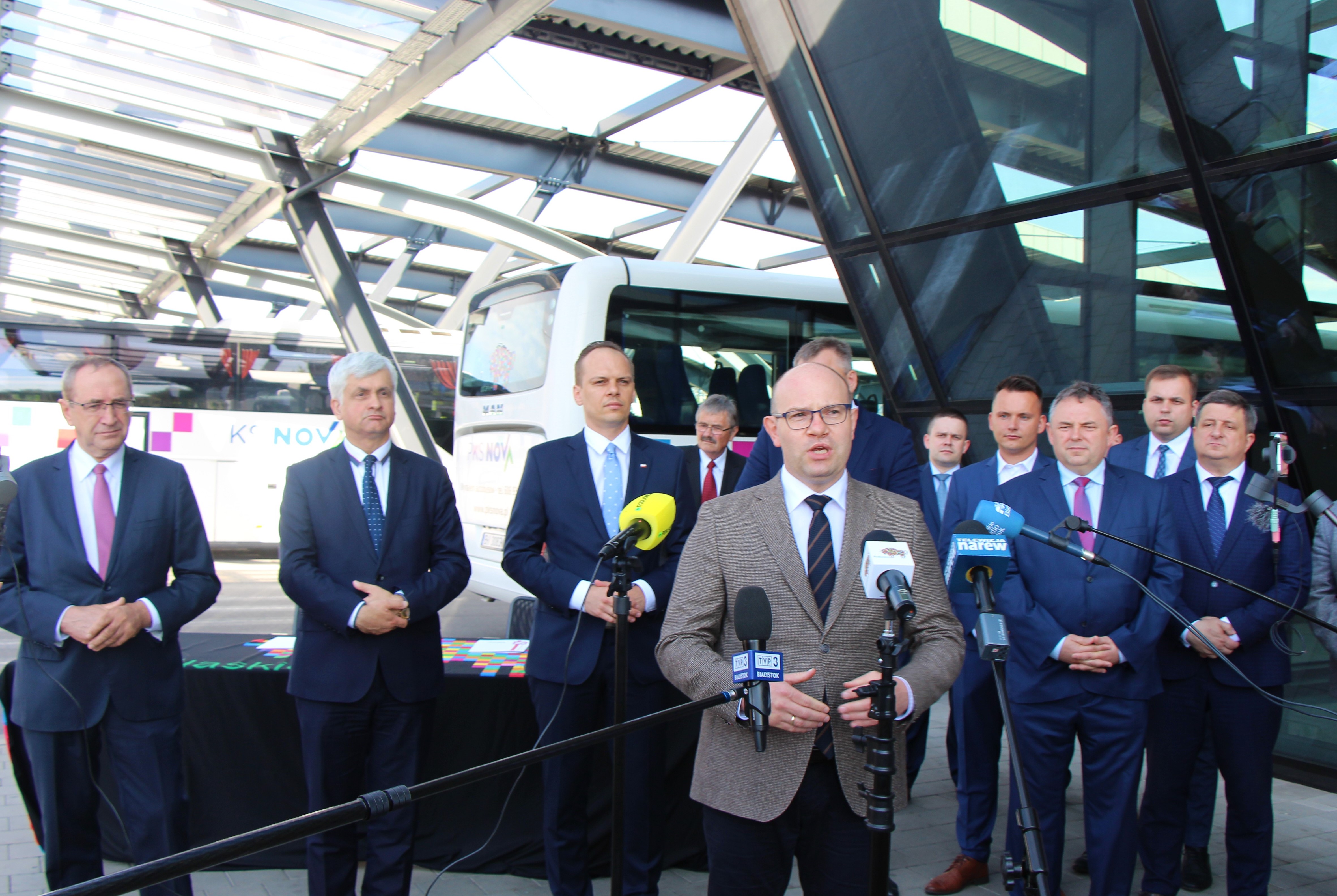 21 połączeń autobusowych wznowi w regionie spółka PKS Nova S.A. W piątek (19.06) marszałek Artur Kosicki podpisał umowę z wojewodą podlaskim Bohdanem Paszkowskim na dofinansowanie z Funduszu Rozwoju Przewozów Autobusowych. W konferencji przed białostockim dworcem PKS wzięli udział także: Rafał Weber - sekretarz stanu w Ministerstwie Infrastruktury, senator Jacek Bogucki, wicemarszałek Marek Olbryś oraz podlascy samorządowcy.