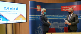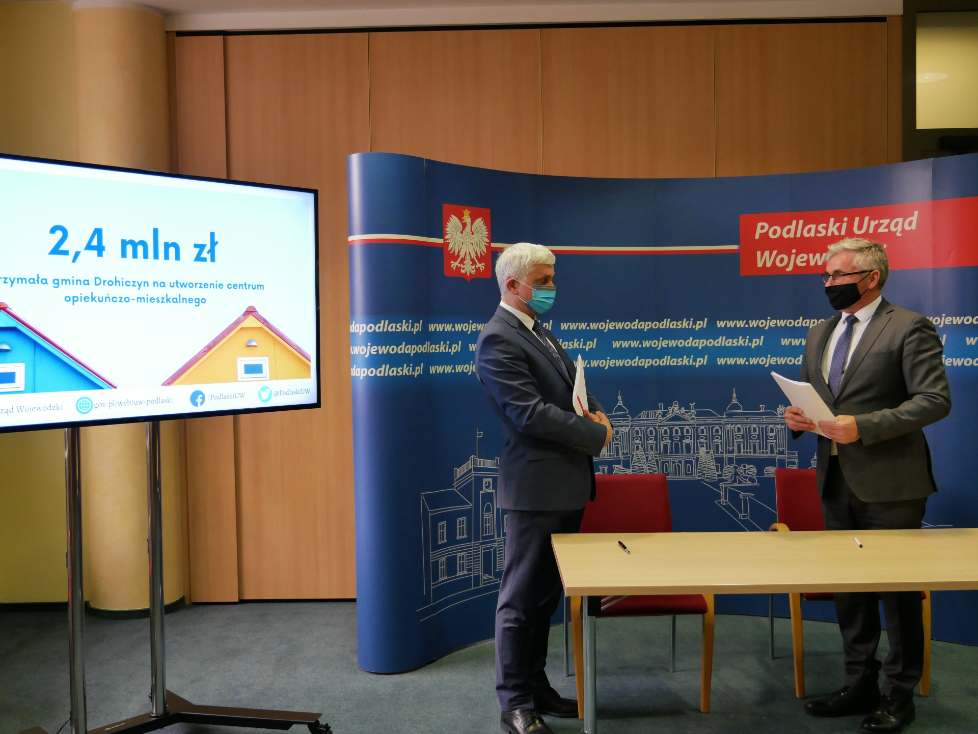 - To będzie placówka, która połączy dwie funkcje - z jednej strony będzie miejscem dziennego pobytu dla osób niepełnosprawnych ze znacznym lub umiarkowanym stopniem niepełnosprawności, z drugiej - ma również przygotowane mieszkania dla części z tych osób, które będą mogły podejmować w nich samodzielne życie - mówił w czwartek (28.01) na konferencji wojewoda podlaski Bohdan Paszkowski o Centrum Opiekuńczo-mieszkalnym w Putkowicach Nadolnych, w gminie Drohiczyn. Umowę w sprawie utworzenia placówki podpisał z burmistrzem Drohiczyna Wojciechem Borzymem. Będzie to już trzecie centrum w regionie.
