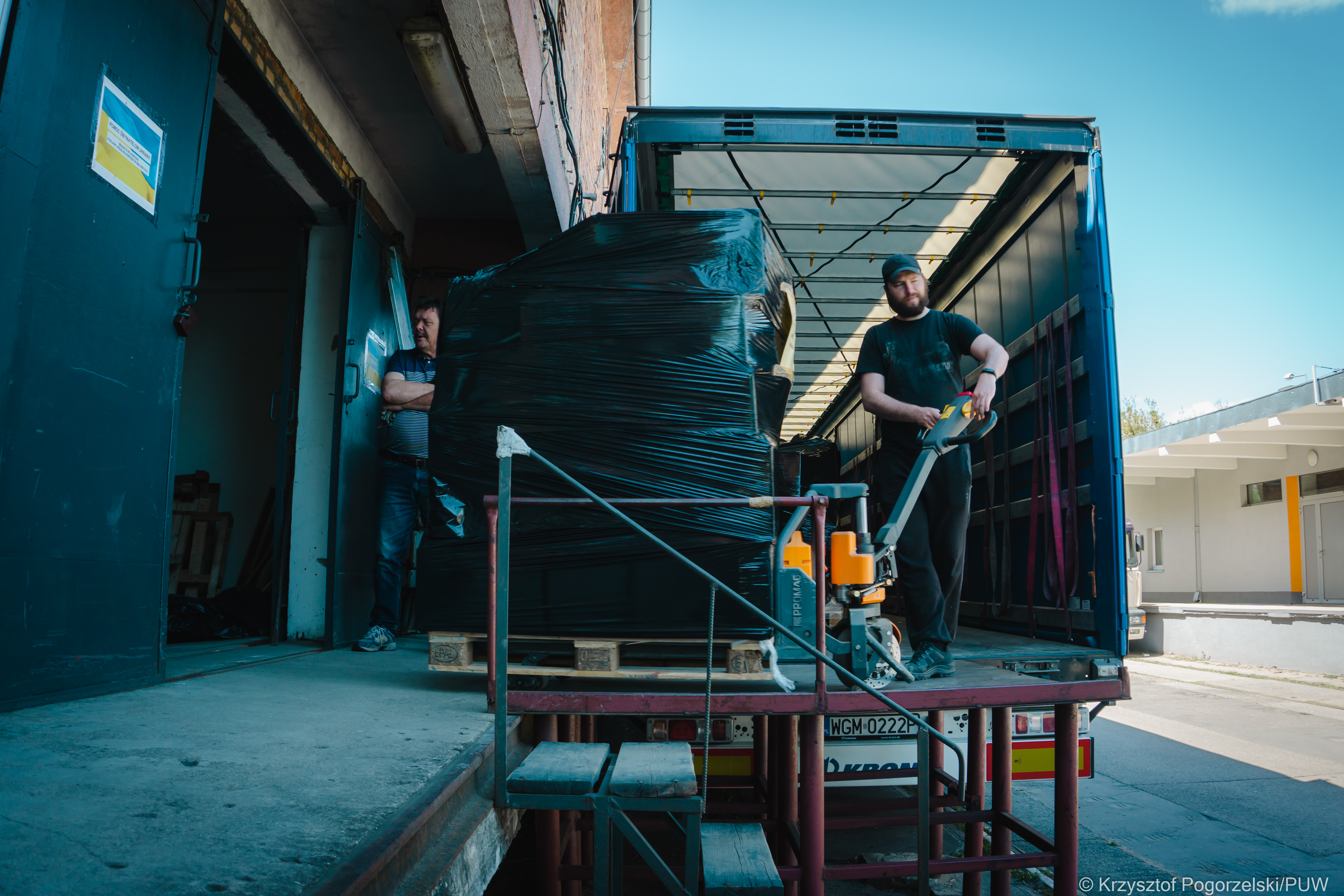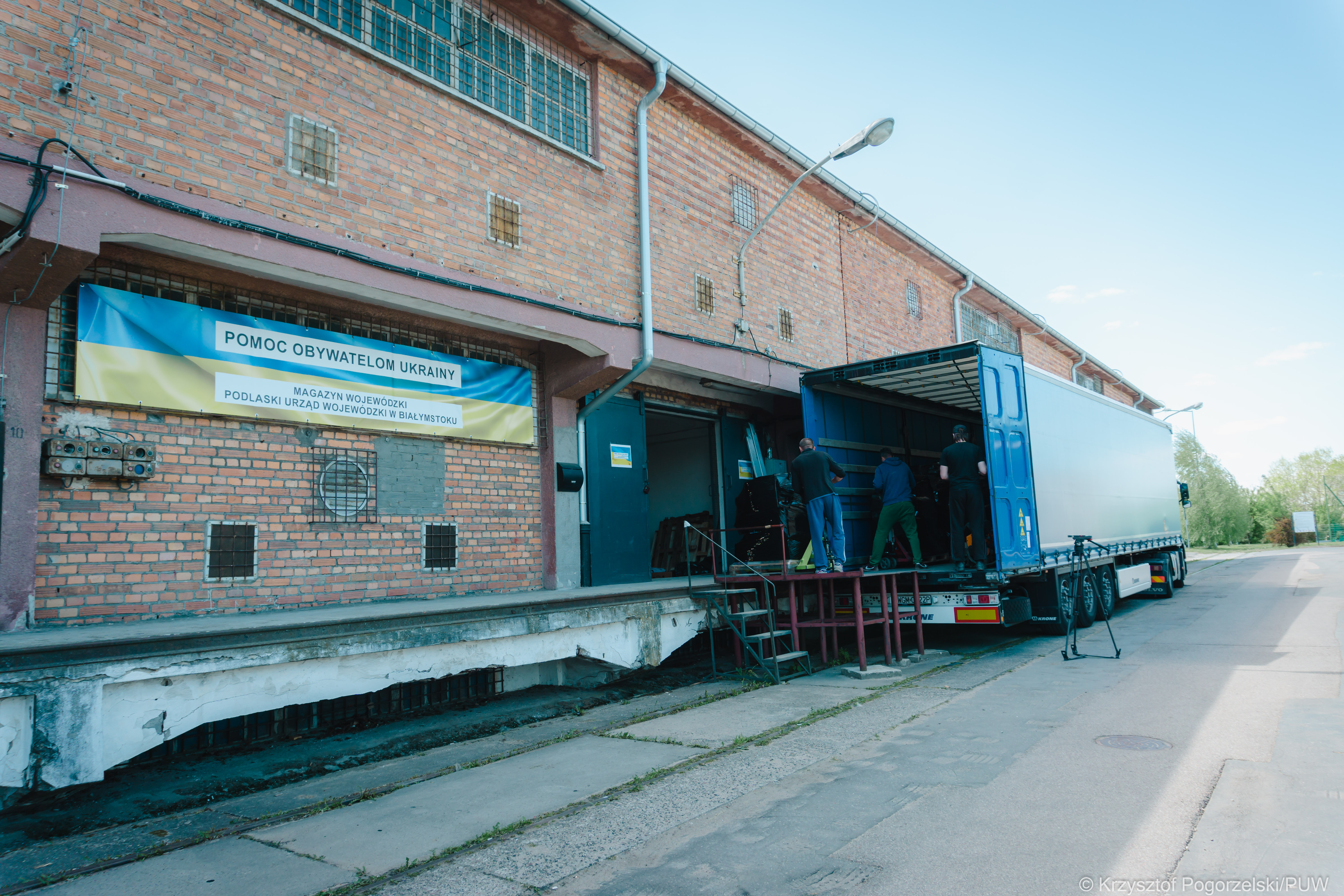 Dwa tiry, 66 palet, a na nich głównie środki higieniczne i czystości - taki transport wyjechał we wtorek (17.05) z magazynu Podlaskiego Urzędu Wojewódzkiego do Rządowej Agencji Rezerw Strategicznych, skąd wyruszy do obywateli Ukrainy, którzy zostali, by walczyć o swój kraj. To już czwarty konwój pomocy.