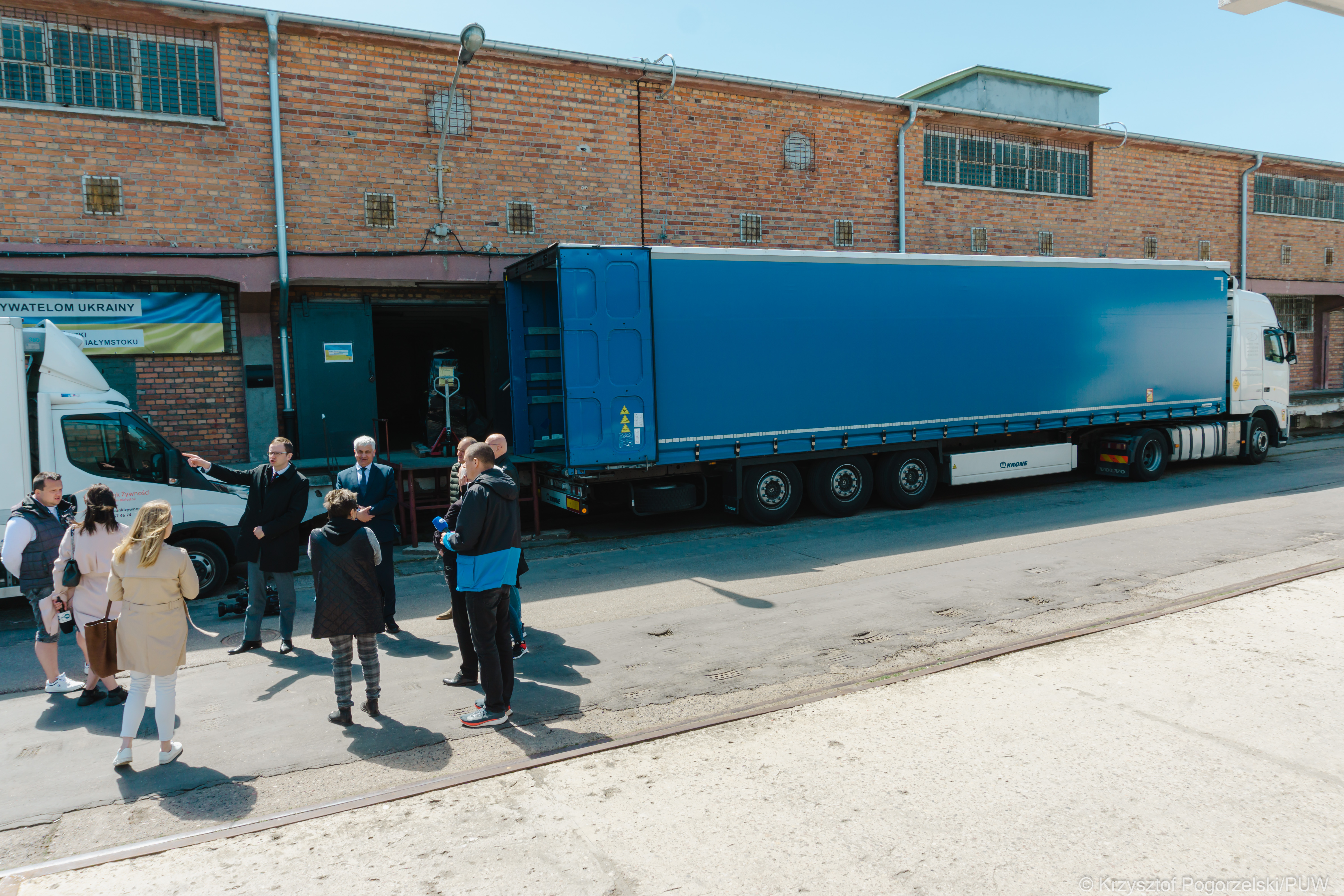 Dwa tiry, które we wtorek (17.05) wyjechały załadowane z magazynu przy ul. Węglowej 8 to również efekt współpracy ze Stowarzyszeniem Przewoźników Podlasia, które użyczyło samochodów ciężarowych.