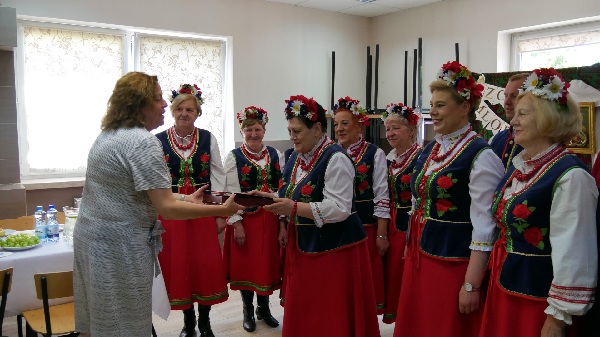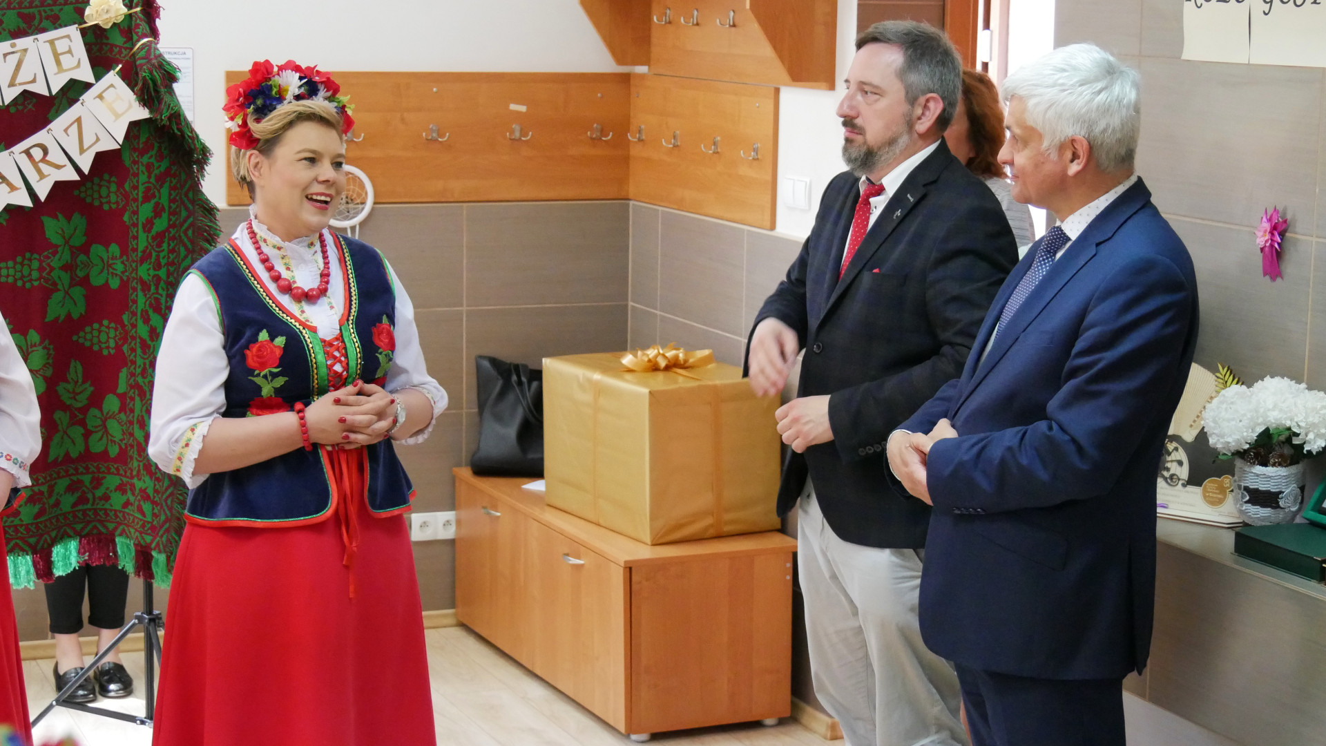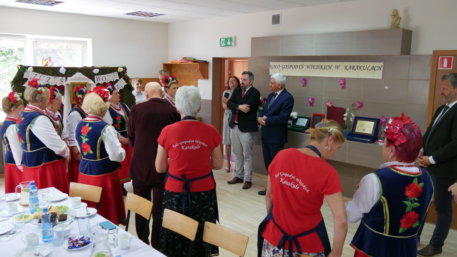We wtorek (15.06) wojewoda podlaski Bohdan Paszkowski i dyrektor Wydziału Rolnictwa i Środowiska PUW Mirosława Jaroszewicz-Łojewska odwiedzili gospodynie z Karakul w miejscowej świetlicy. W ramach gratulacji wręczyli pamiątkowy grawerton i upominek, który może przydać się na drodze do zwycięstwa - robot kuchenny.
