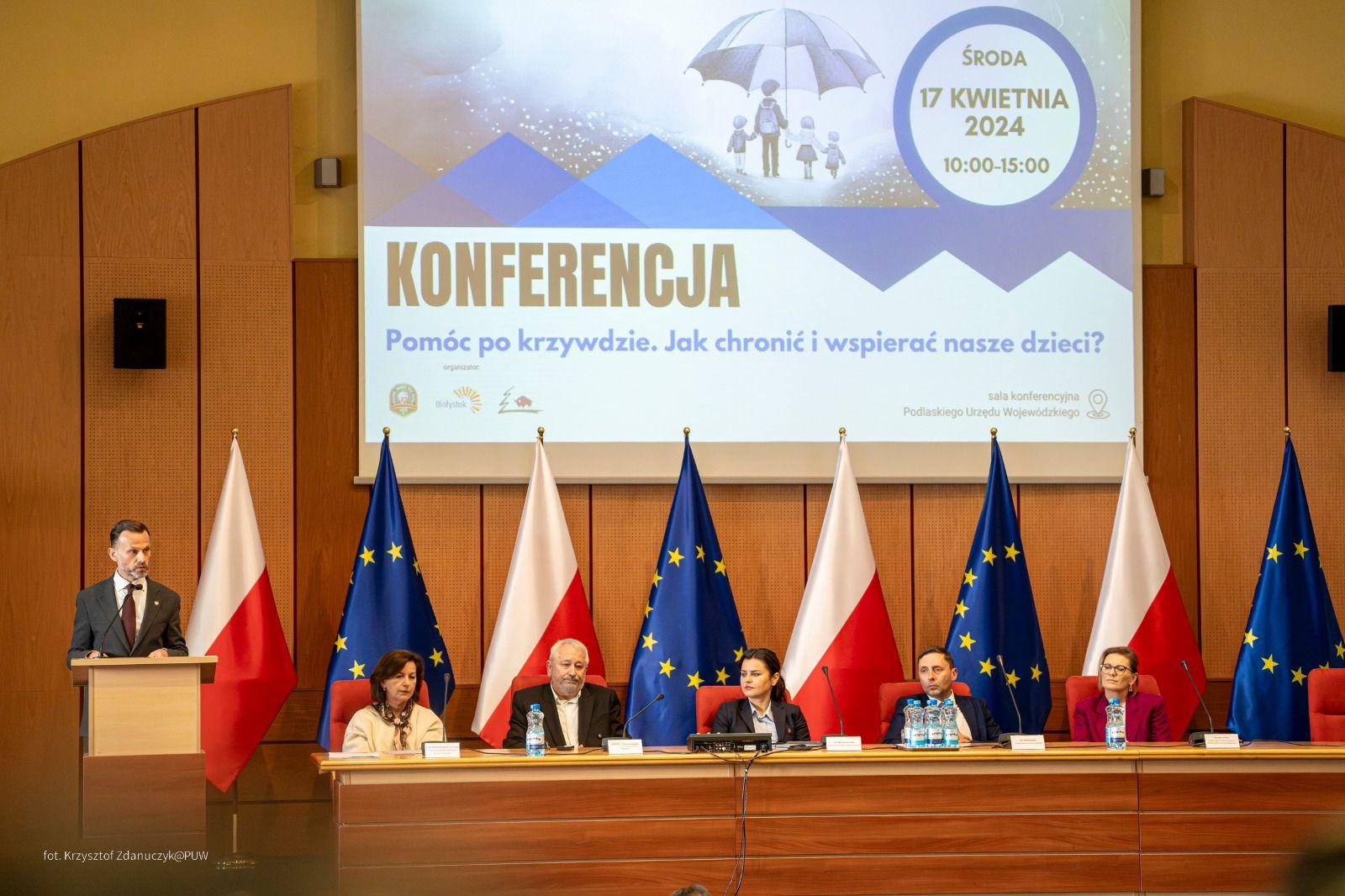 Jak pomóc dzieciom krzywdzonym i jak do krzywdy nie dopuścić, dlaczego krzywda często związana jest z tajemnicą, co na to prawo – między innymi takie zagadnienia poruszyli uczestnicy konferencji „Pomóc po krzywdzie. Jak chronić i wspierać nasze dzieci?”, którą zorganizowali Wojewoda Podlaski wraz z Podlaskim Związkiem Piłki Nożnej przy współpracy z Podlaskim Kuratorem Oświaty i Miastem Białystok.