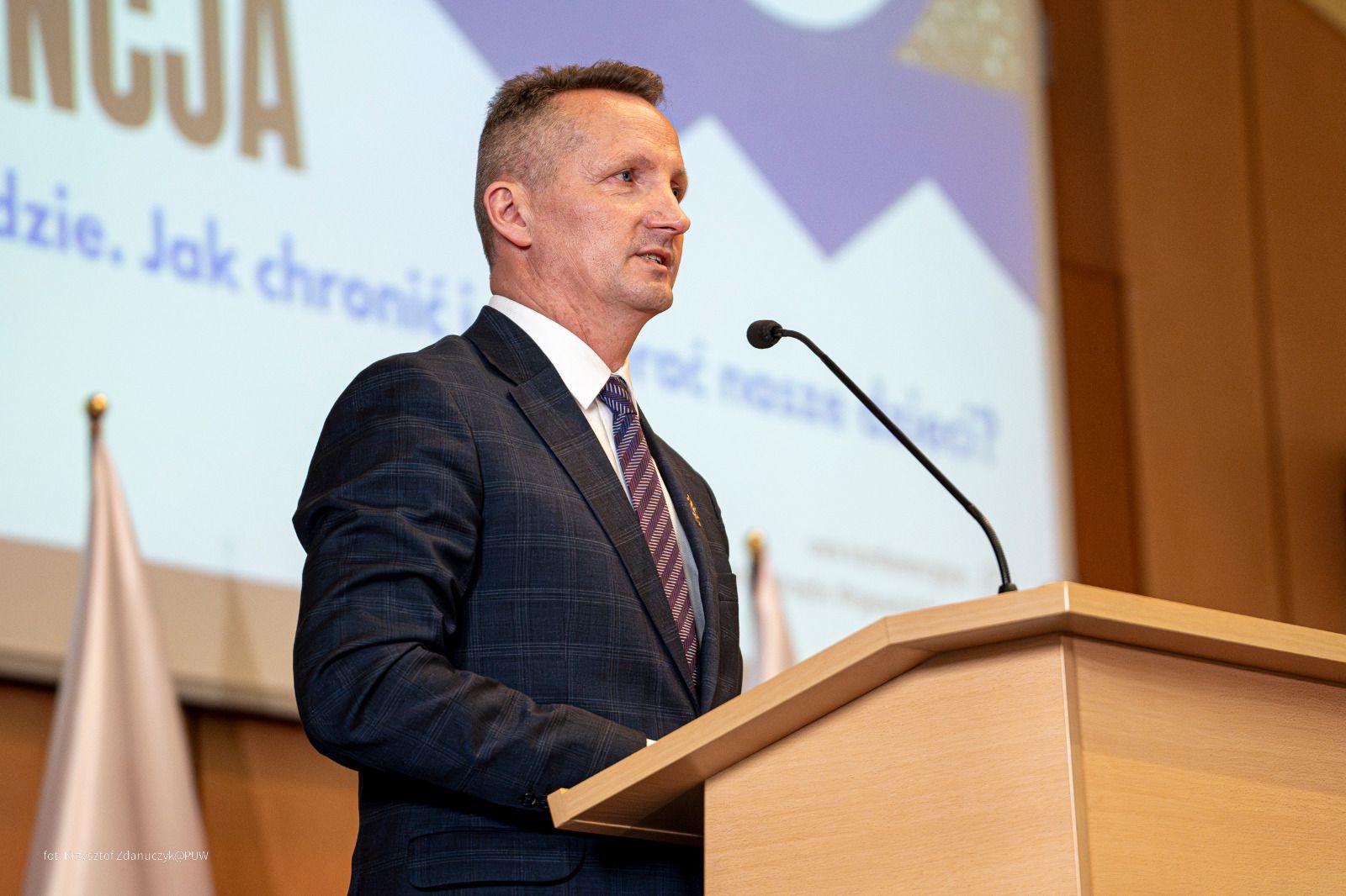 - To w dzieciństwie nabywamy określonych kompetencji, to w dzieciństwie kształtujemy swój charakter, to wtedy właśnie budujemy swoje relacje i obraz świata, w którym żyjemy. Jeżeli doświadczamy przemocy to odciska to swoje piętno na późniejszych latach i całym naszym dorosłym życiu – mówił na wstępie konferencji wojewoda Jacek Brzozowski. - Wydaje mi się, że odbudowanie zaufania dziecka do dorosłego jest szalenie trudne. Sprawienie, żeby dzieci czuły się bezpiecznie, jest naszym wspólnym obowiązkiem – dodał.