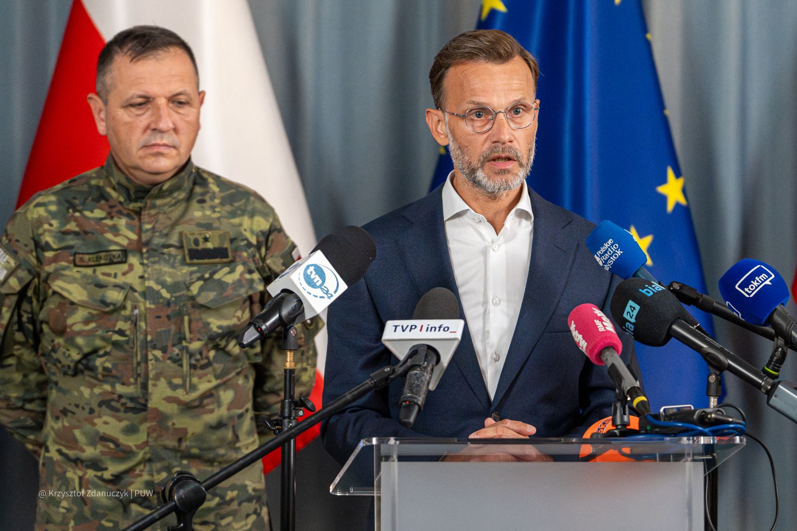 Konferencja prasowa wojewody na temat naruszenia polskiej przestrzeni powietrznej